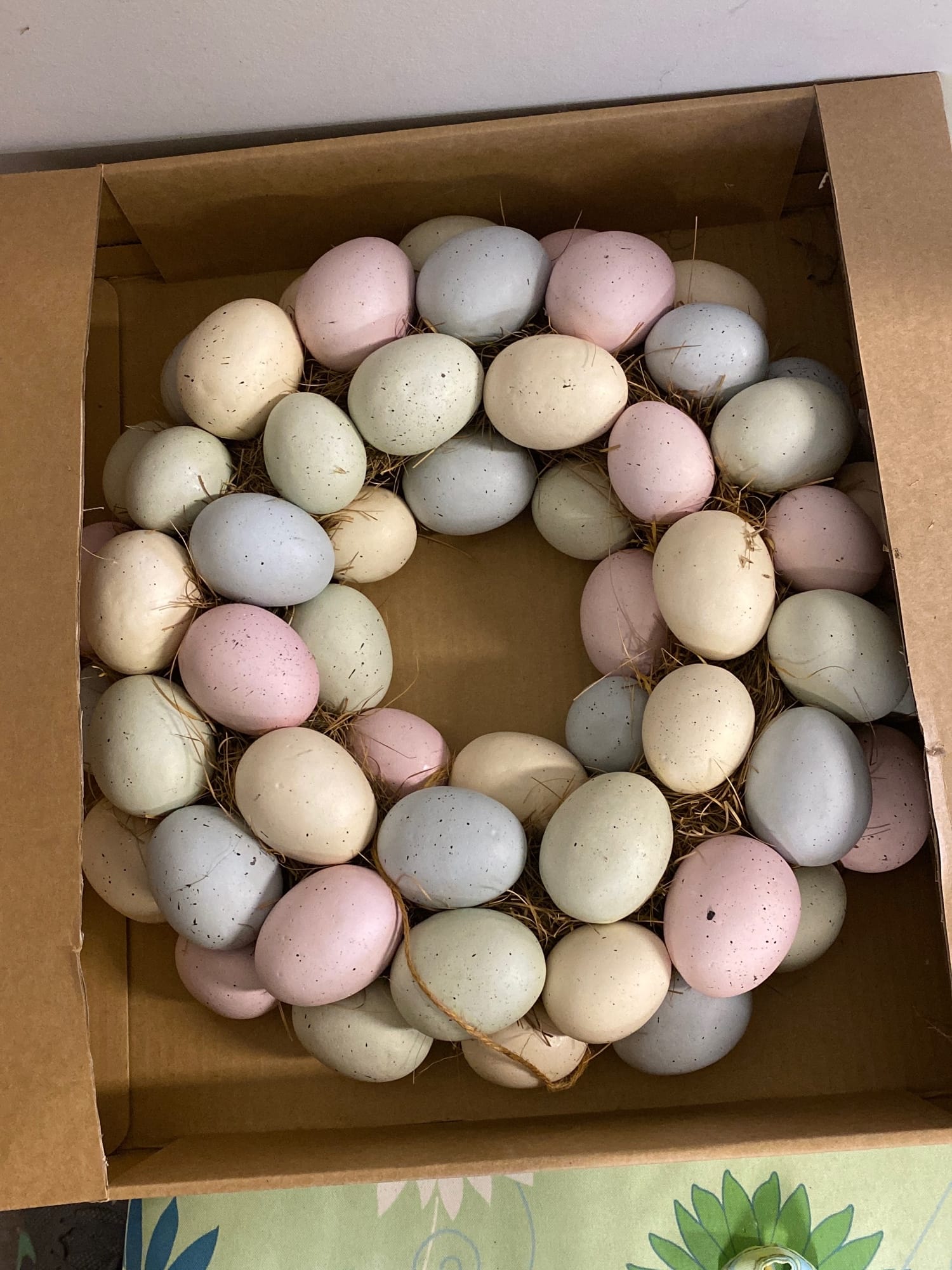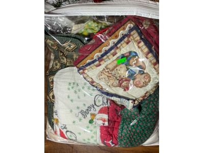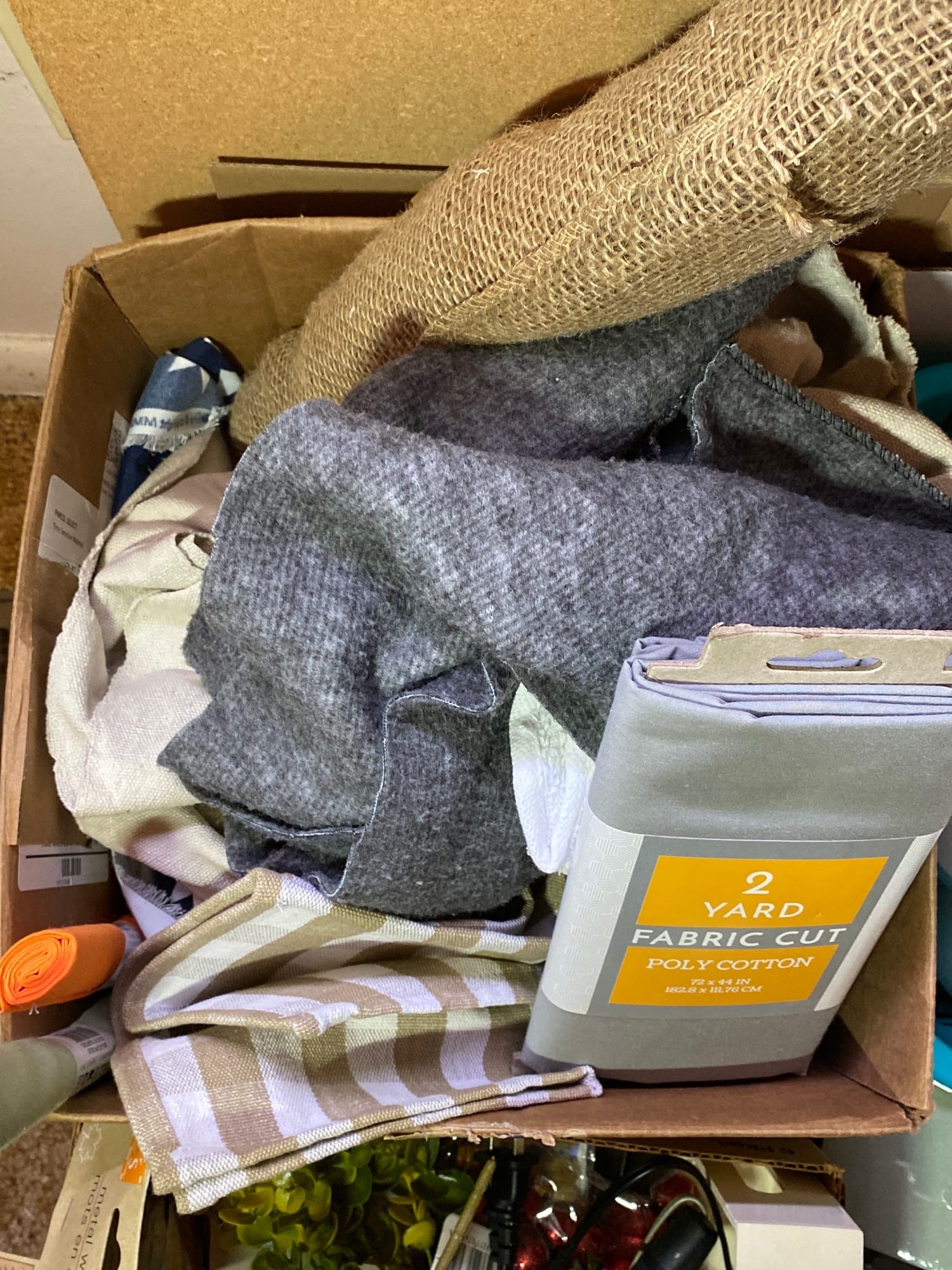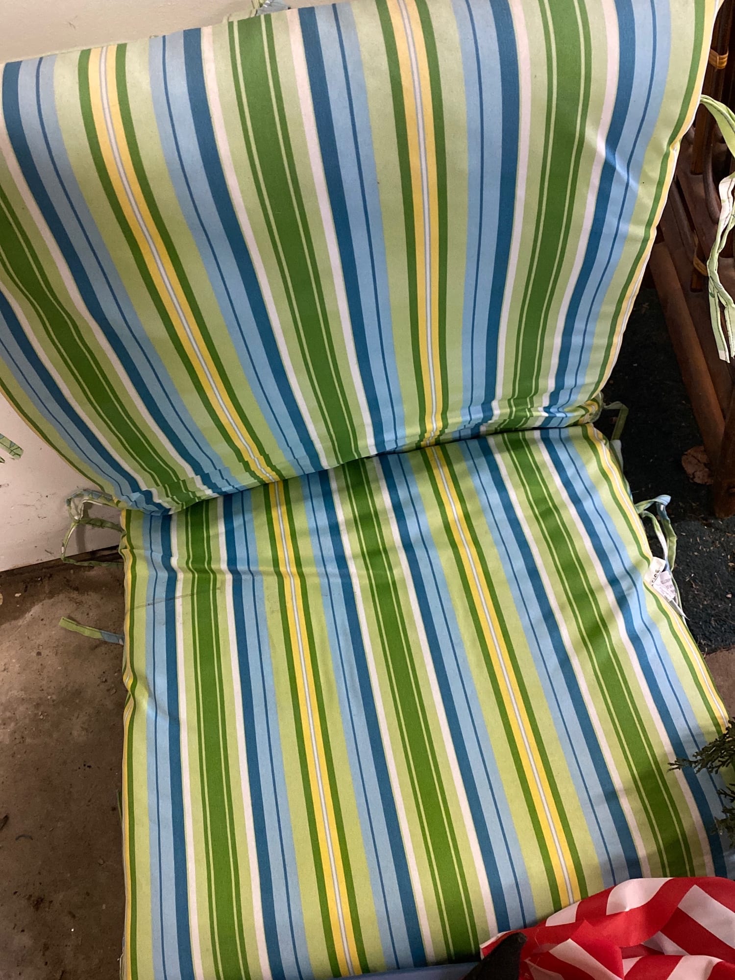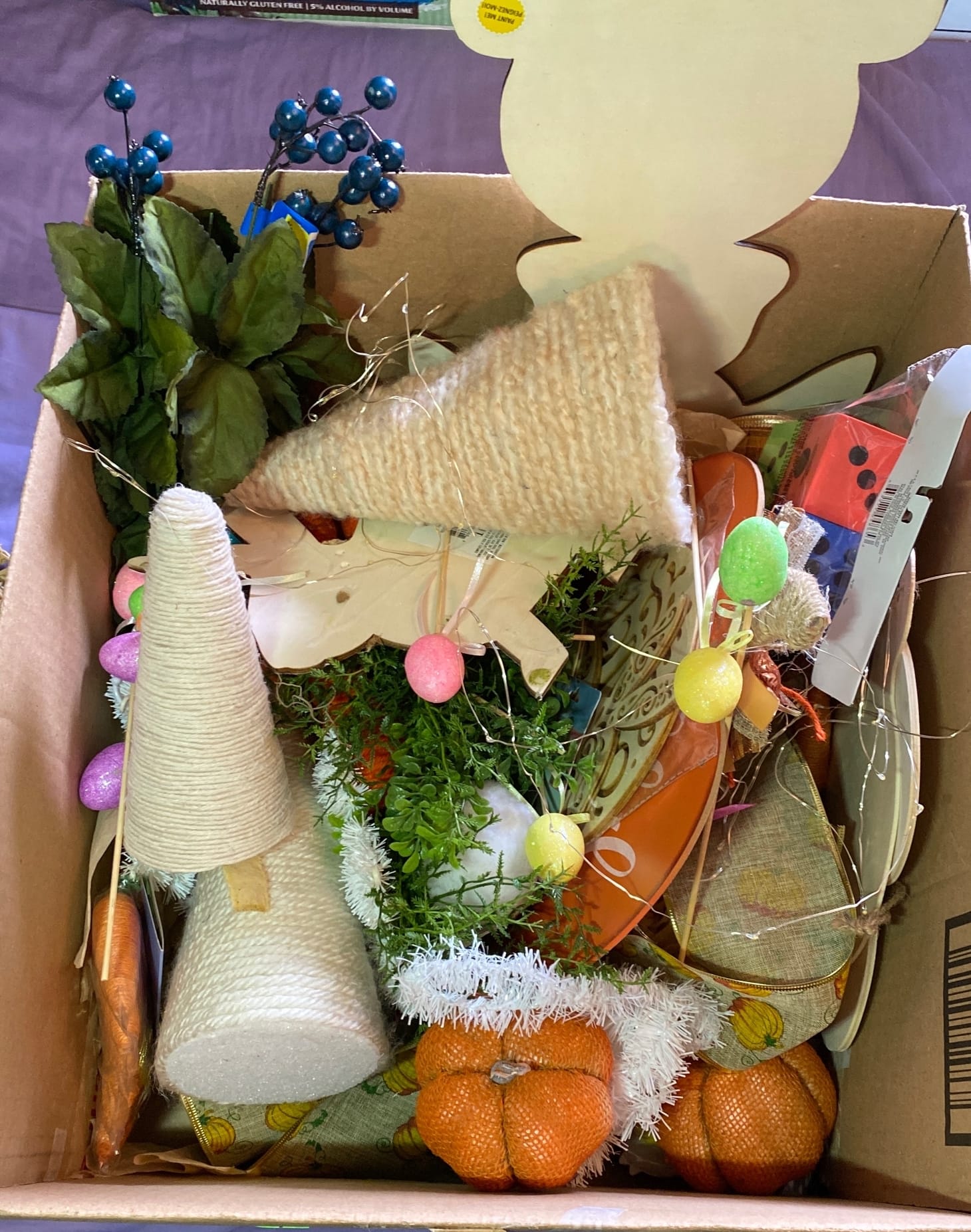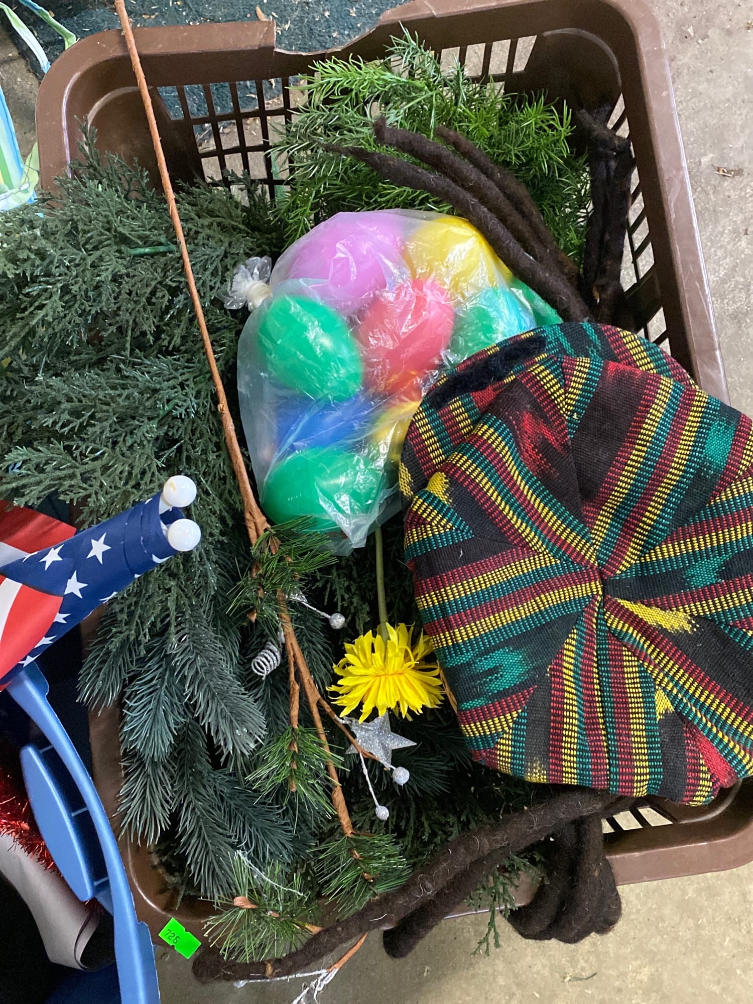 725 Chair cushions, Easter wreath, greenery, craft witch hat, flag, totes, misc.