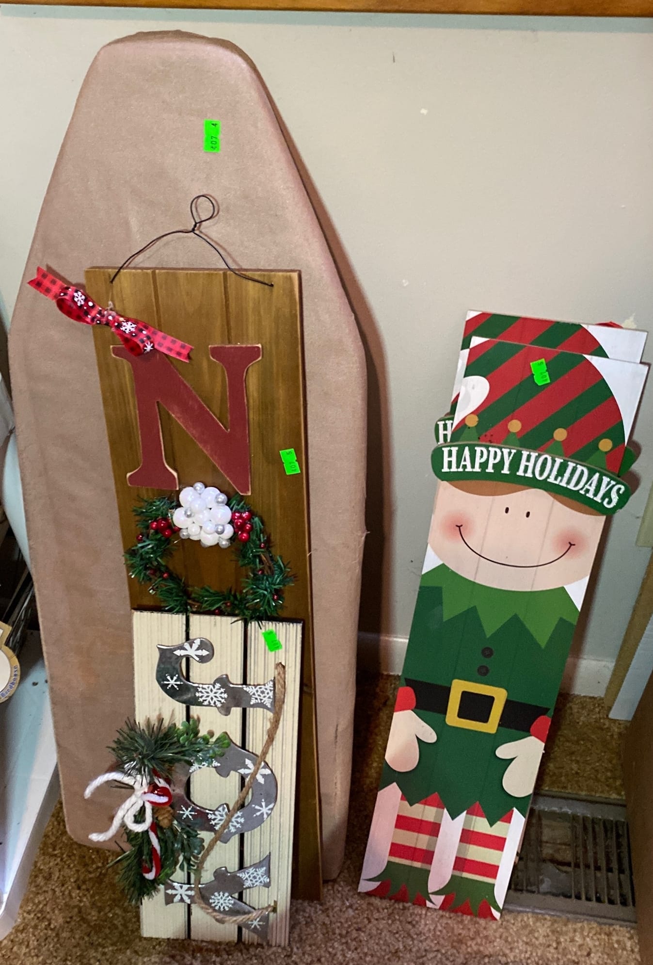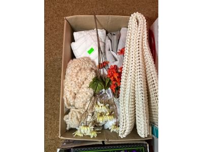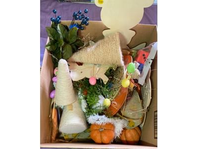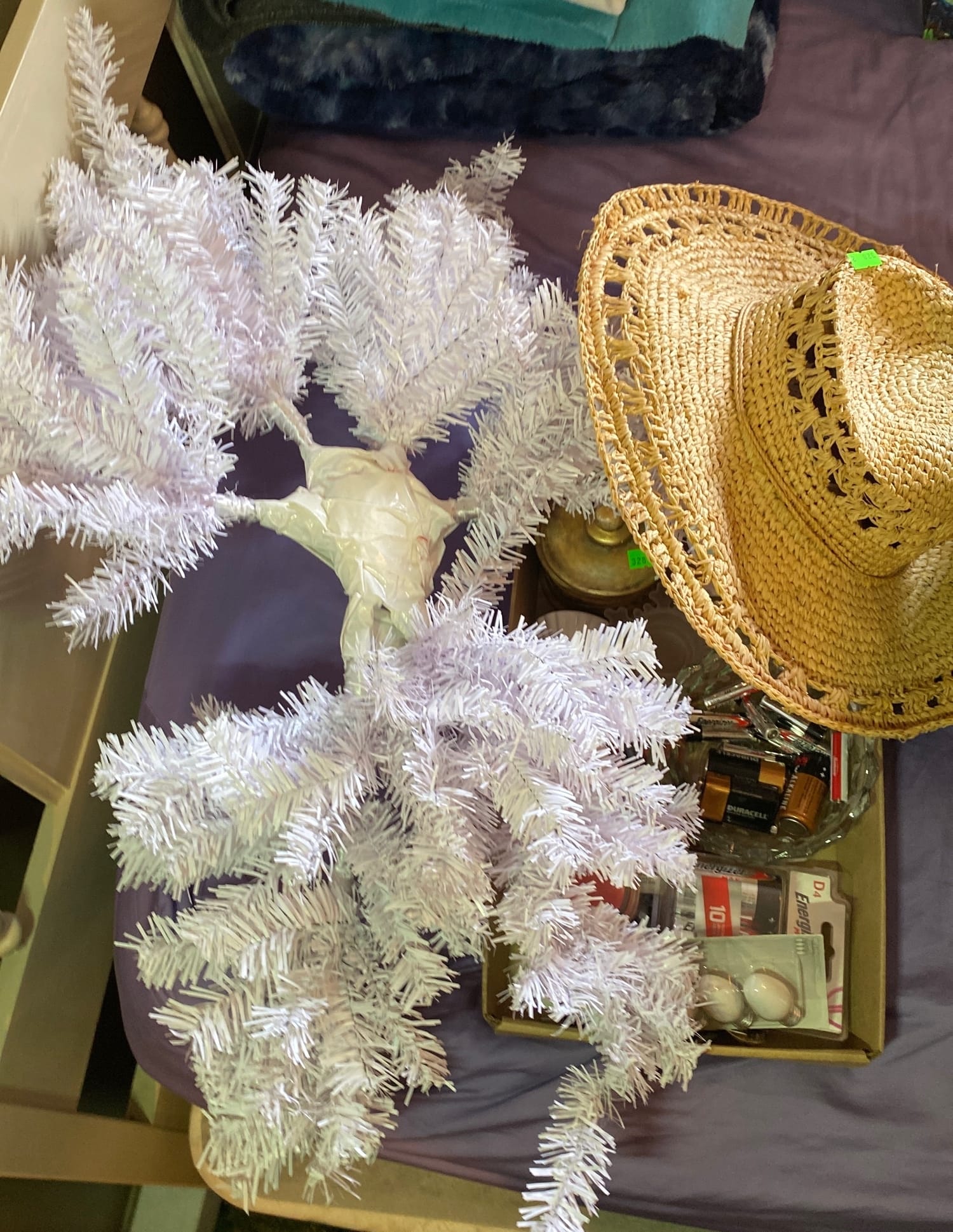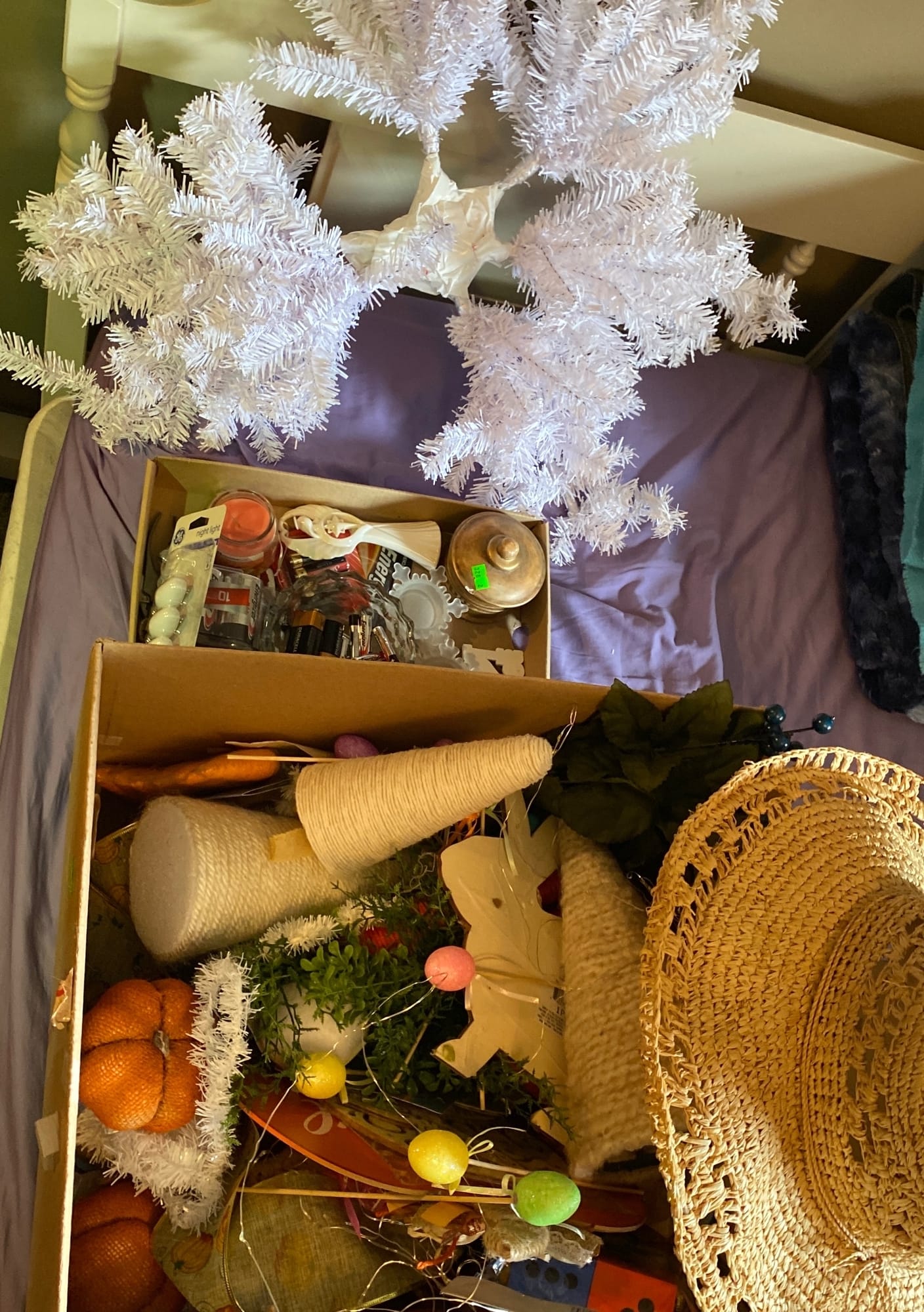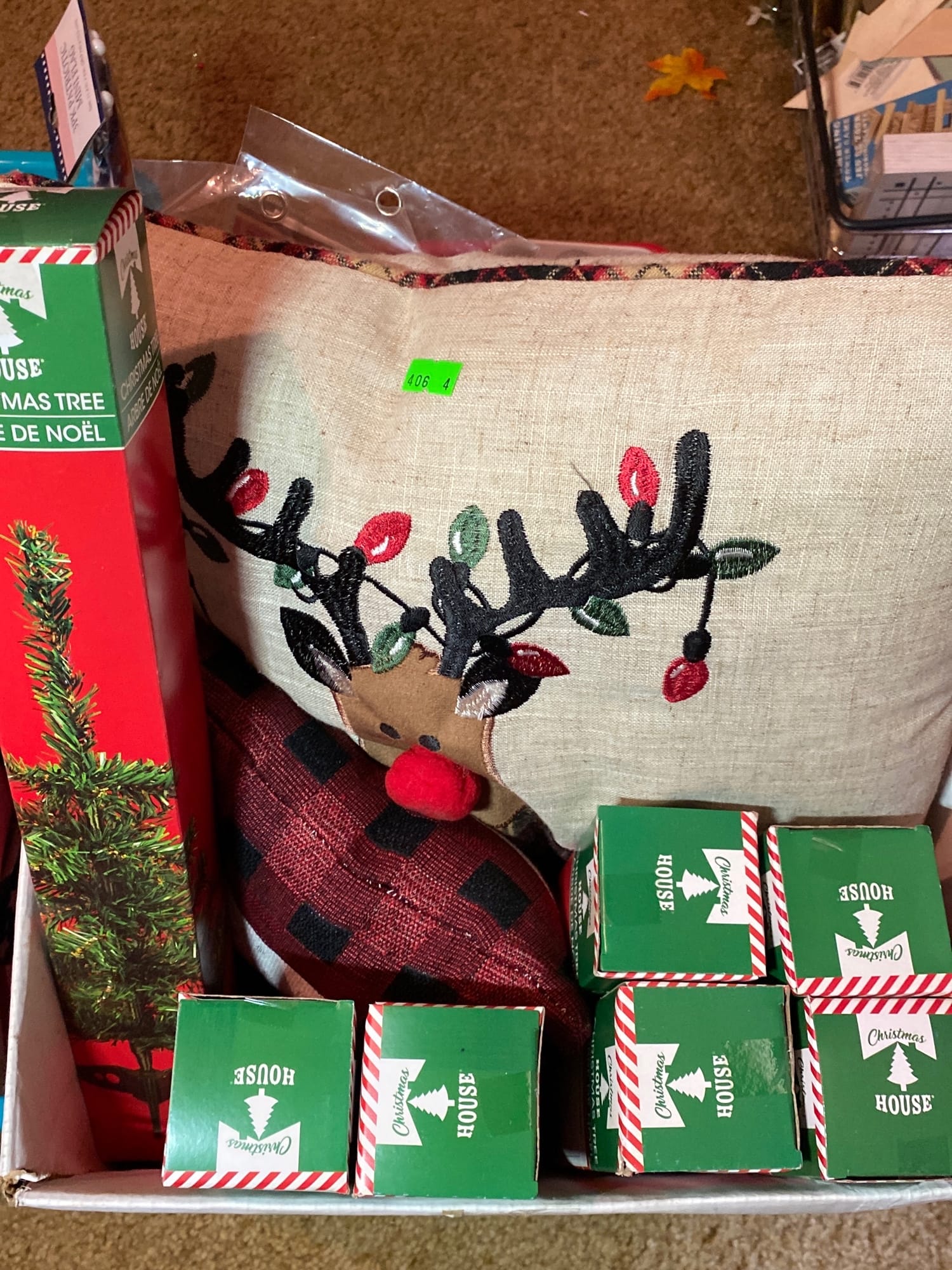 725 Chair cushions, Easter wreath, greenery, craft witch hat, flag, totes, misc.