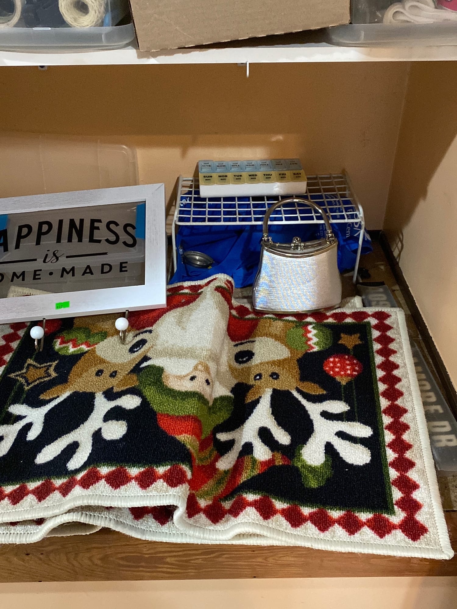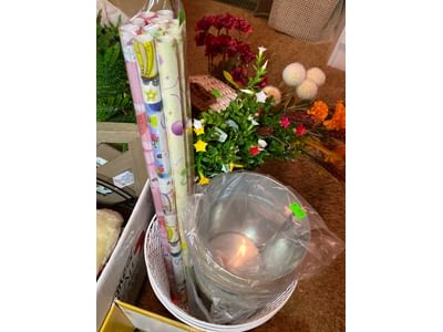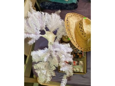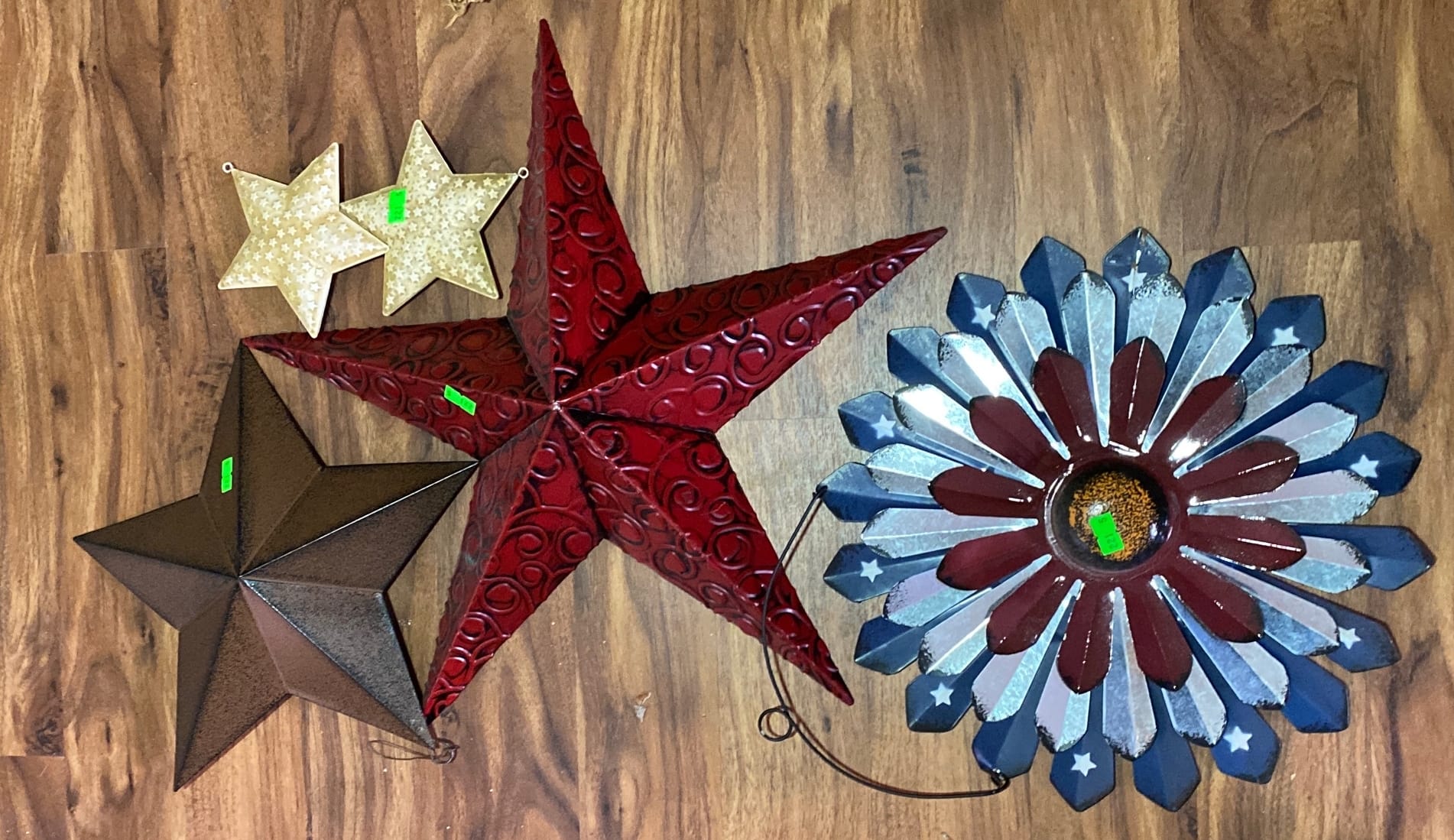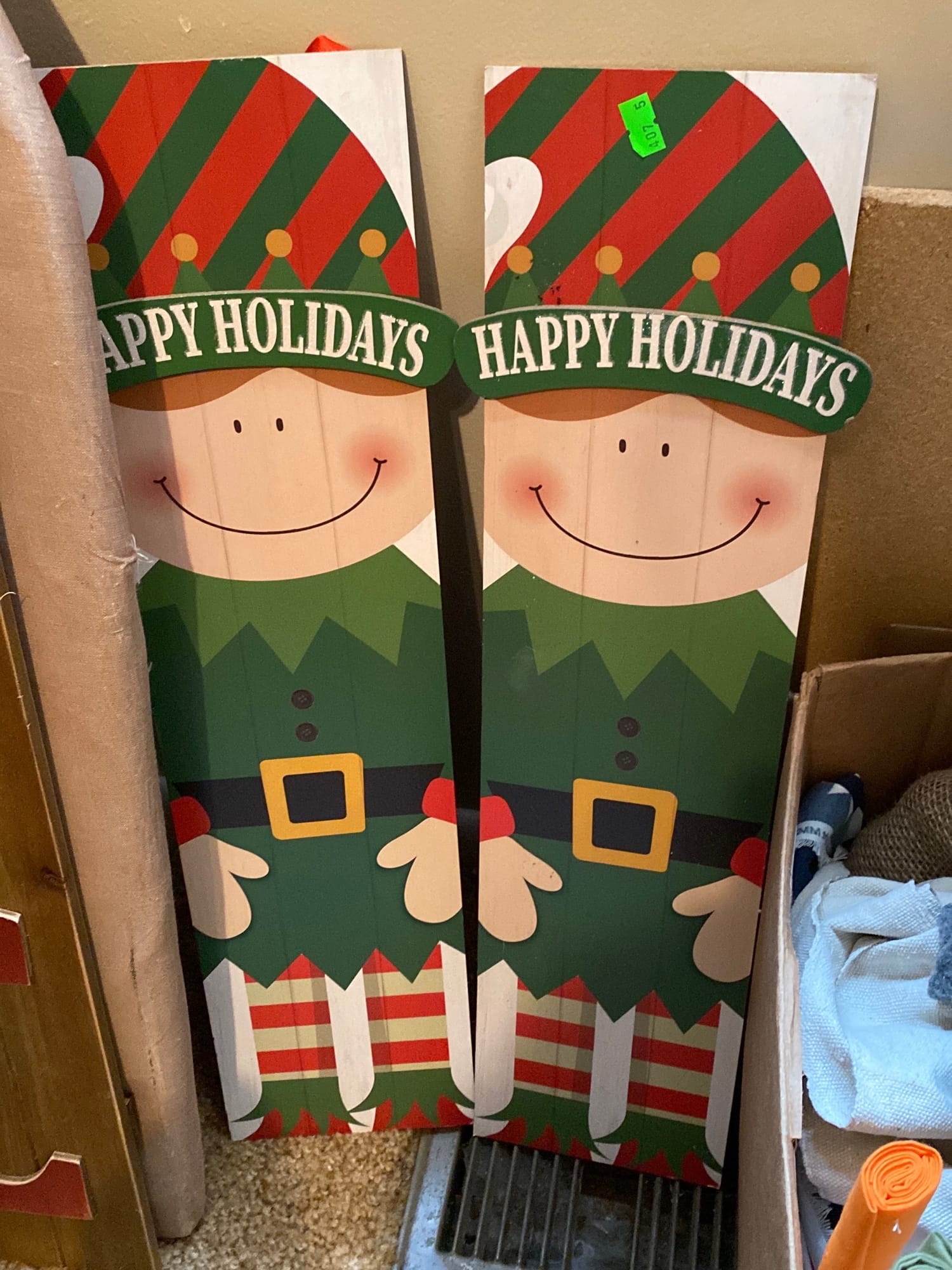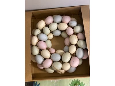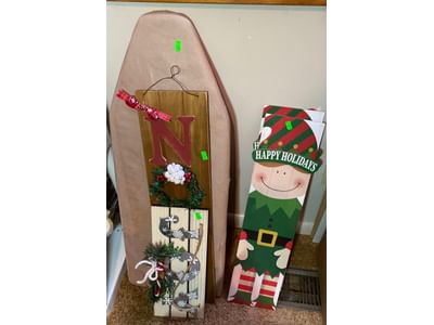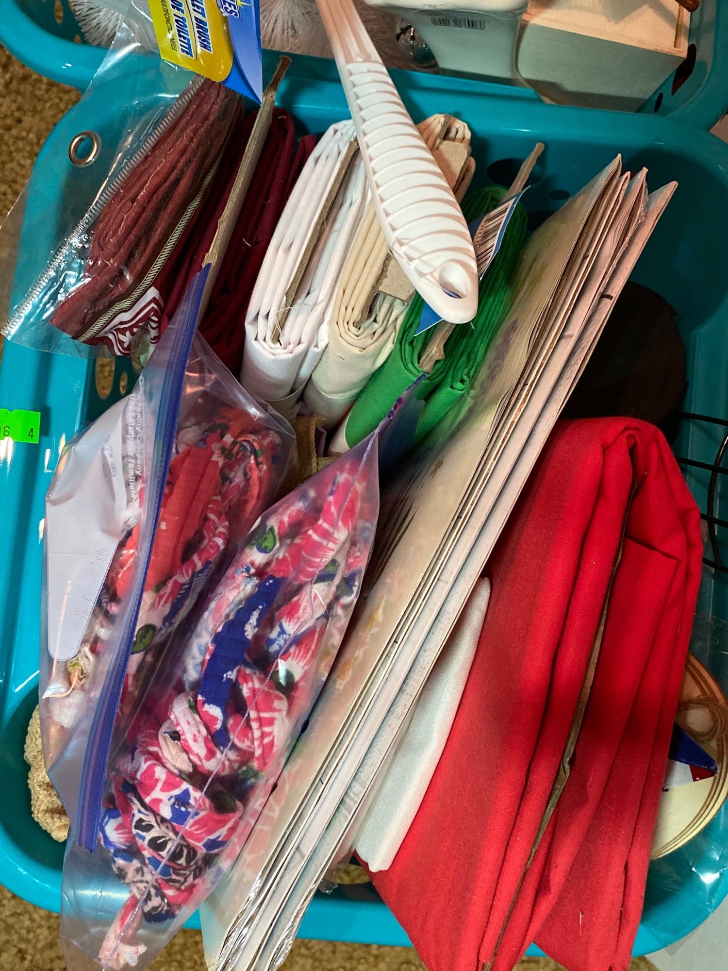 725 Chair cushions, Easter wreath, greenery, craft witch hat, flag, totes, misc.
