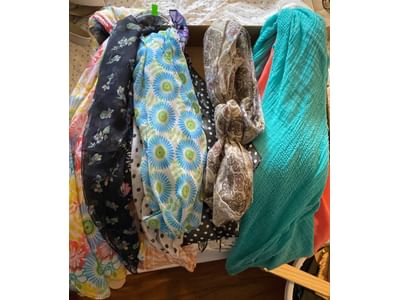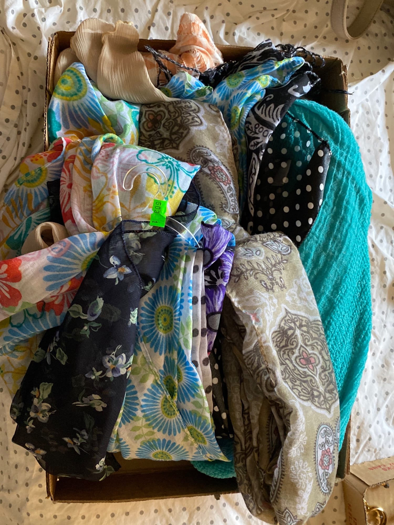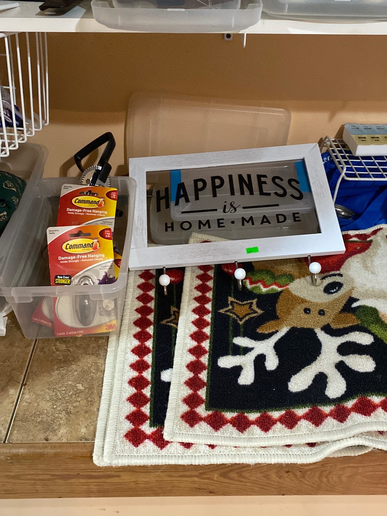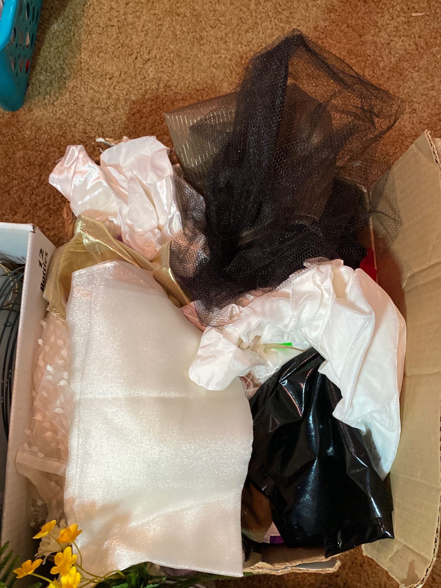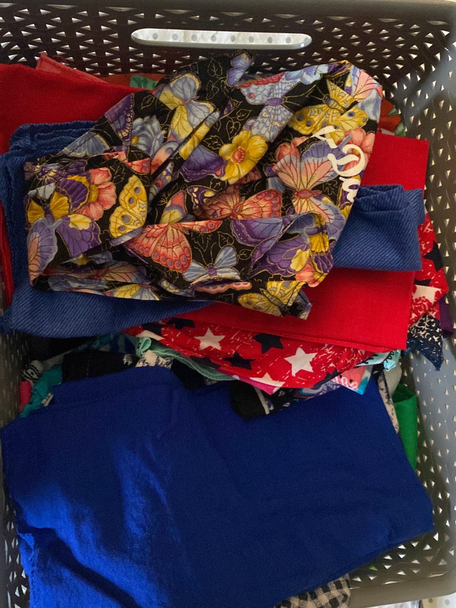 725 Chair cushions, Easter wreath, greenery, craft witch hat, flag, totes, misc.