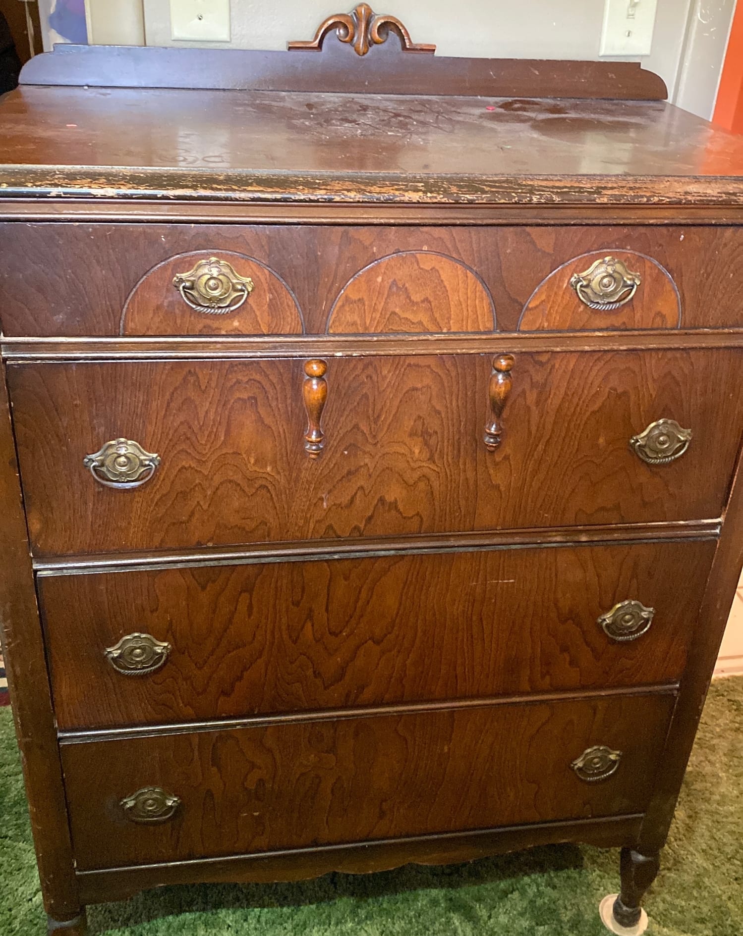 732 5-Drawer Wood Stand 10x9.5x38.5in distressed painted