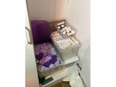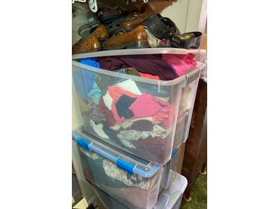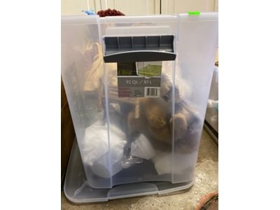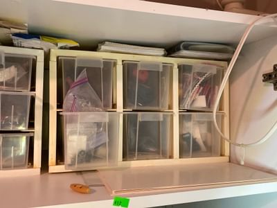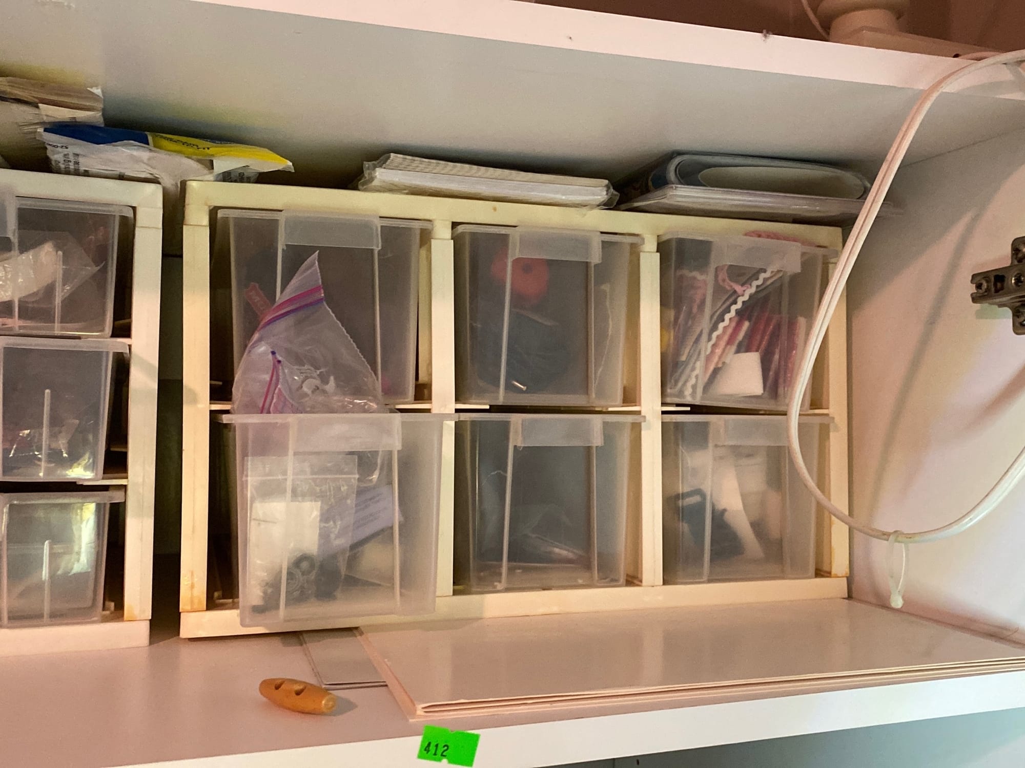 134 Plastic containers, misc. lids, contents as shown in pictures