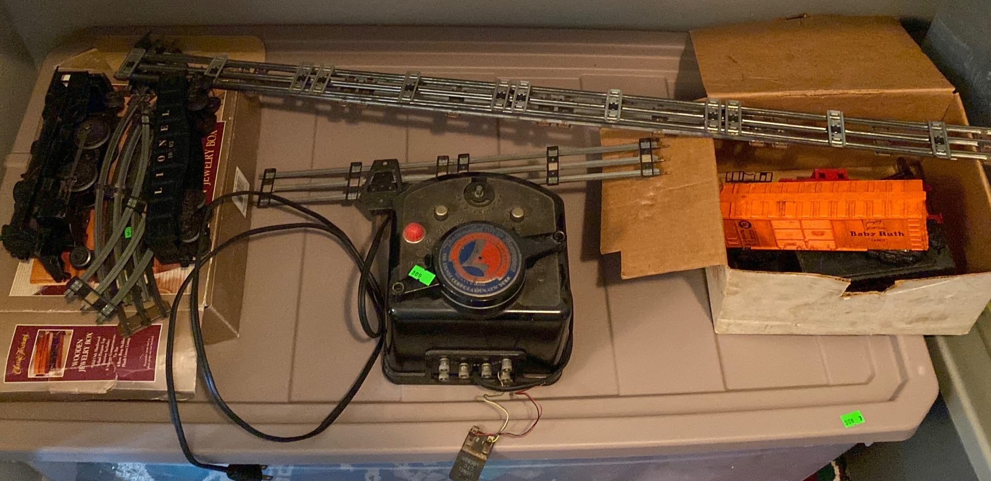 309 Lionel 1110 scout train set, KW transformer, and track assortment