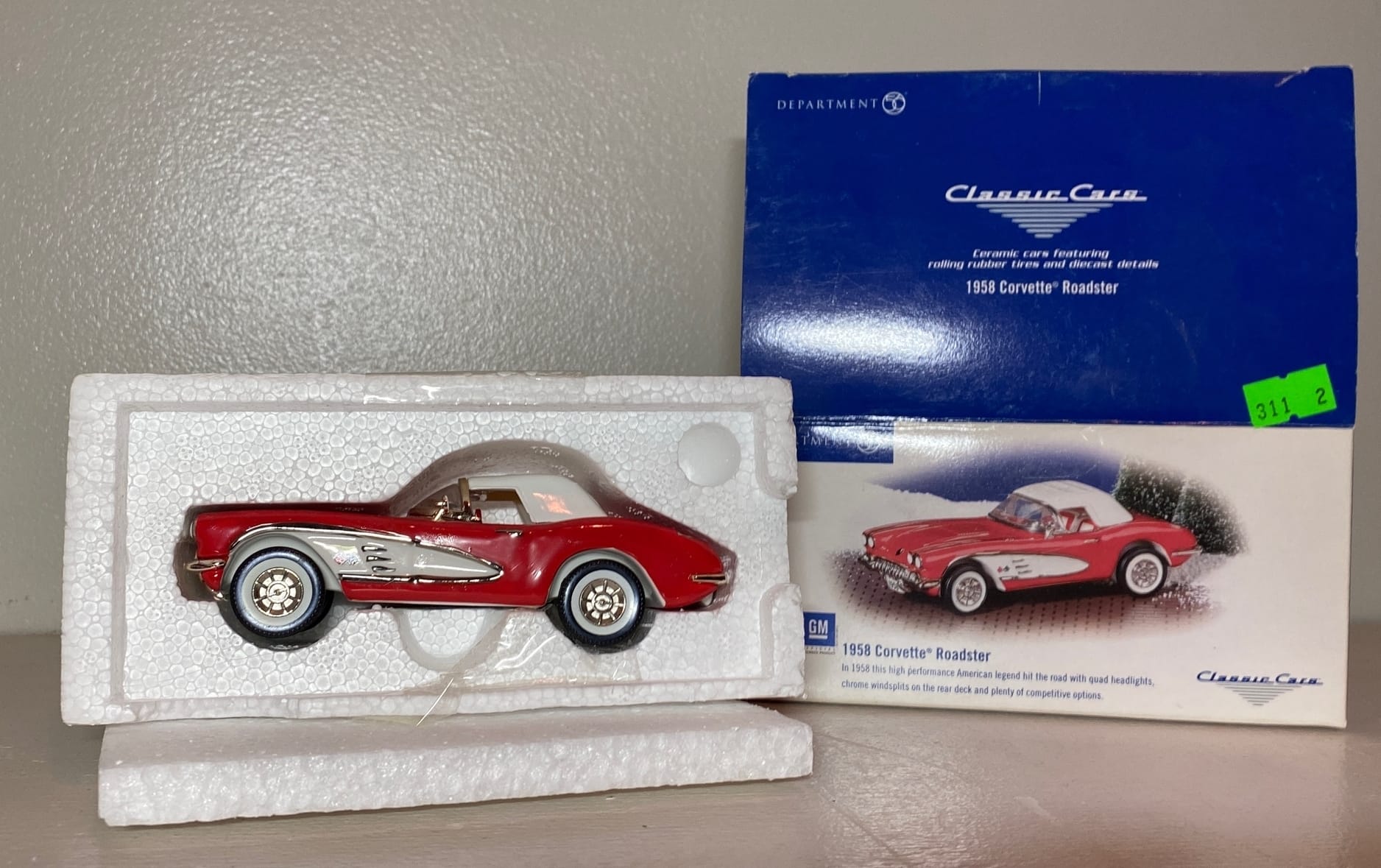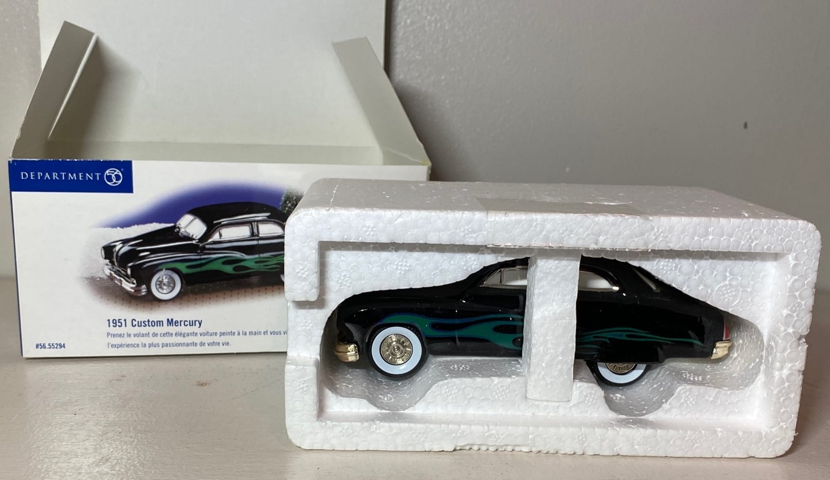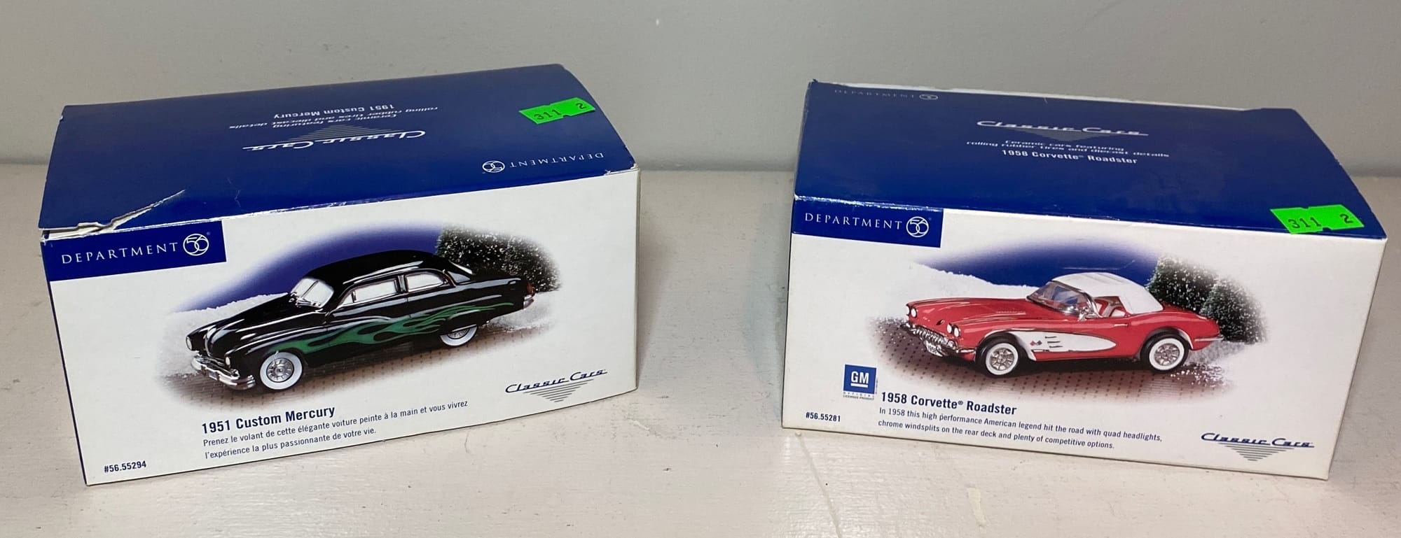 311 2 - Dept 56 1958 Corvette Roadster and 1951 Custom Mercury cars