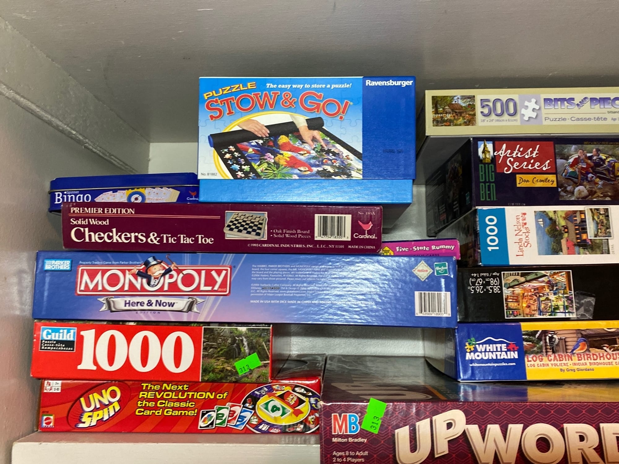 313 Puzzle and game assortment inc. Monopoly, Up Word, Uno Spin & More