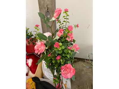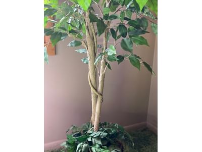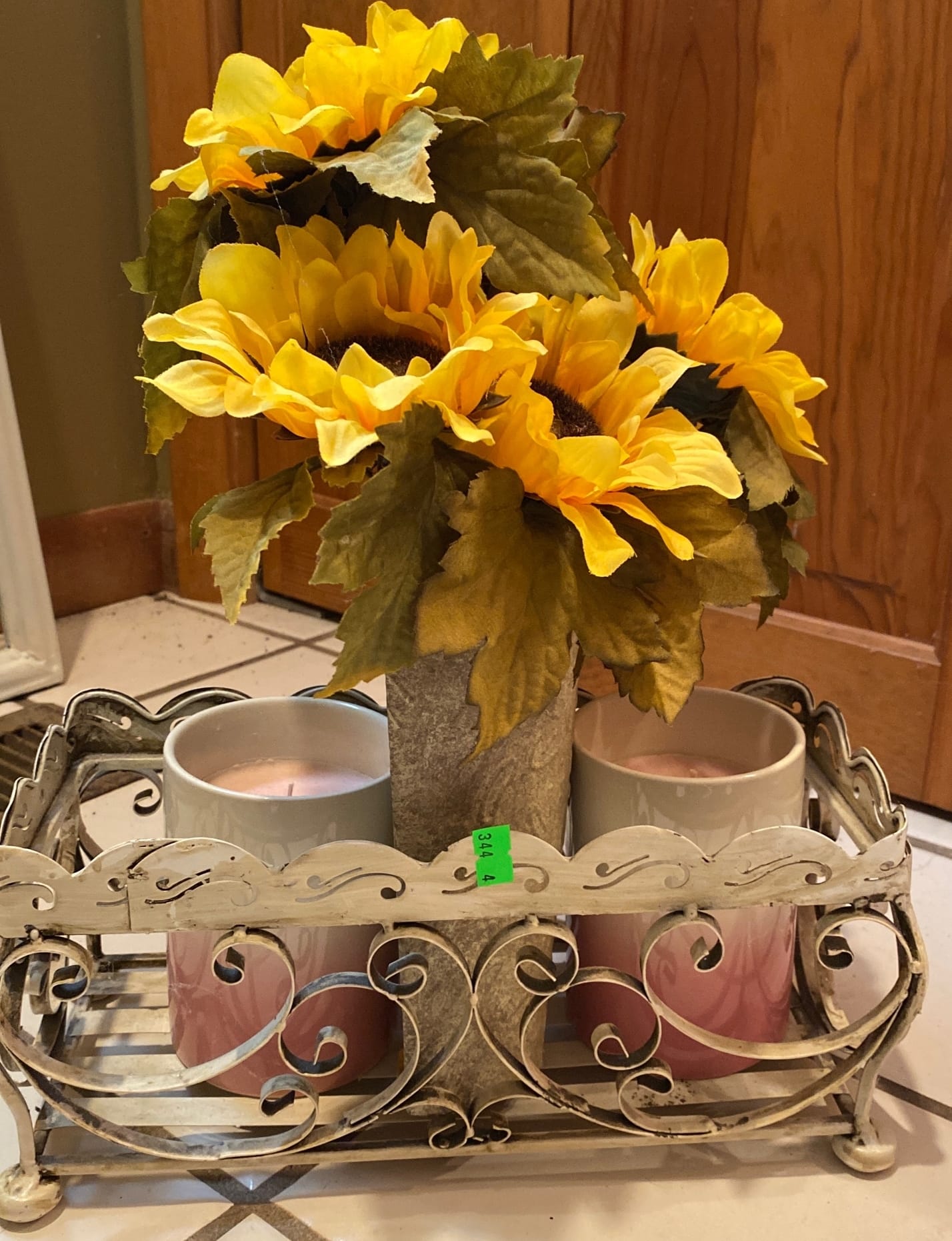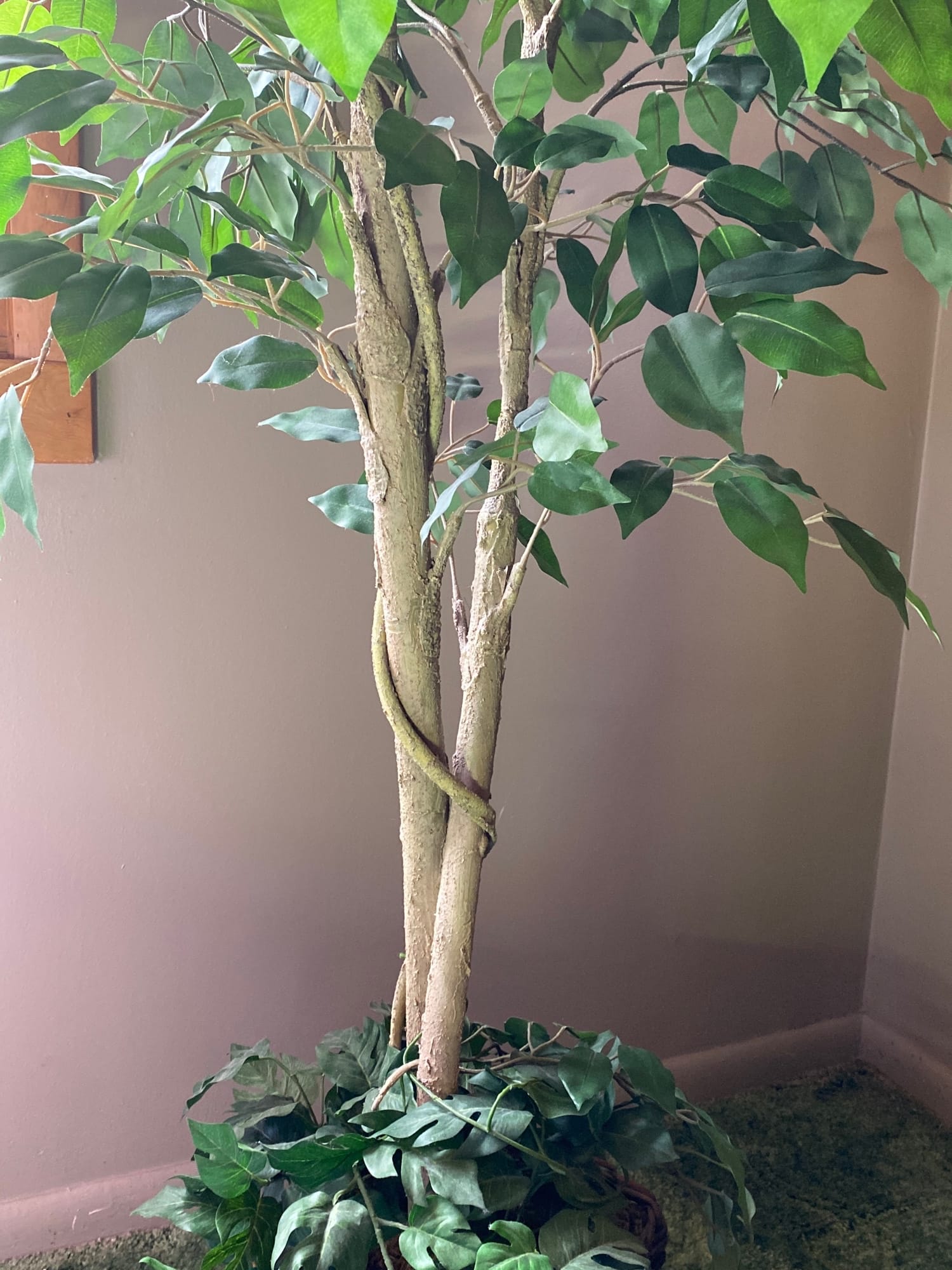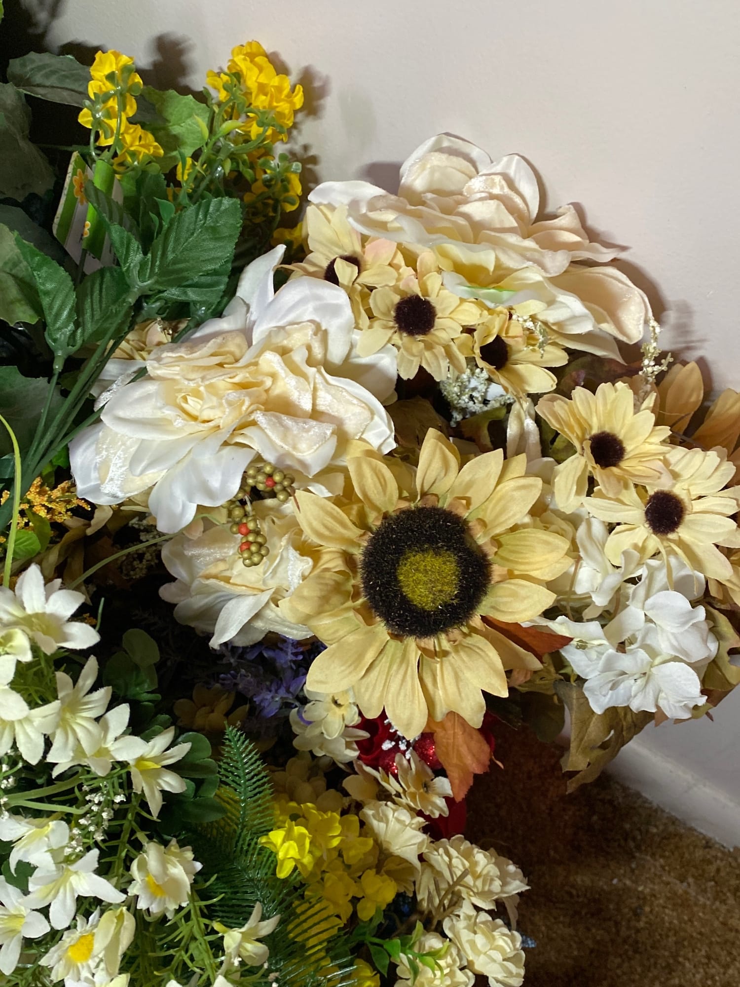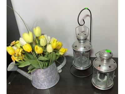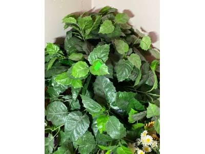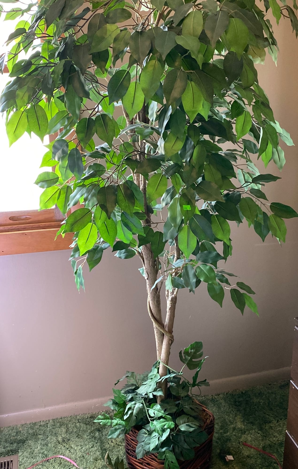 730 Silk flower assortment, tin watering can & plastic tree 72in