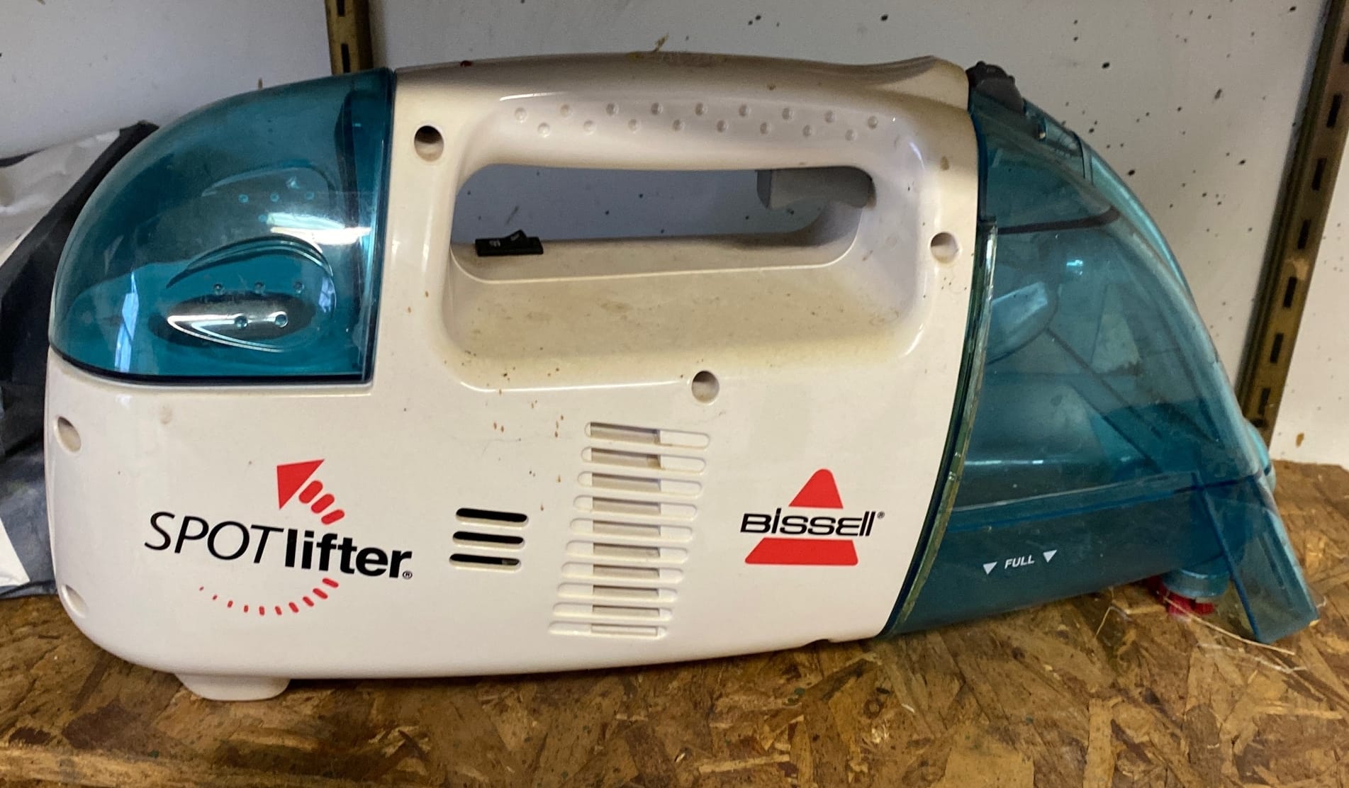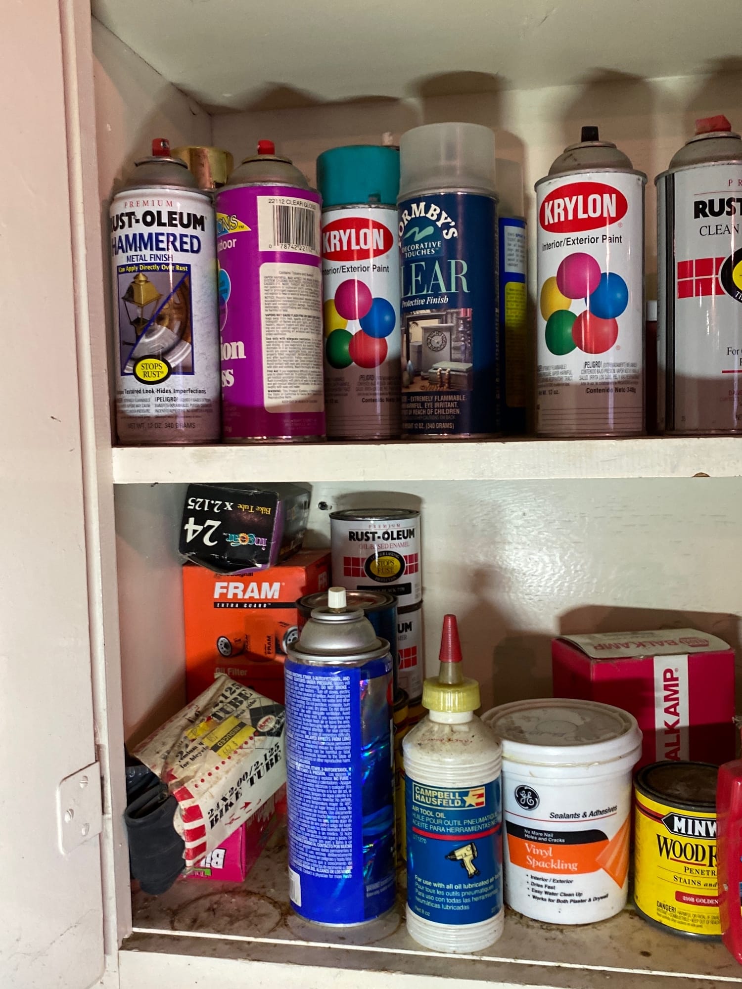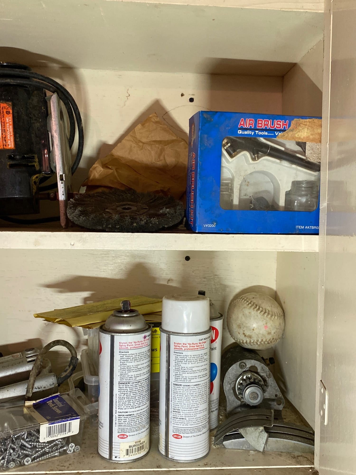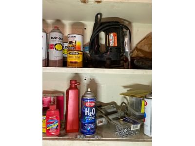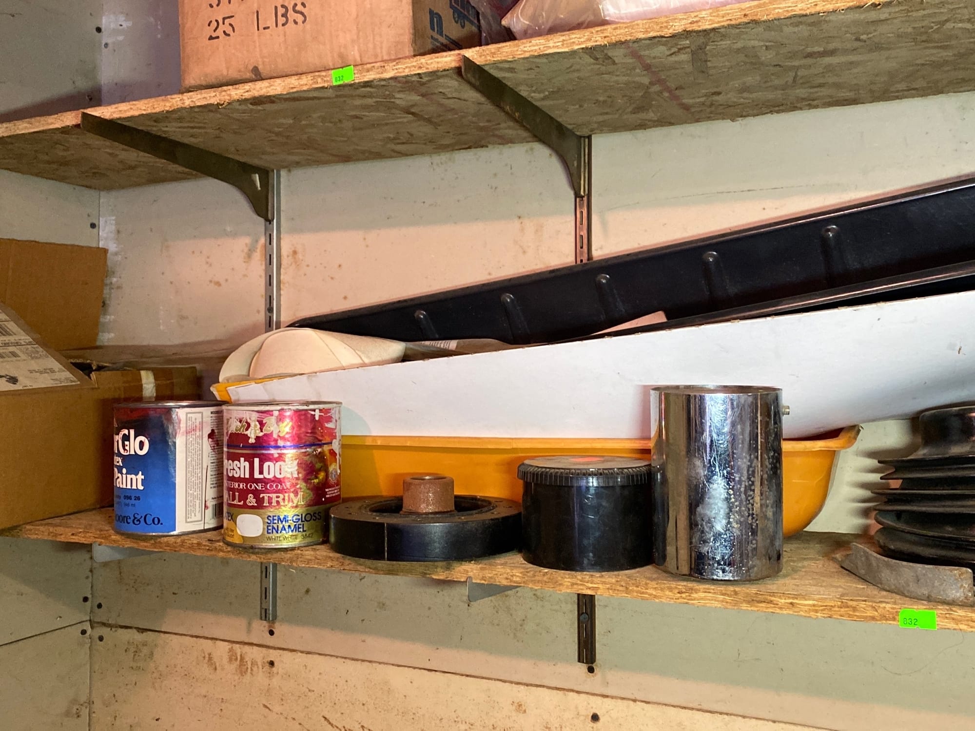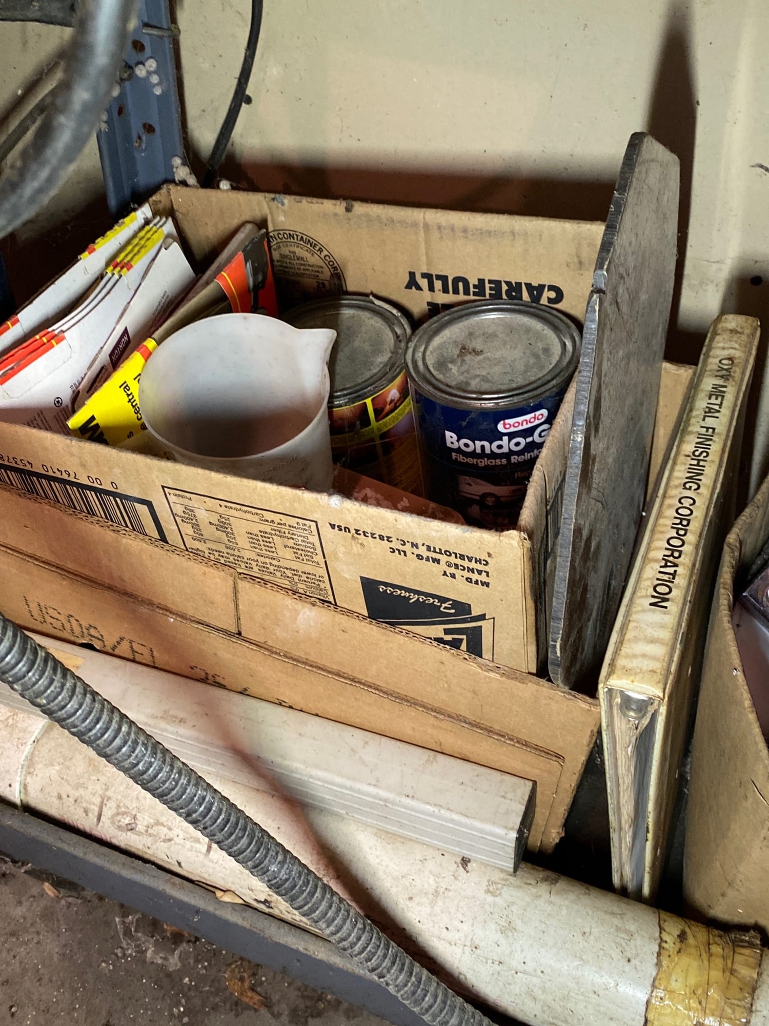 719 Bissell spot lifter, painting supplies, washer fluid, car cleaning supplies, stretch film, tool box, misc.