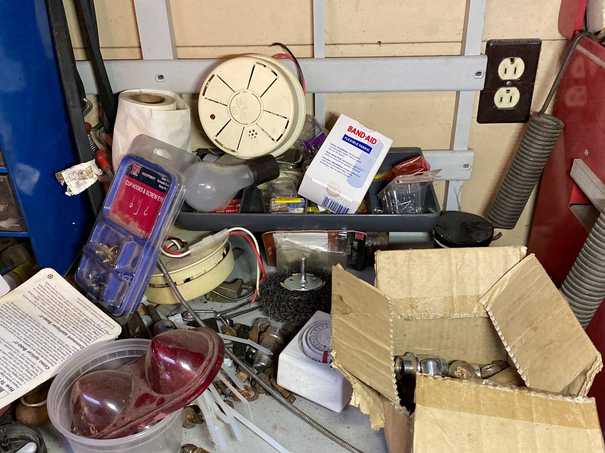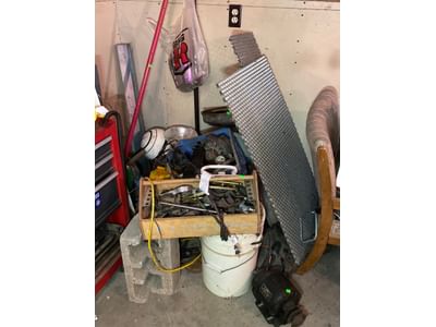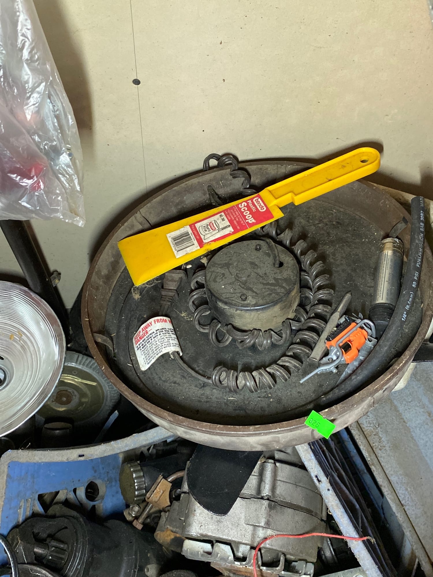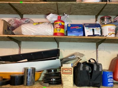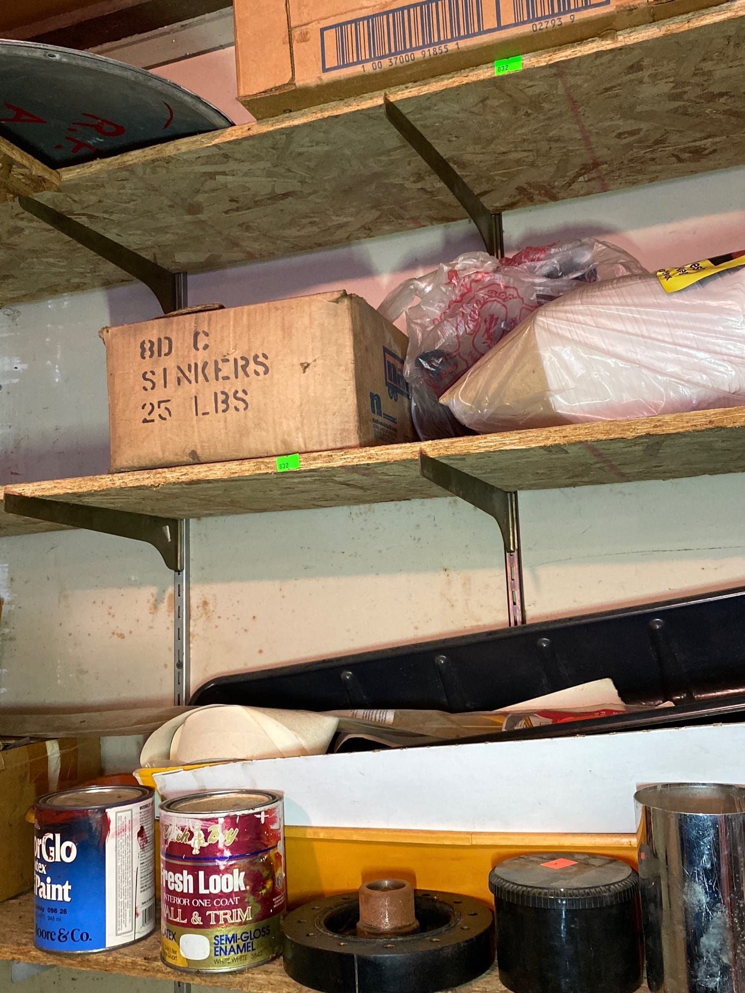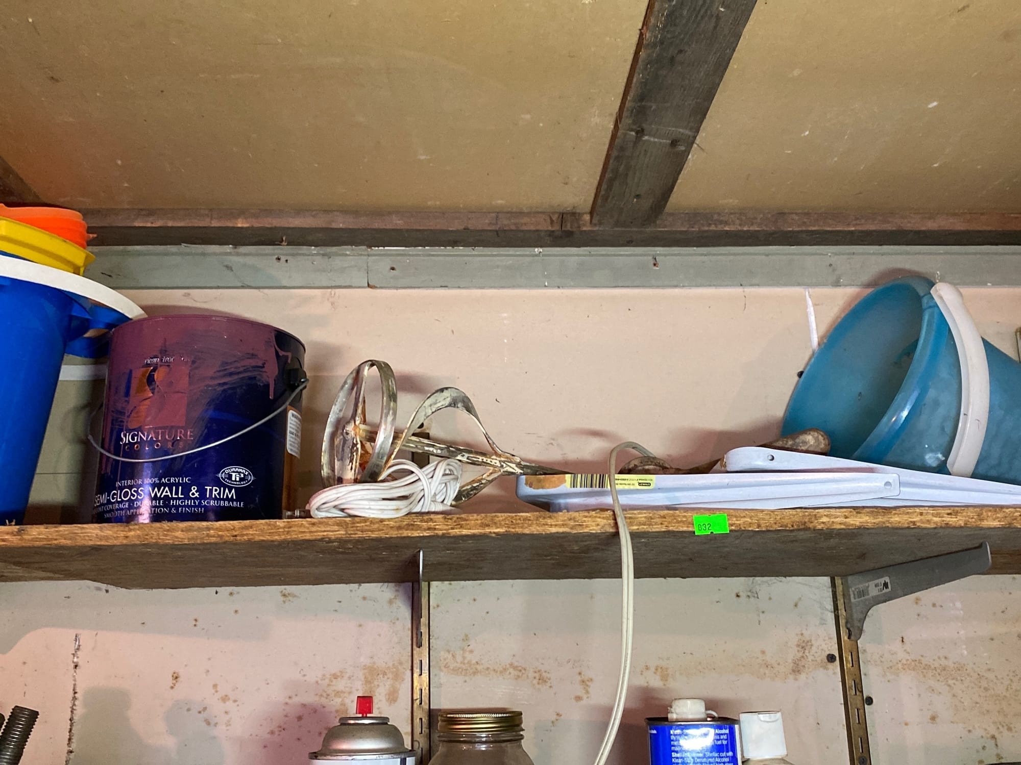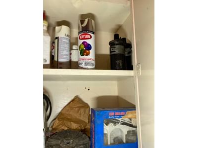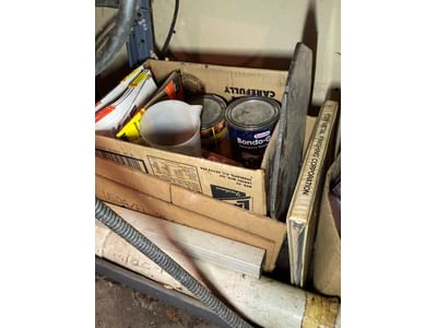 719 Bissell spot lifter, painting supplies, washer fluid, car cleaning supplies, stretch film, tool box, misc.