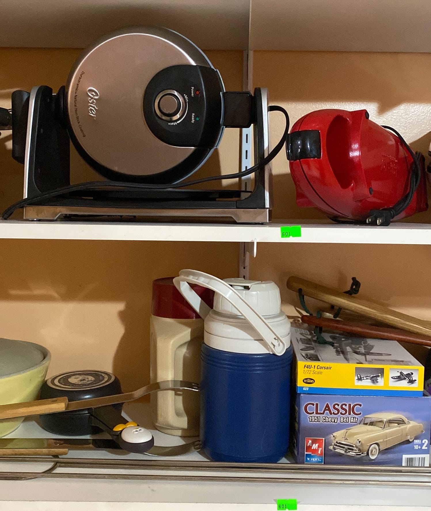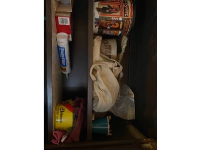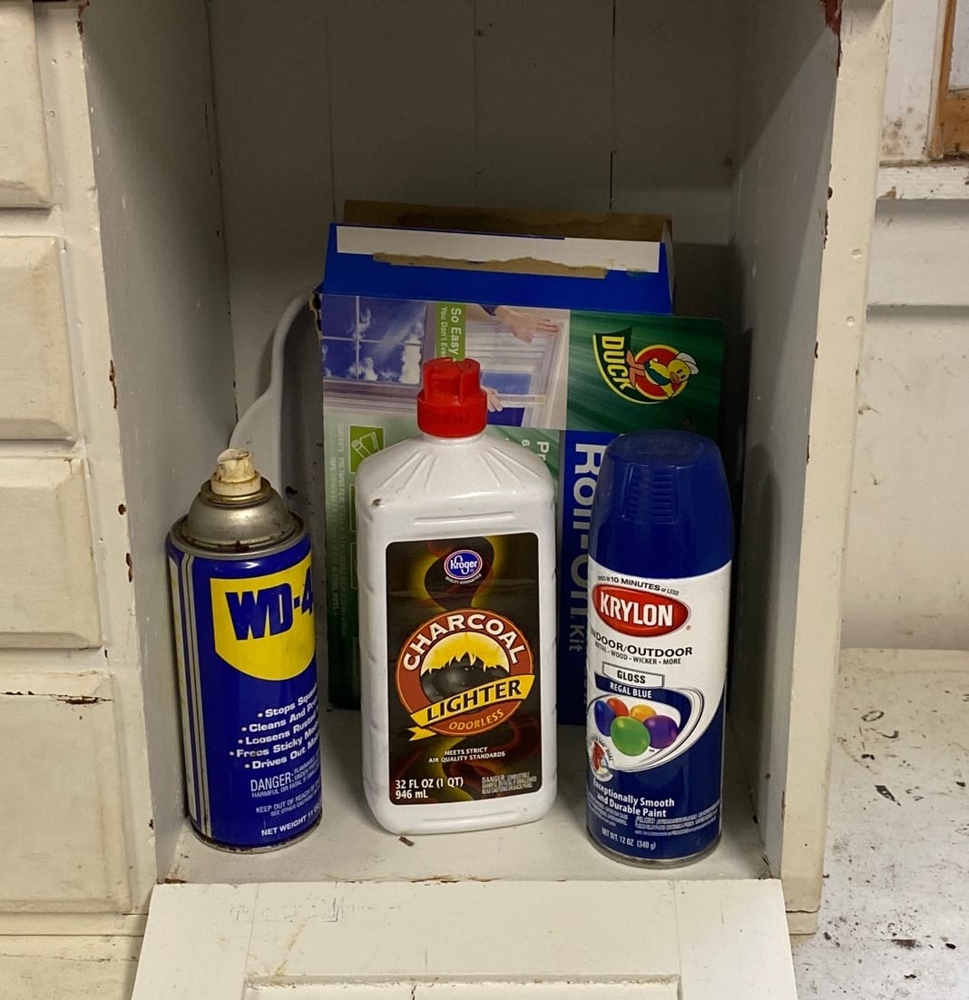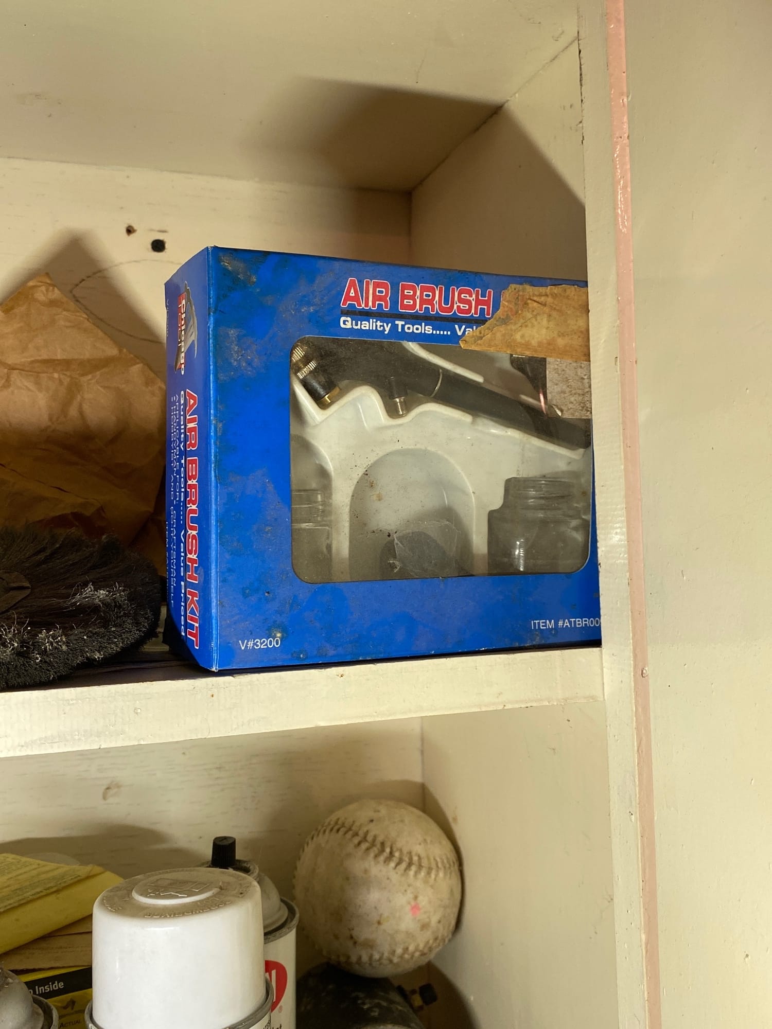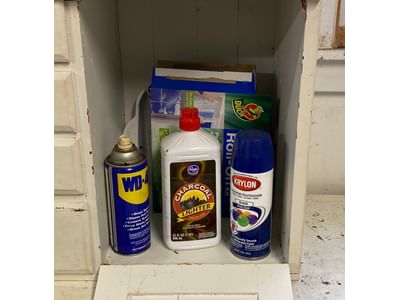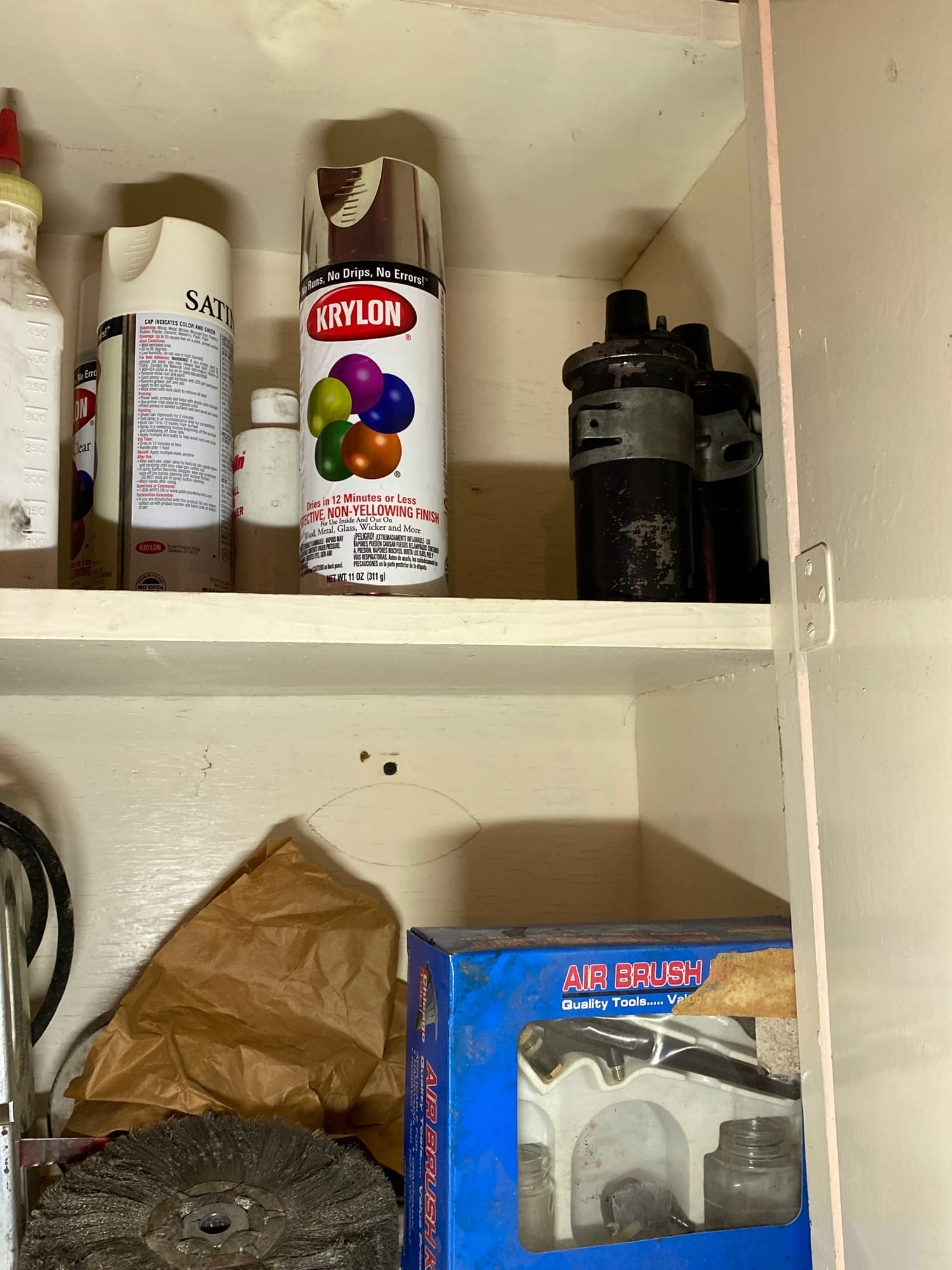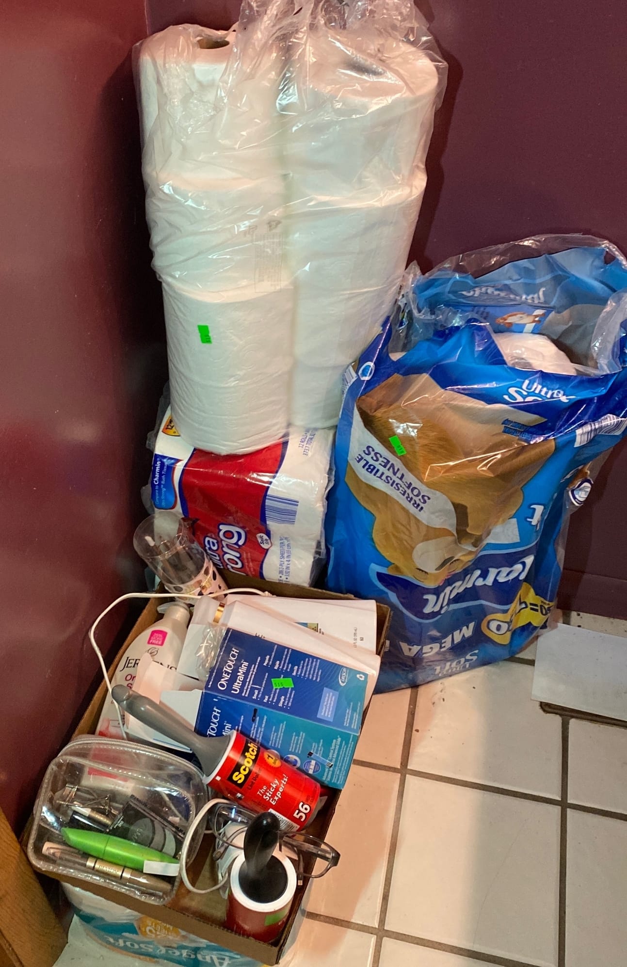 719 Bissell spot lifter, painting supplies, washer fluid, car cleaning supplies, stretch film, tool box, misc.