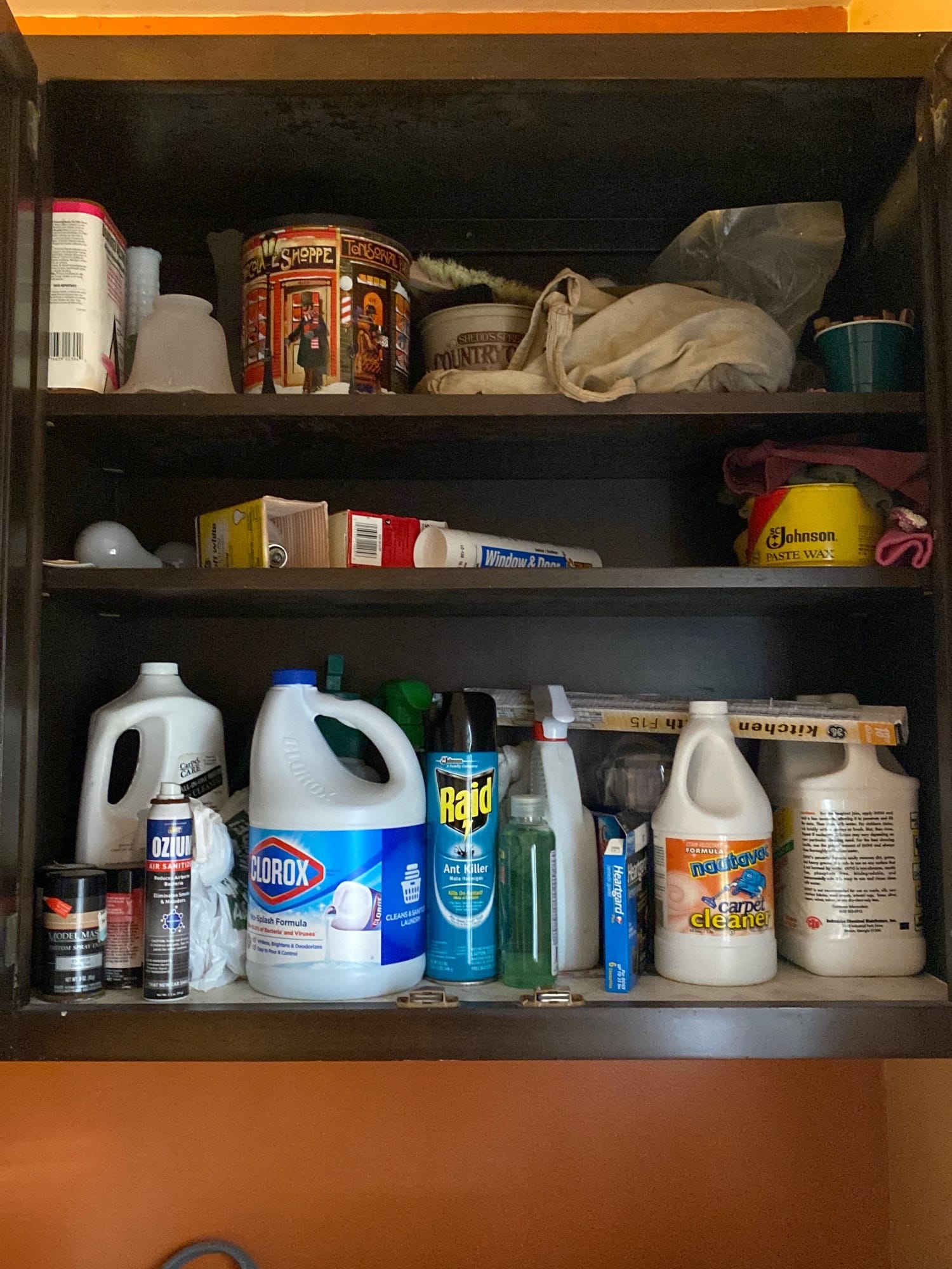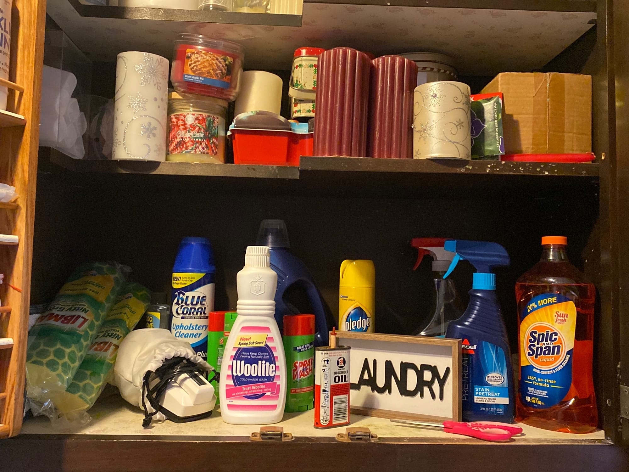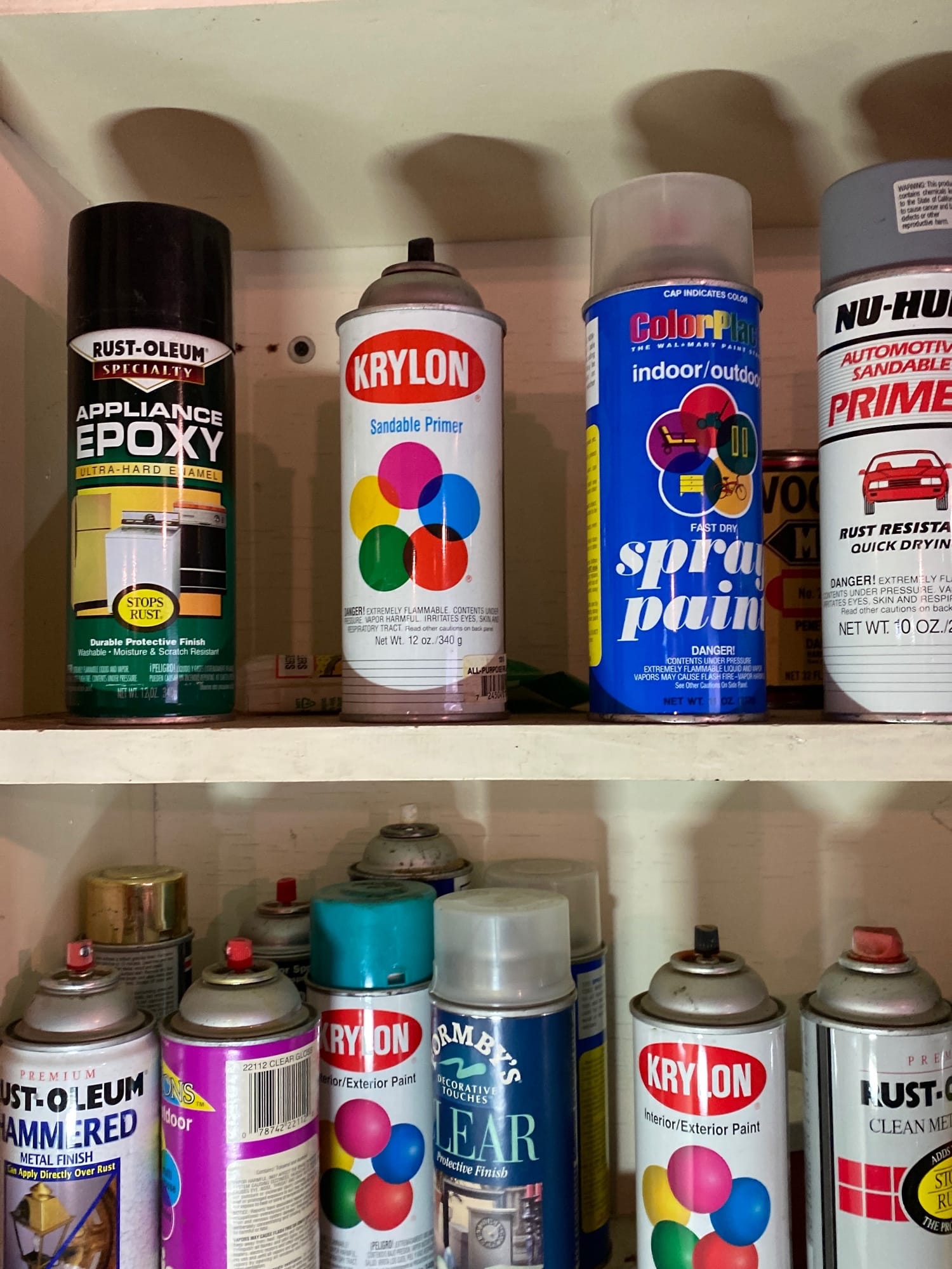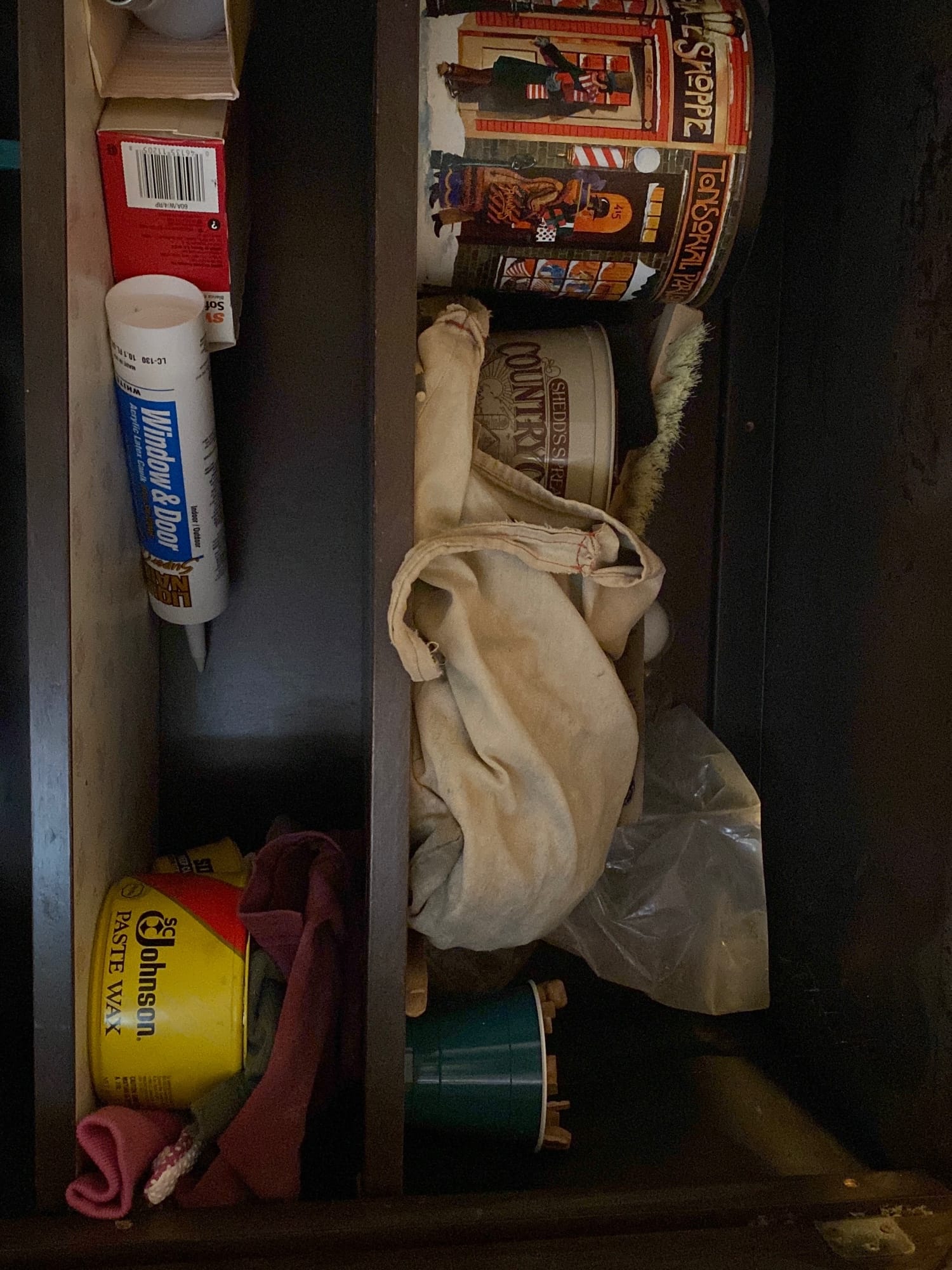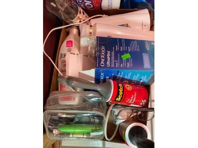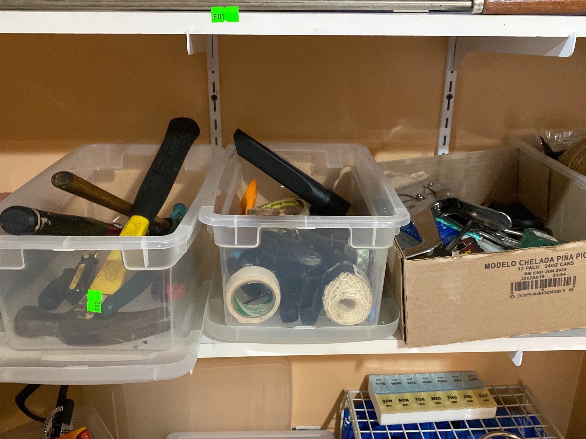 719 Bissell spot lifter, painting supplies, washer fluid, car cleaning supplies, stretch film, tool box, misc.