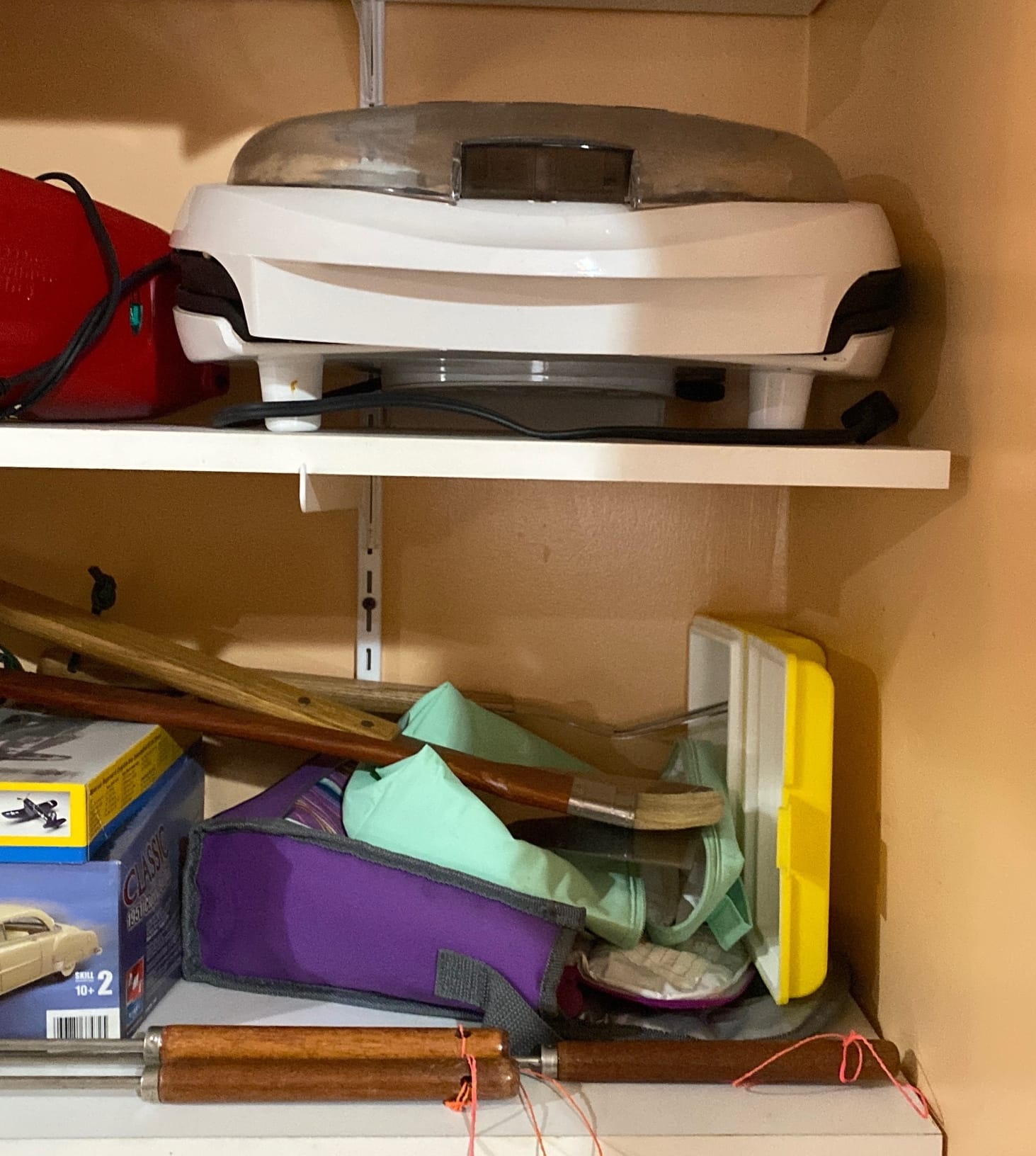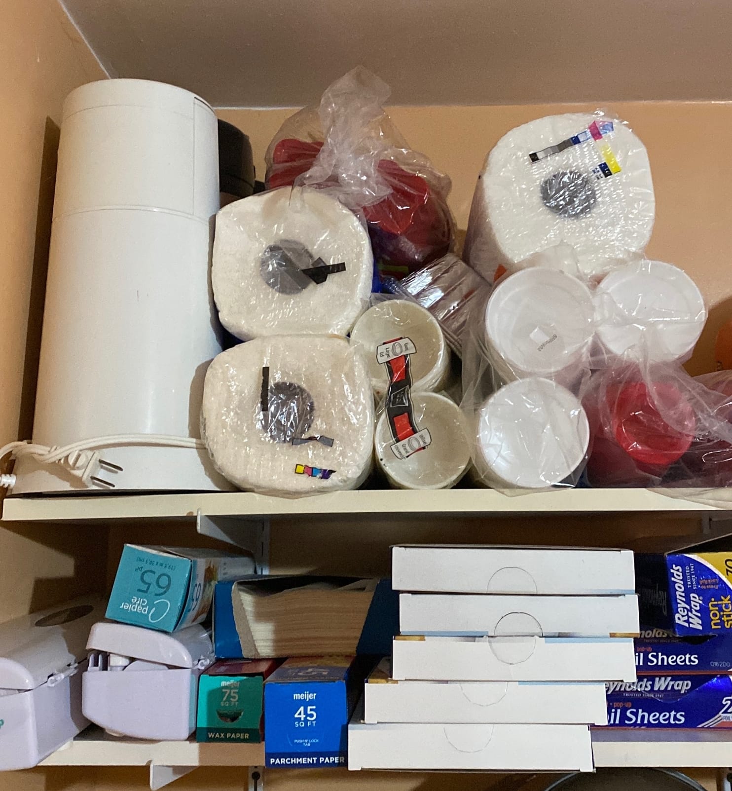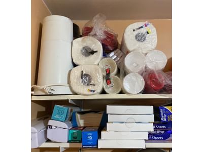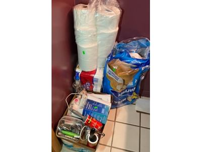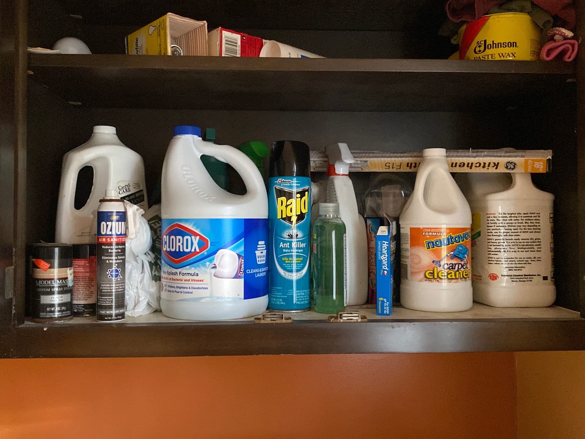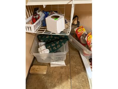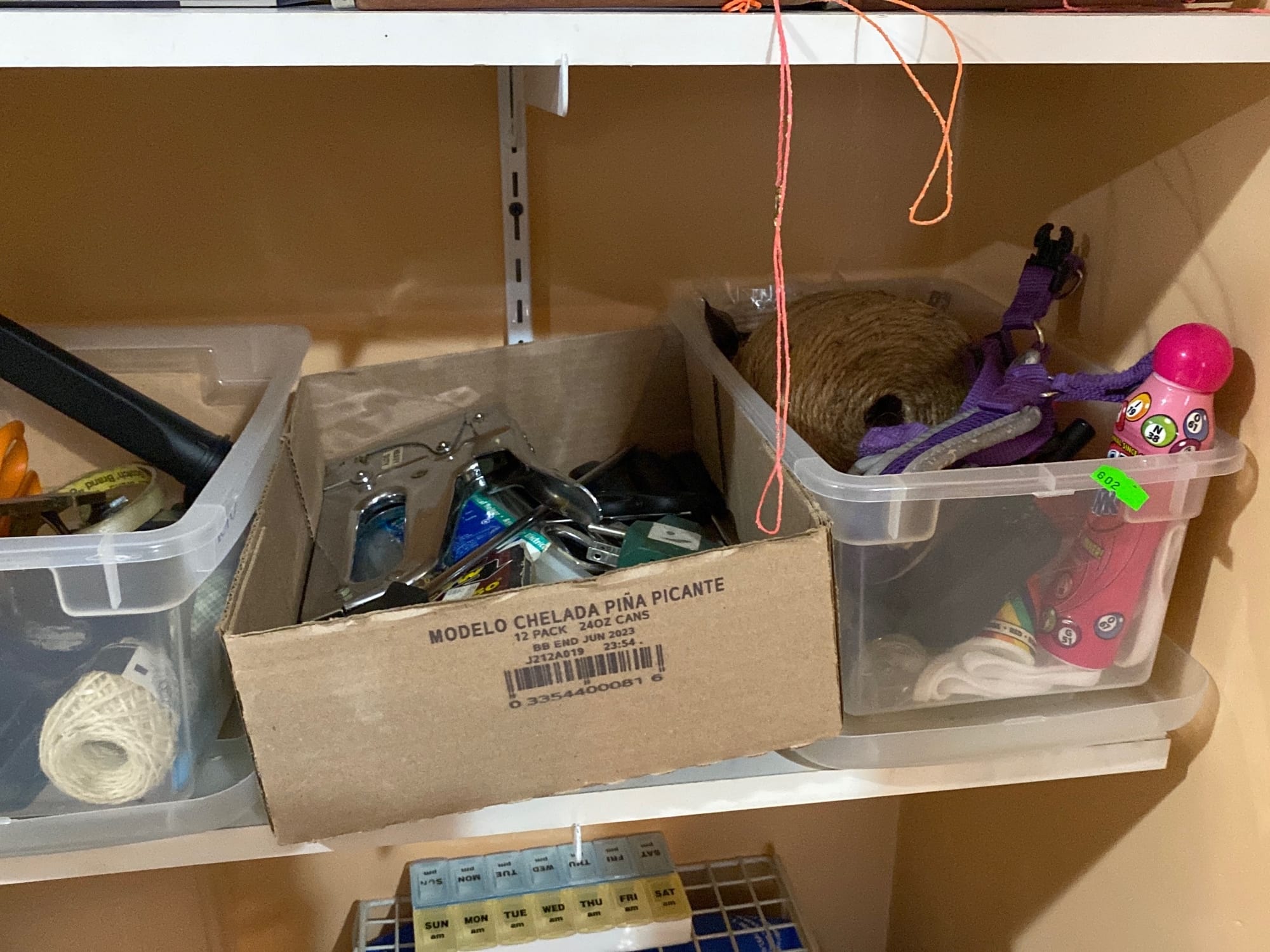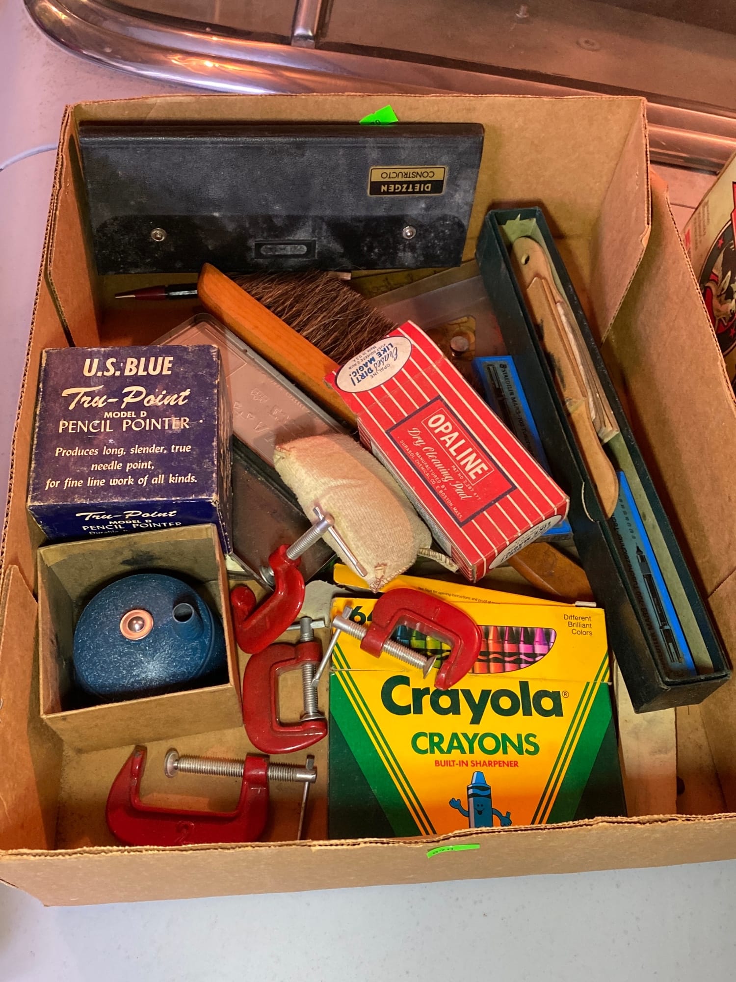719 Bissell spot lifter, painting supplies, washer fluid, car cleaning supplies, stretch film, tool box, misc.
