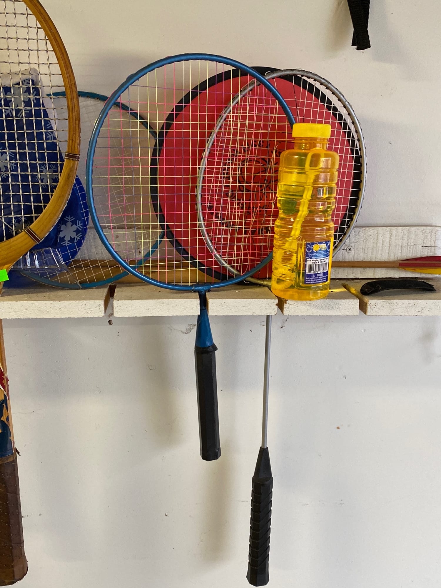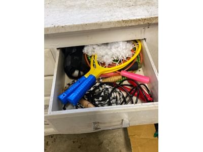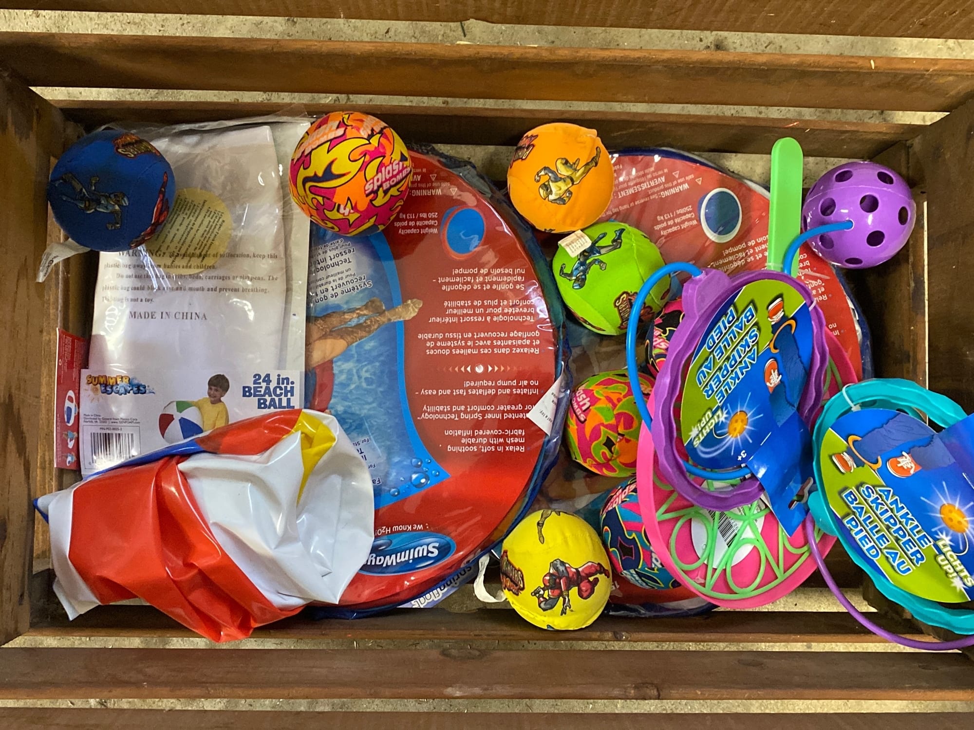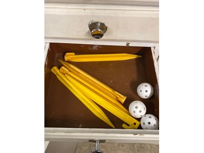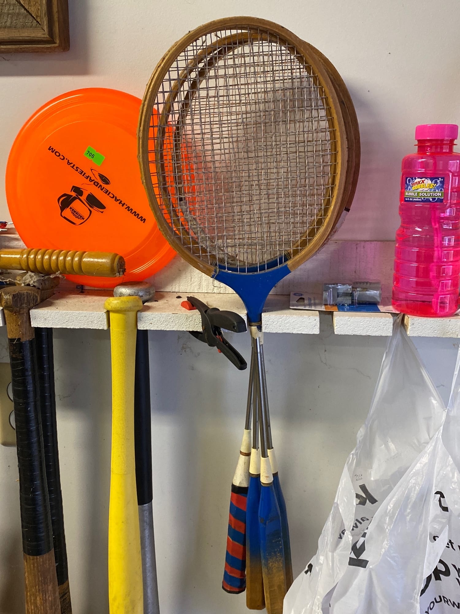 720 Sports equipment, bow, cones, plastic containers, misc.