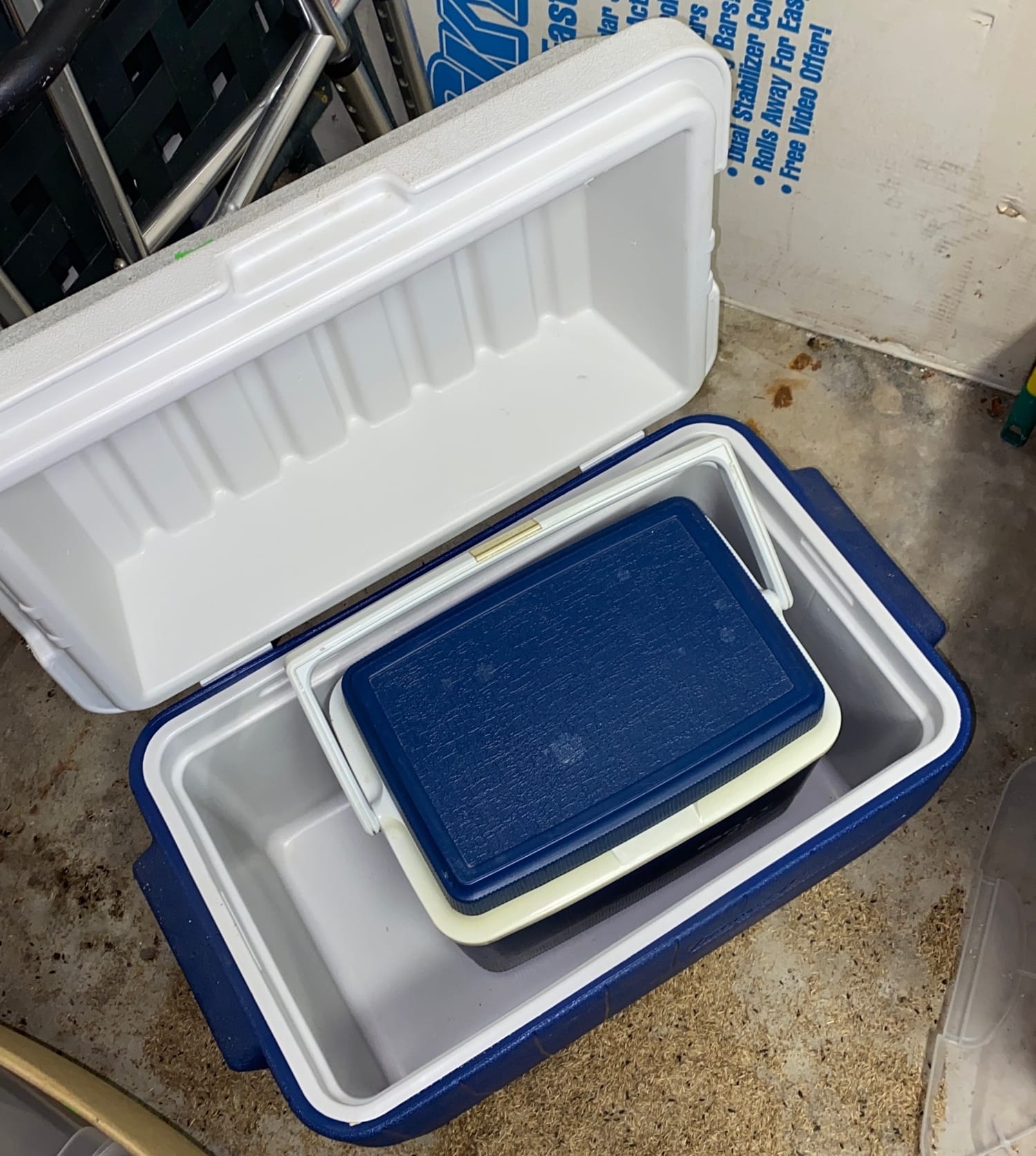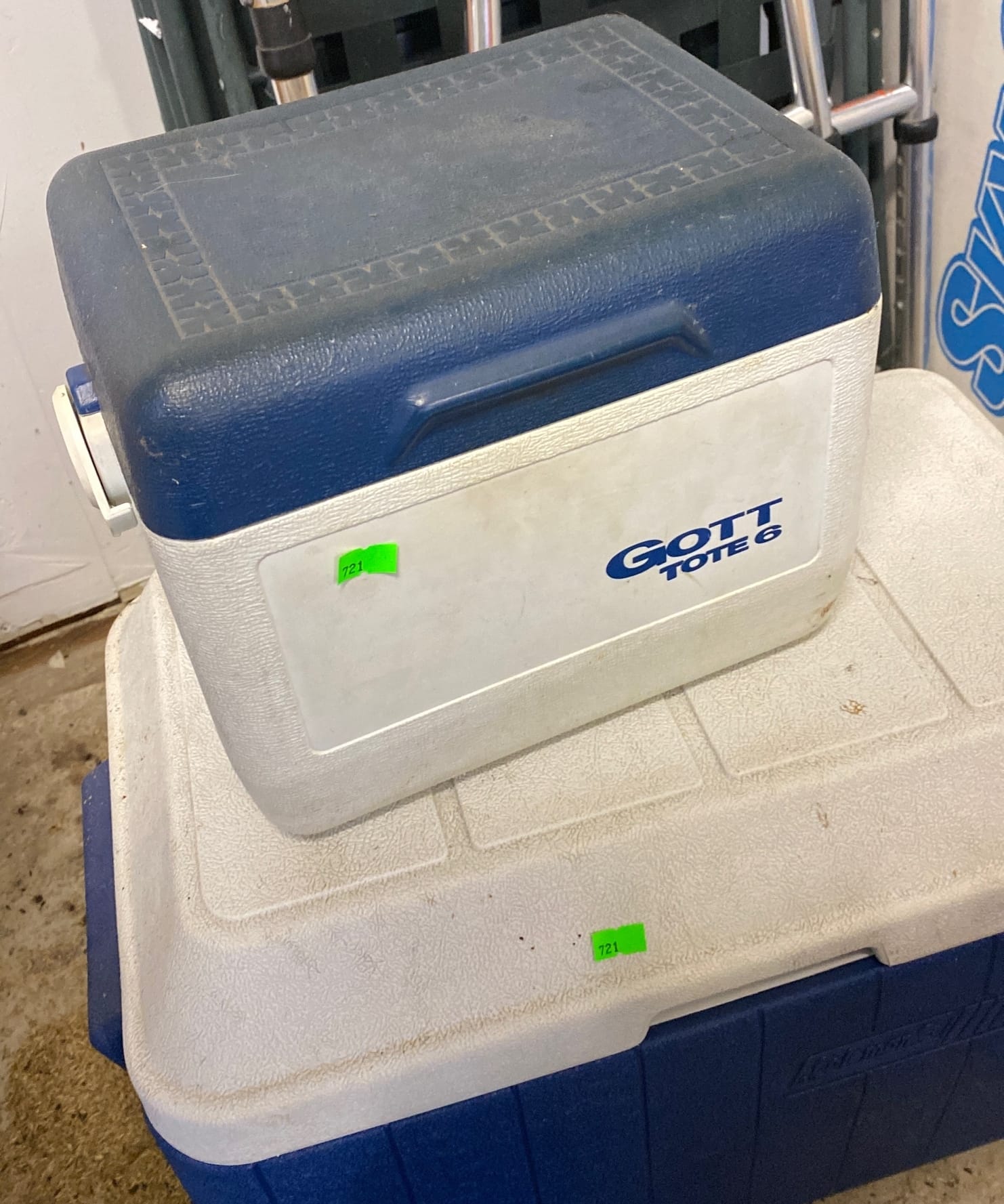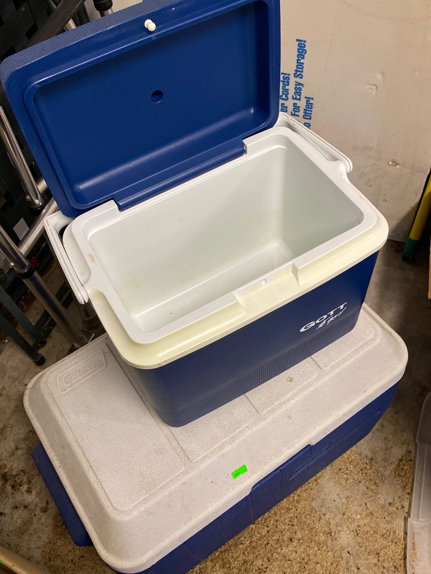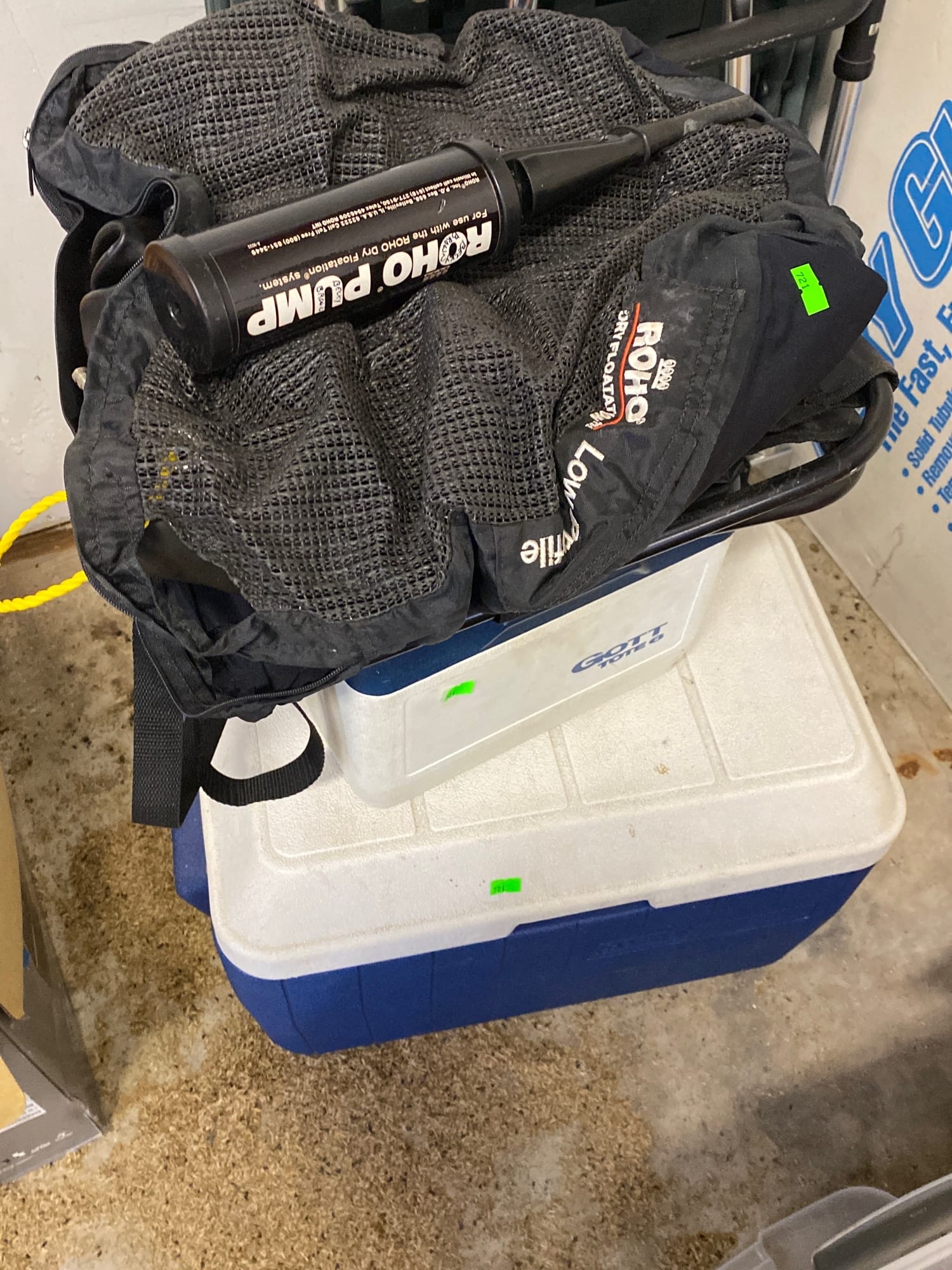 721 Roho dry floatation cushion, stool, Coleman and Gott coolers