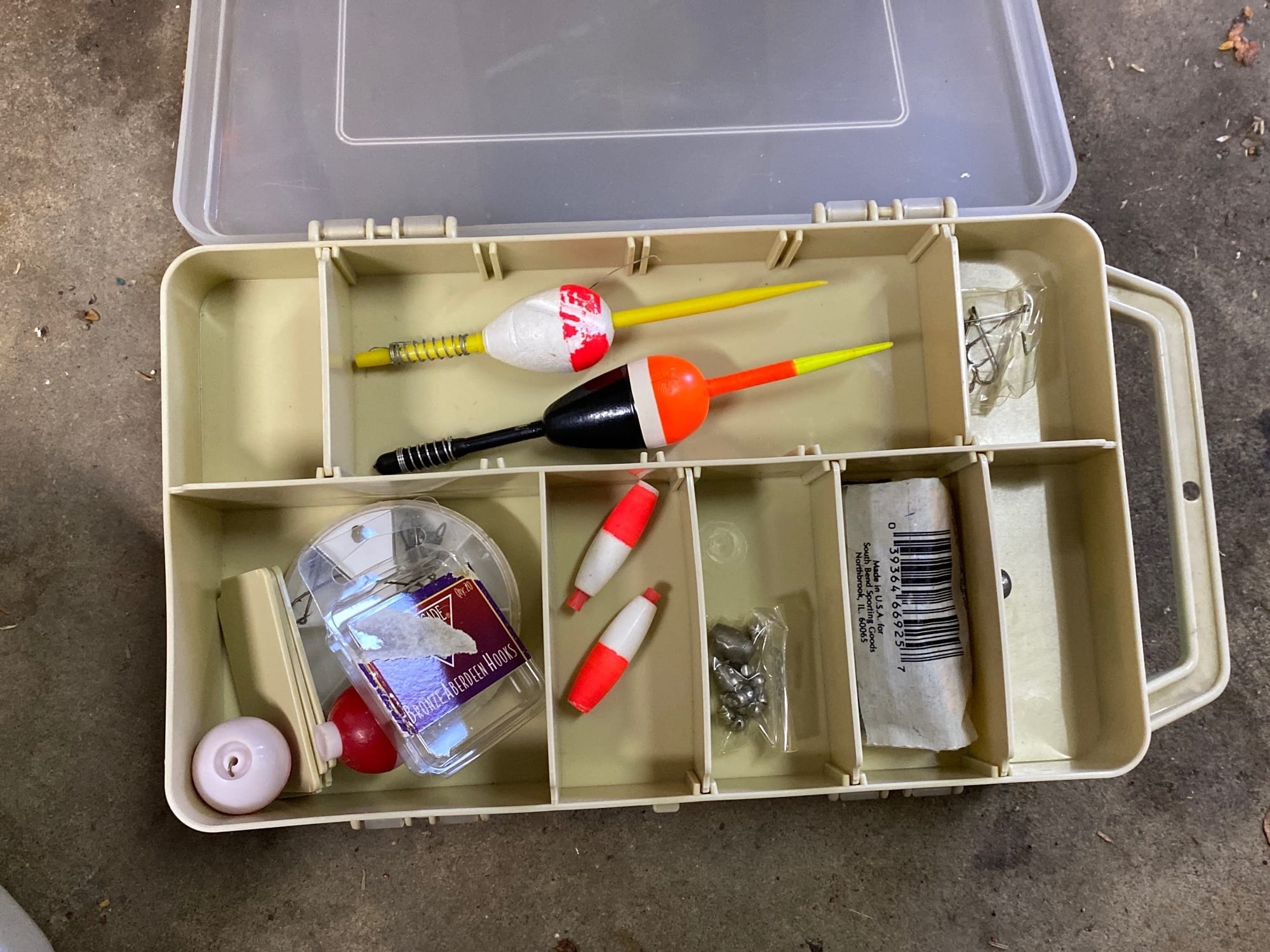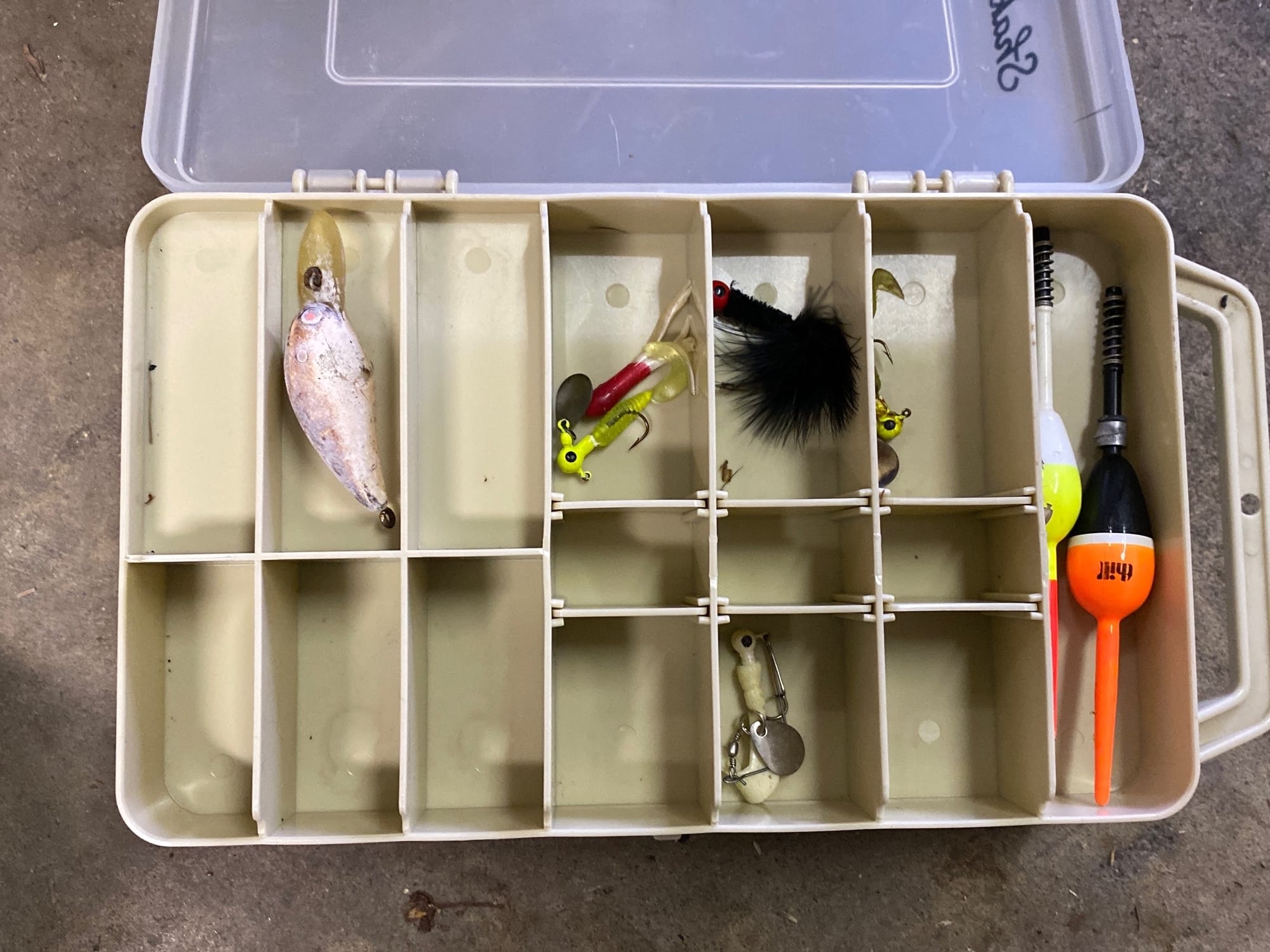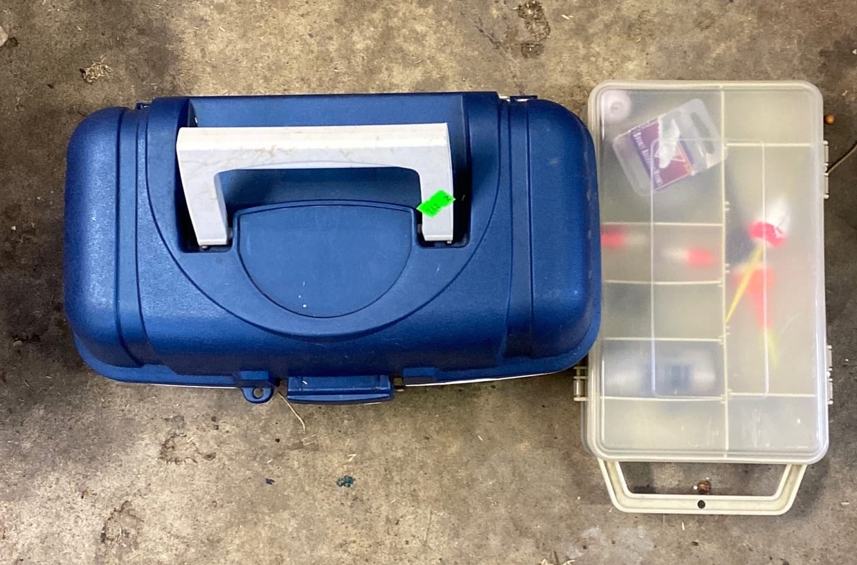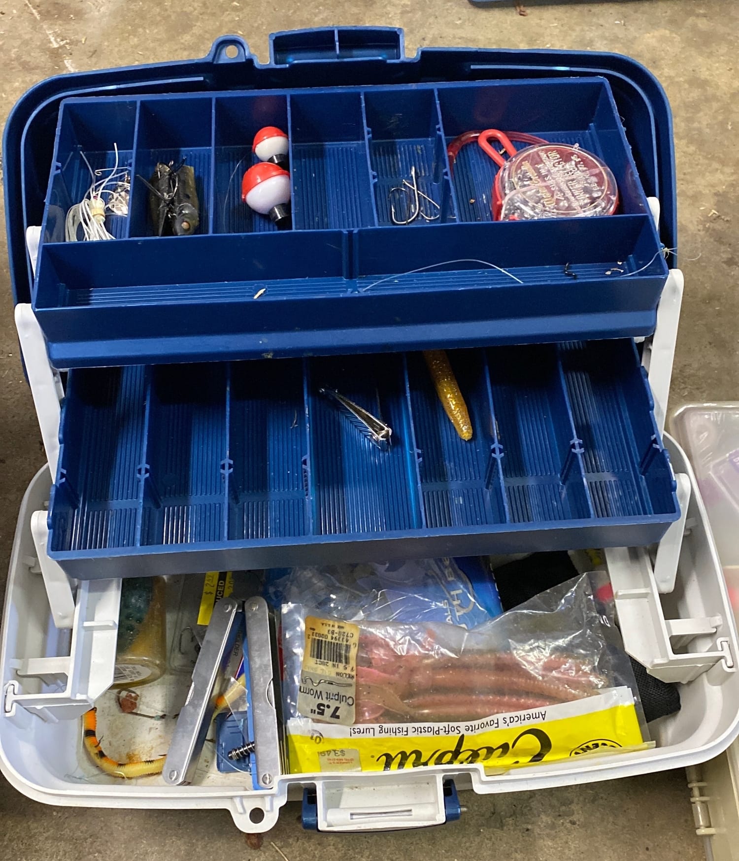 742 Tacklebox and plastic organizer with fishing tackle, multi tool