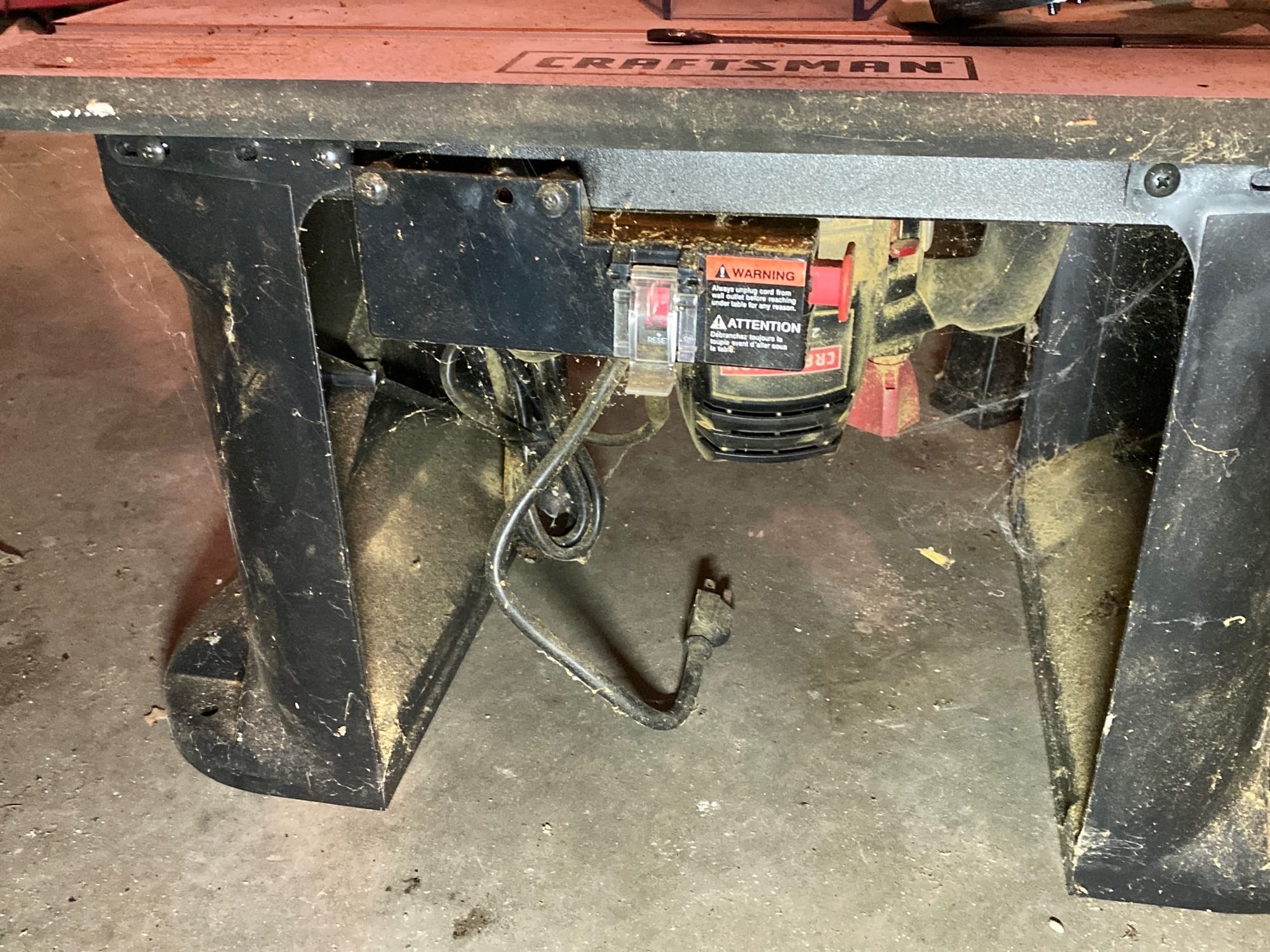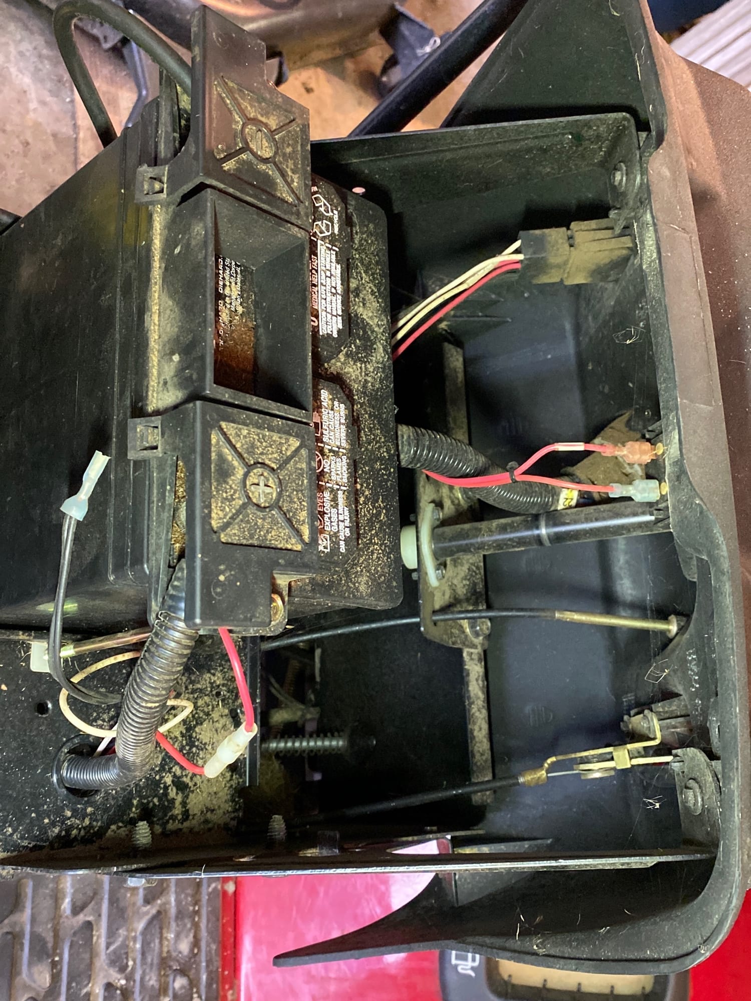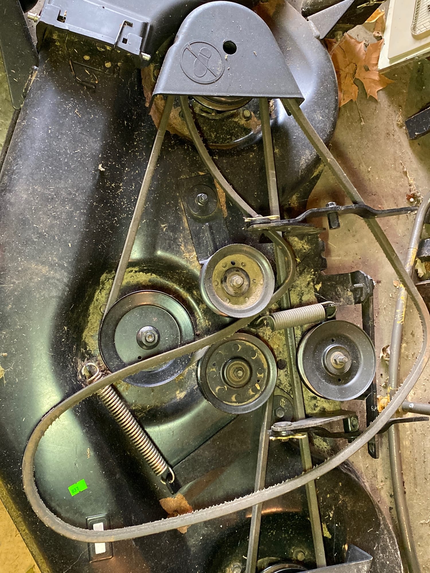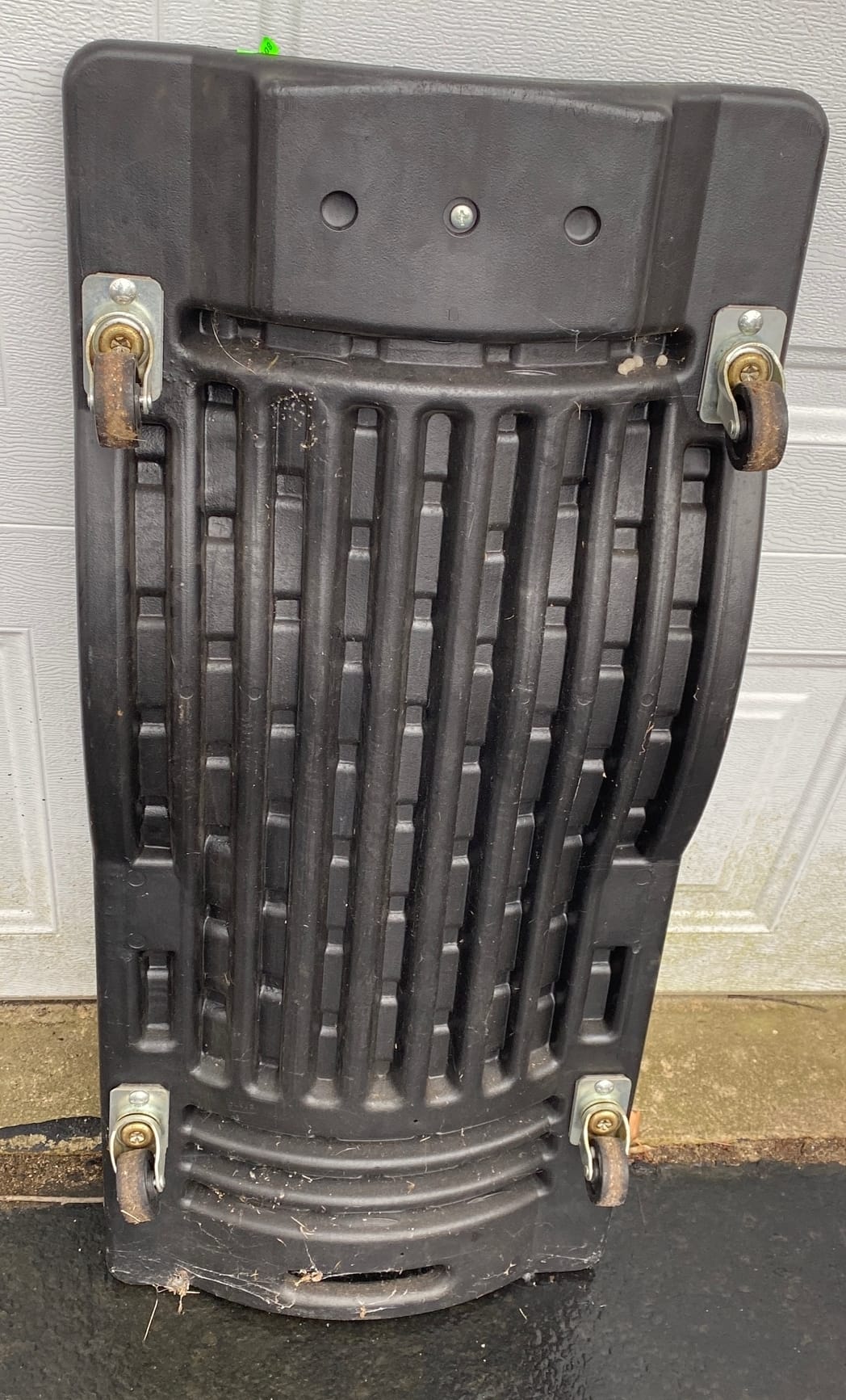 837 Craftsman GT5000 riding mower with 48in deck, 48in front blade manual lift, rear wt. platform, rear tire chains, Kohler 25hp engine, no hour meter, Battery is dead