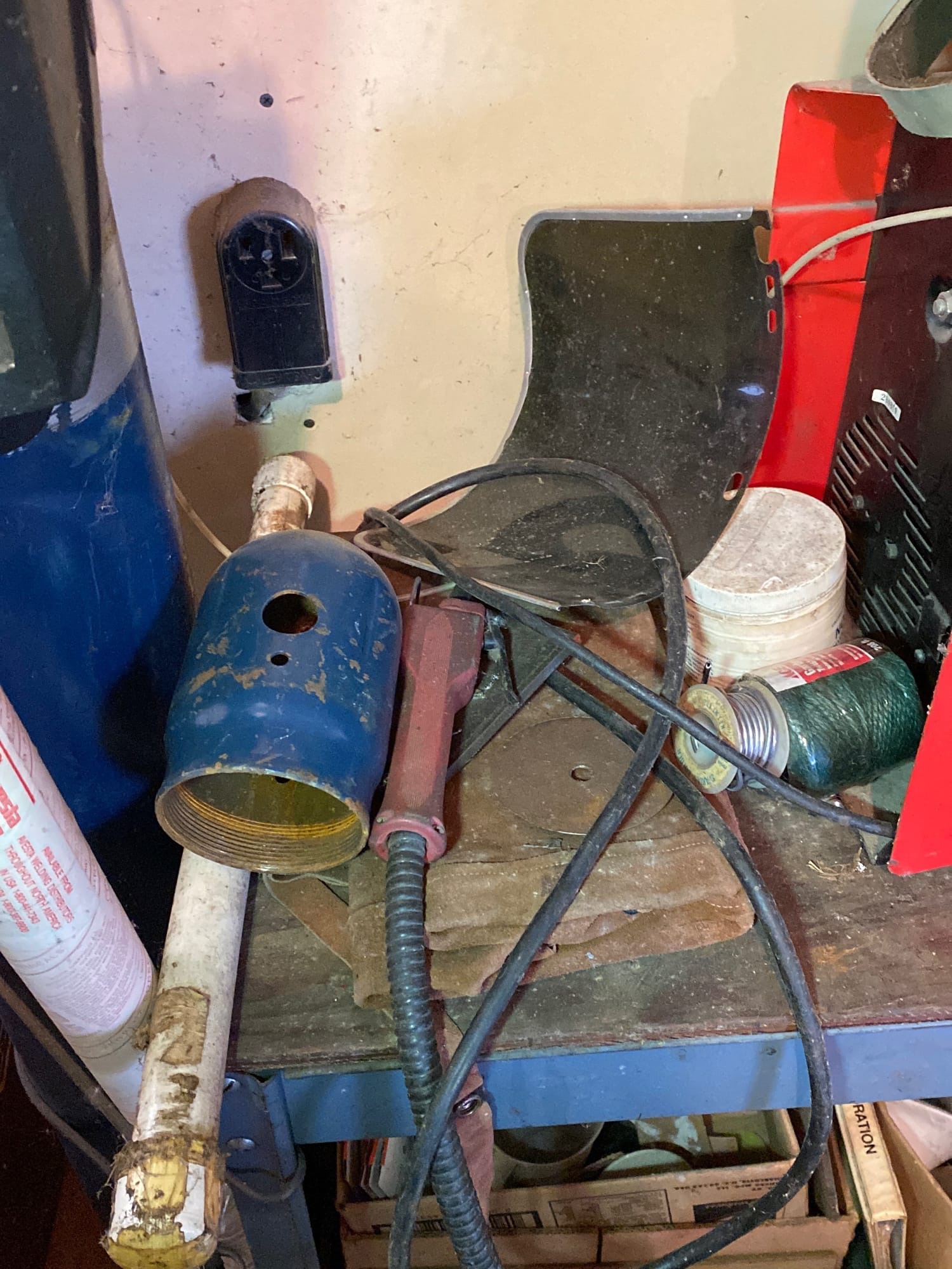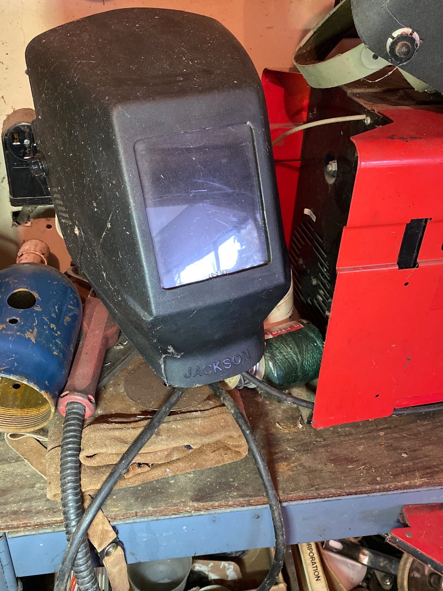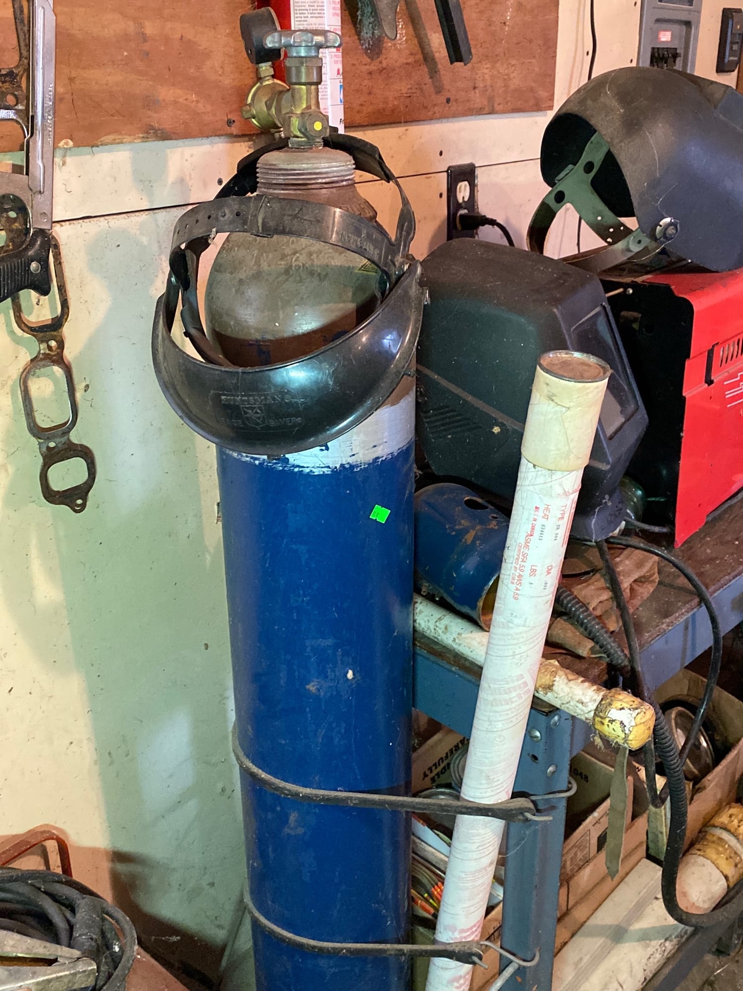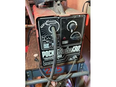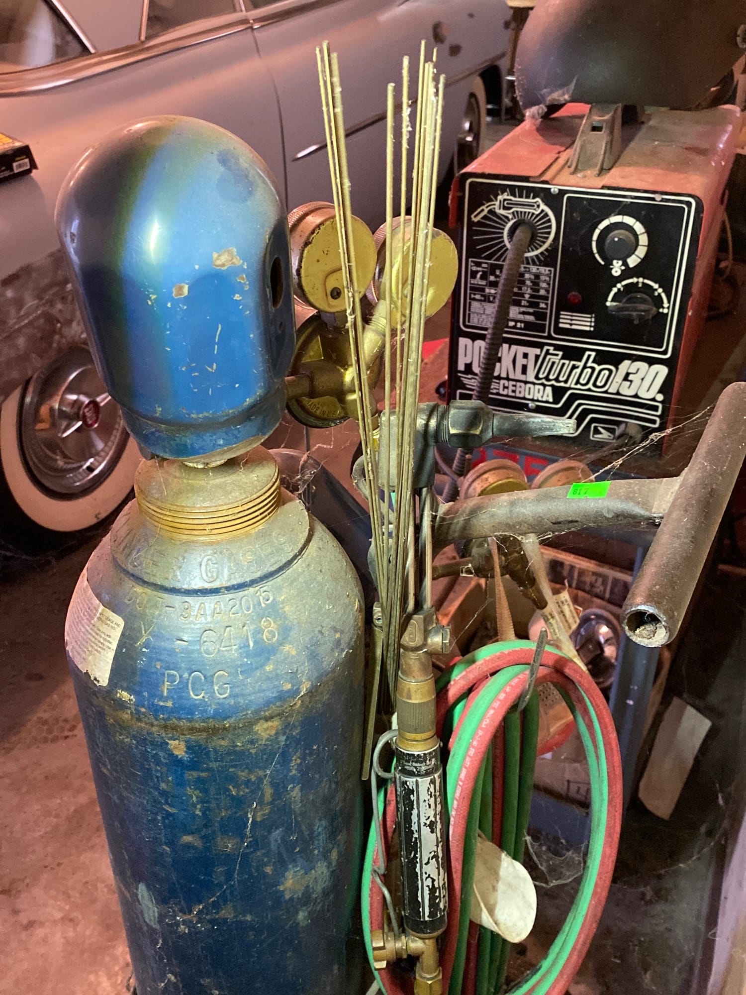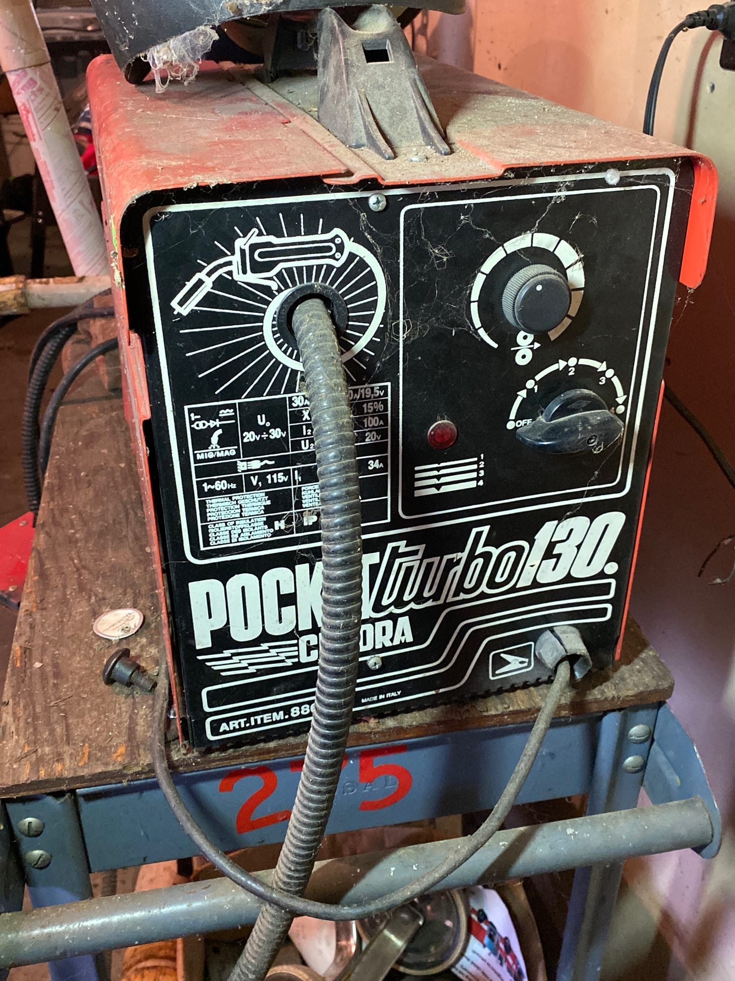 818 Cebora Pocket turbo 130 wire welder with cart and contents inc. Argon tank, welding helmets, welding and brazing rod, wheels
