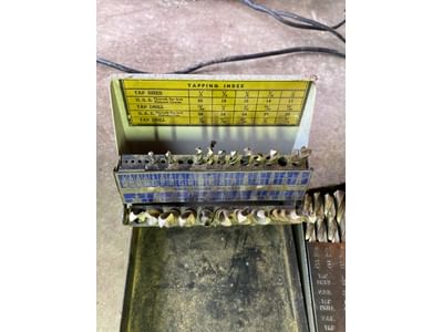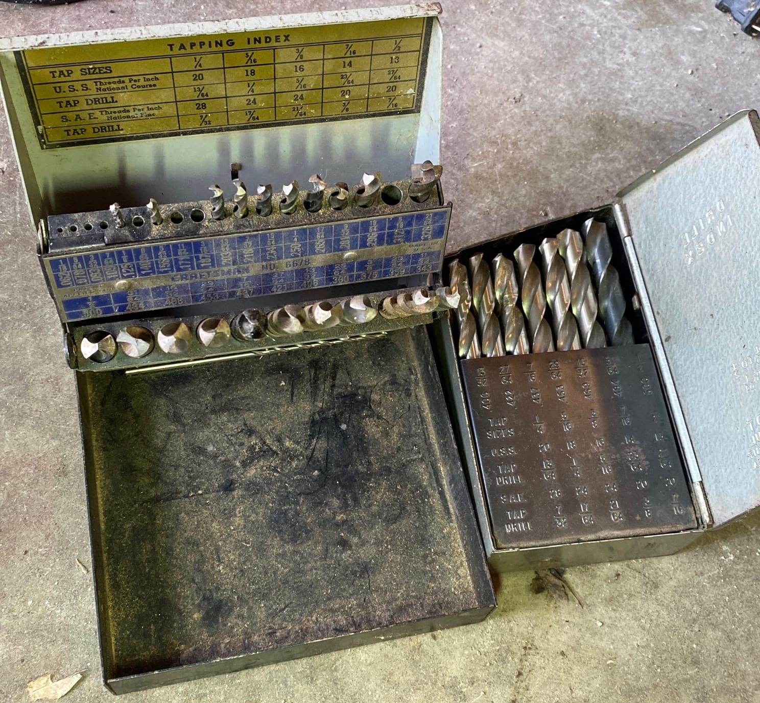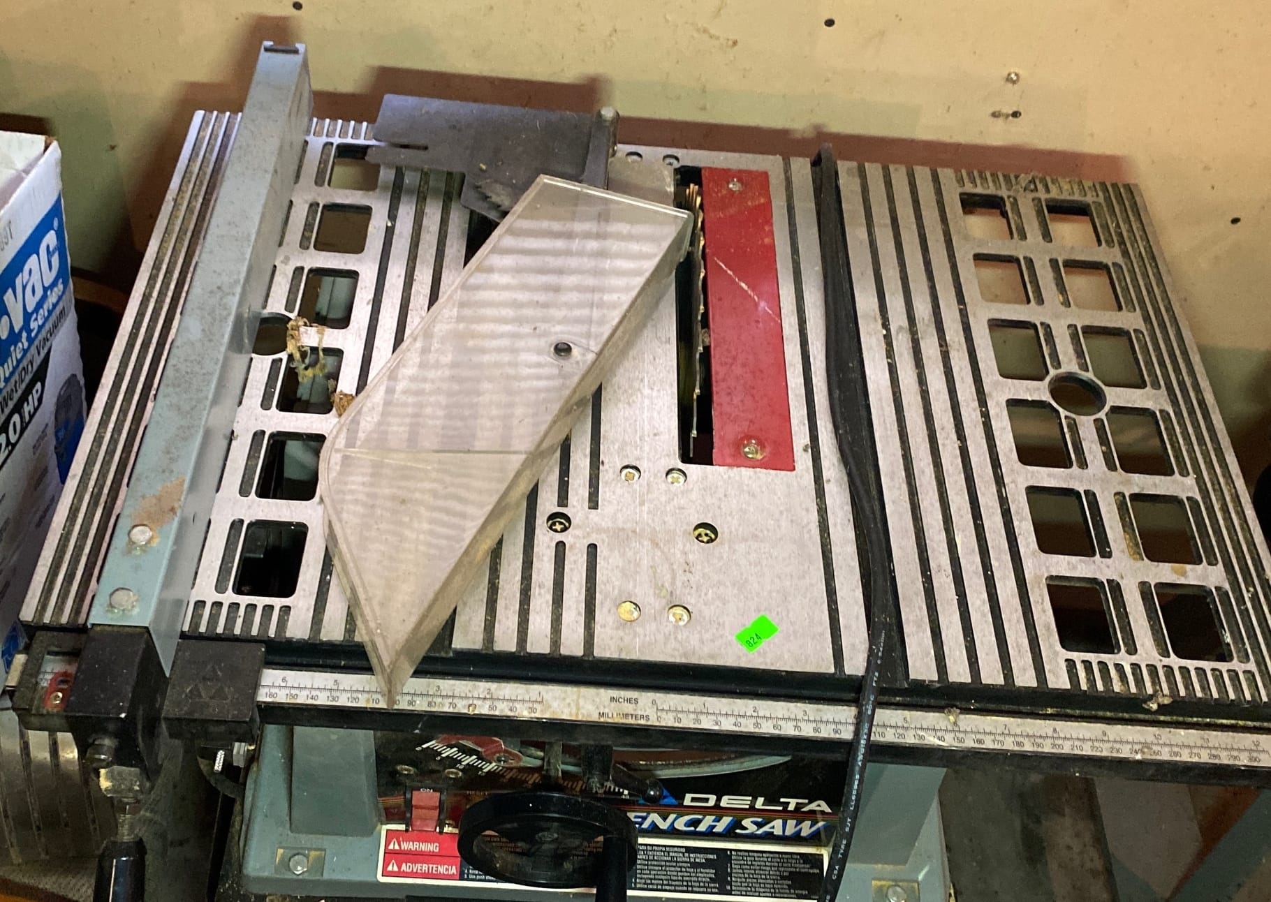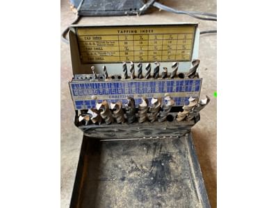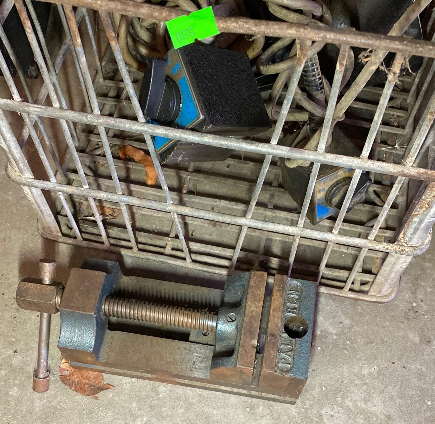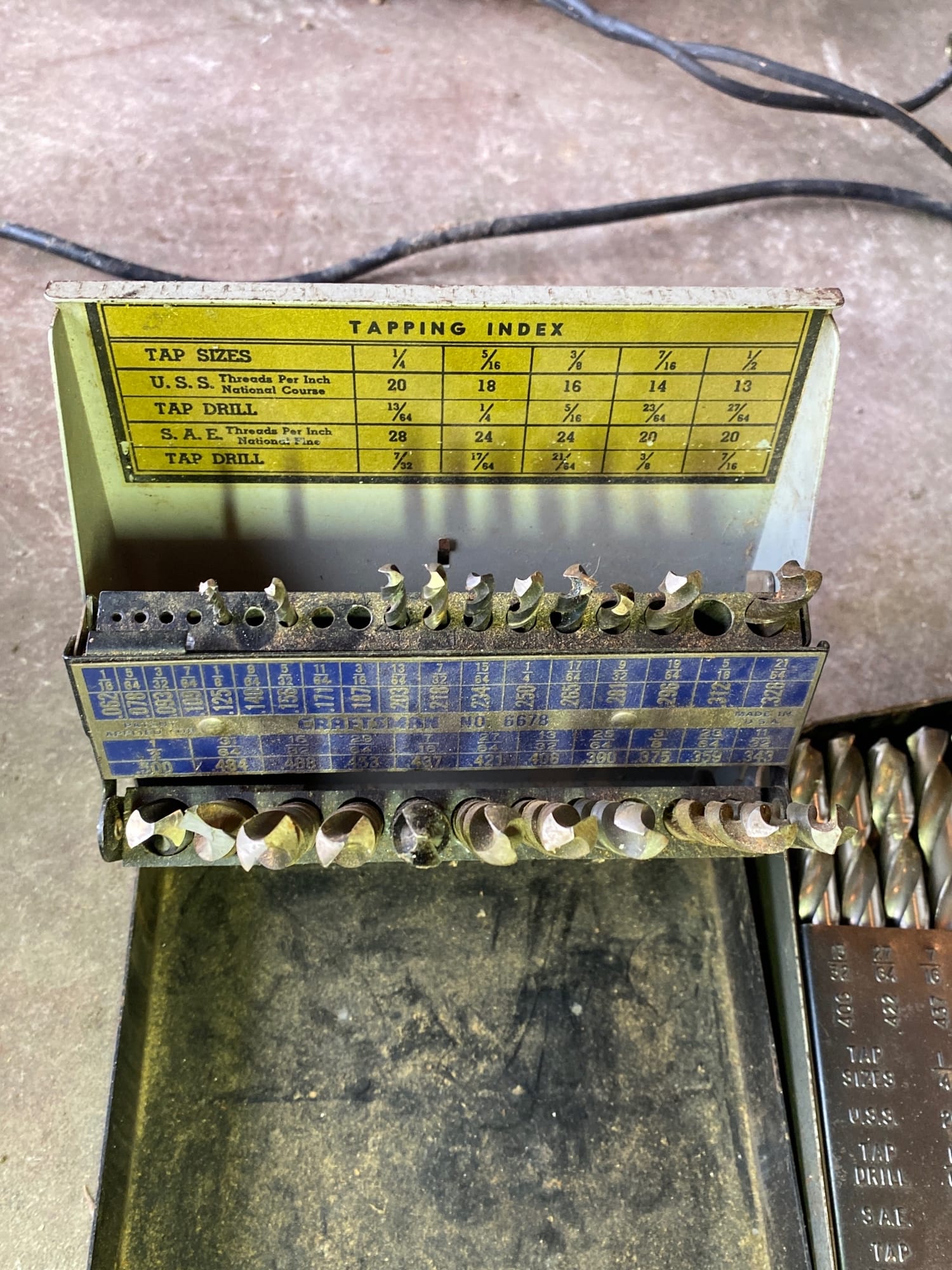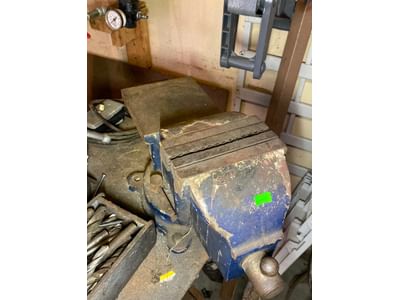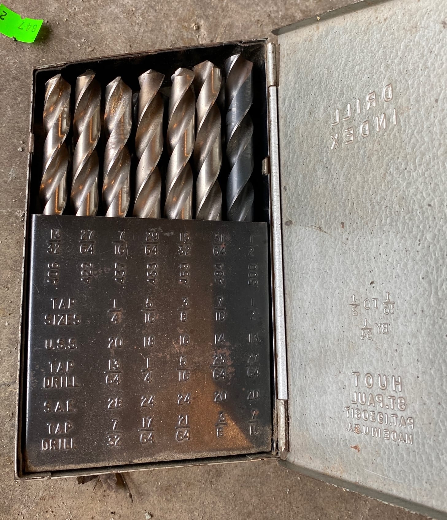 827 Drill bits, Delta homecraft drill press benchtop 33in and China 6in vise mounted on cast iron pedestal 34in tall