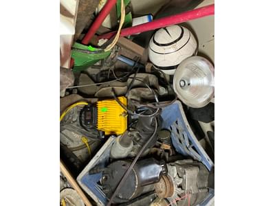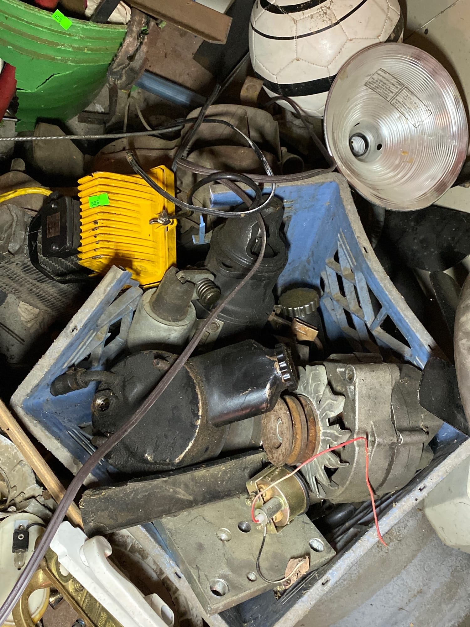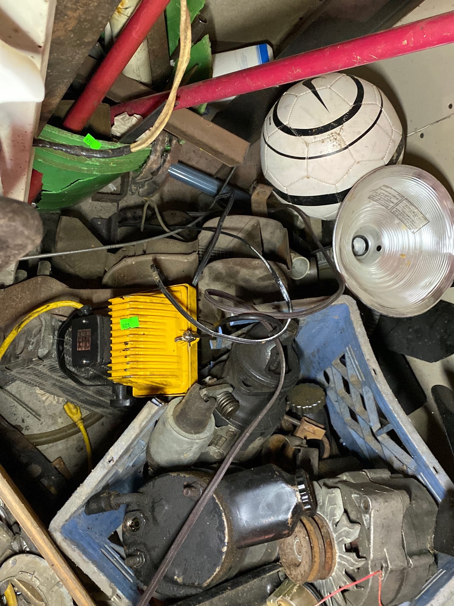 825 Scrap, misc. car parts, Delco Motor, shop lights, contents as shown in pictures