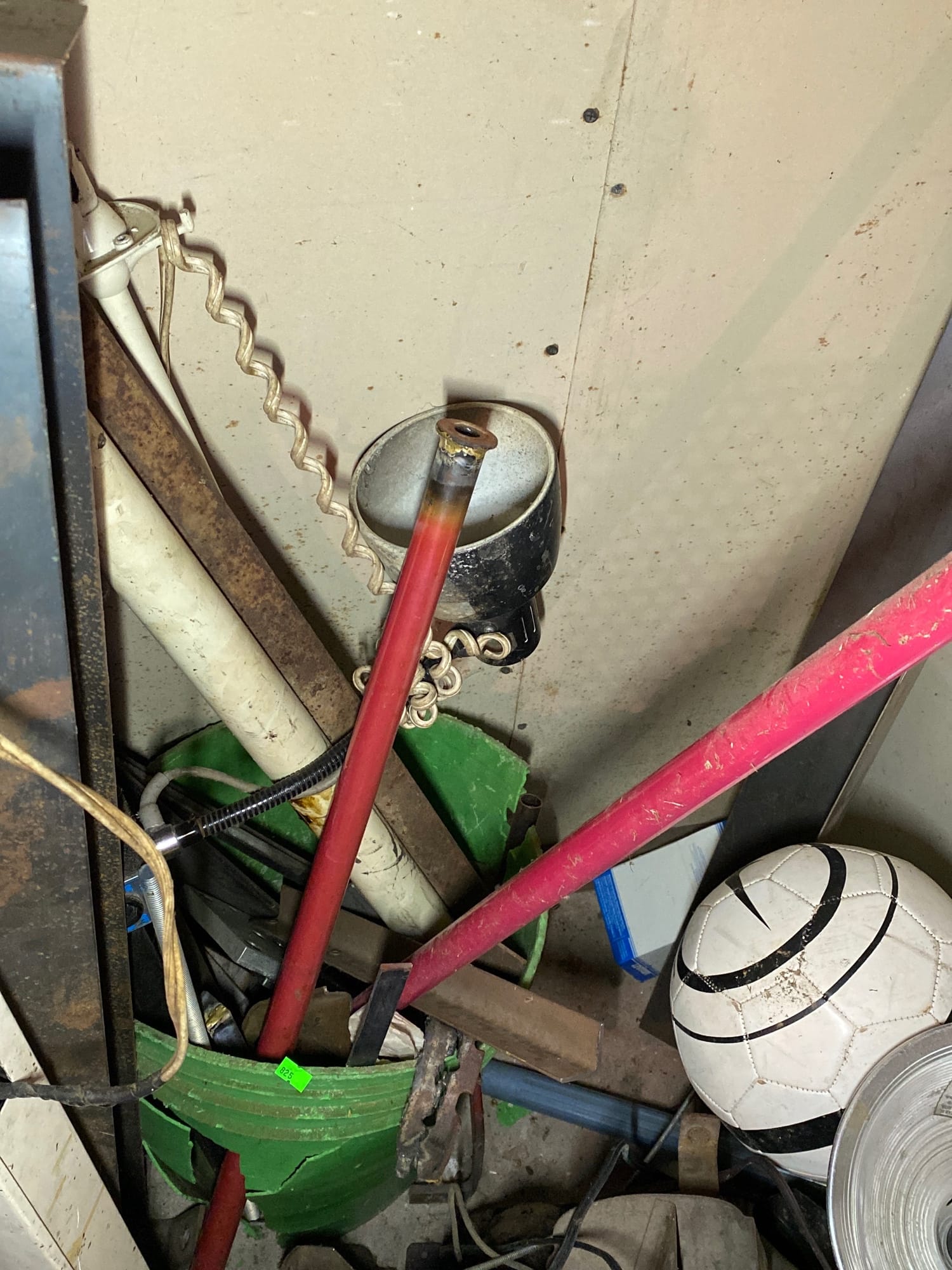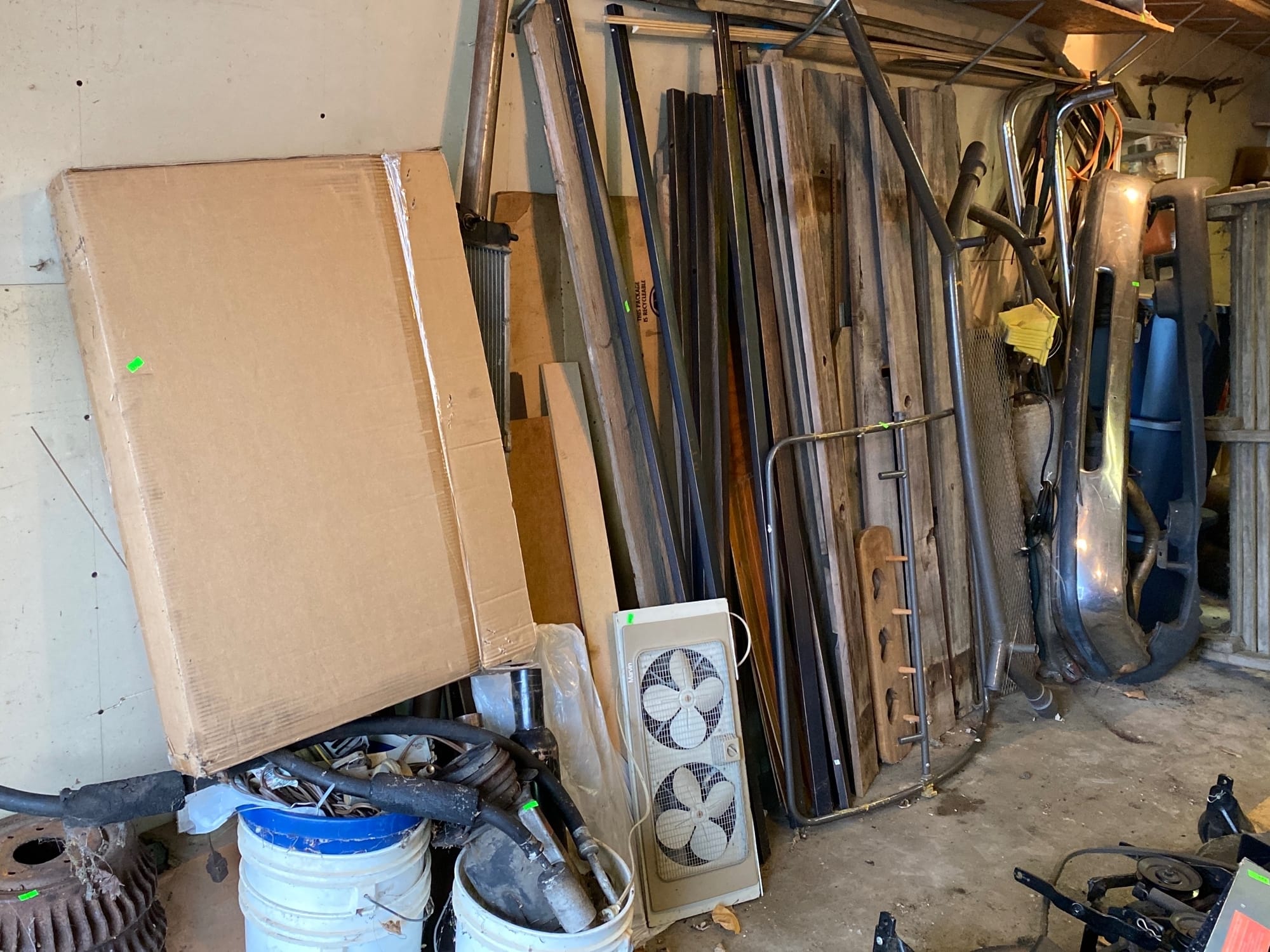 873 Car parts, wood, scrap, misc. contents of wall as shown in pictures