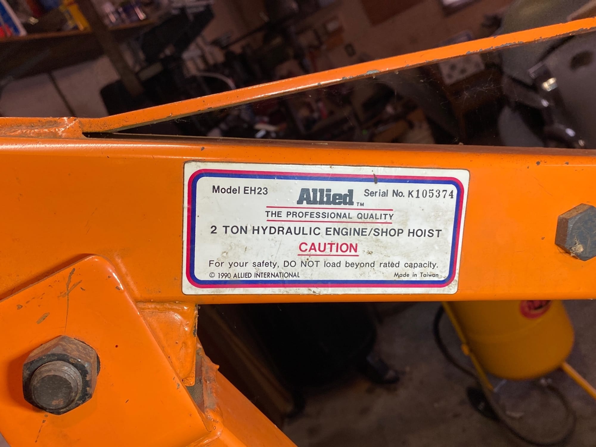 830 Allied model EH23 engine hoist with 8ton long ram, transmission not included