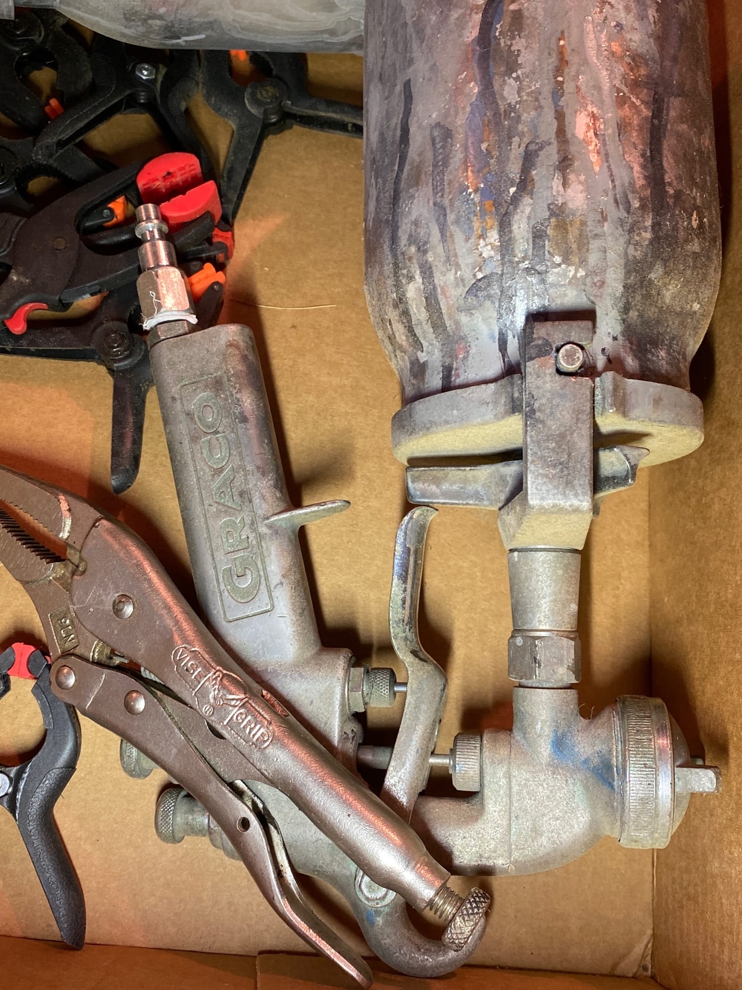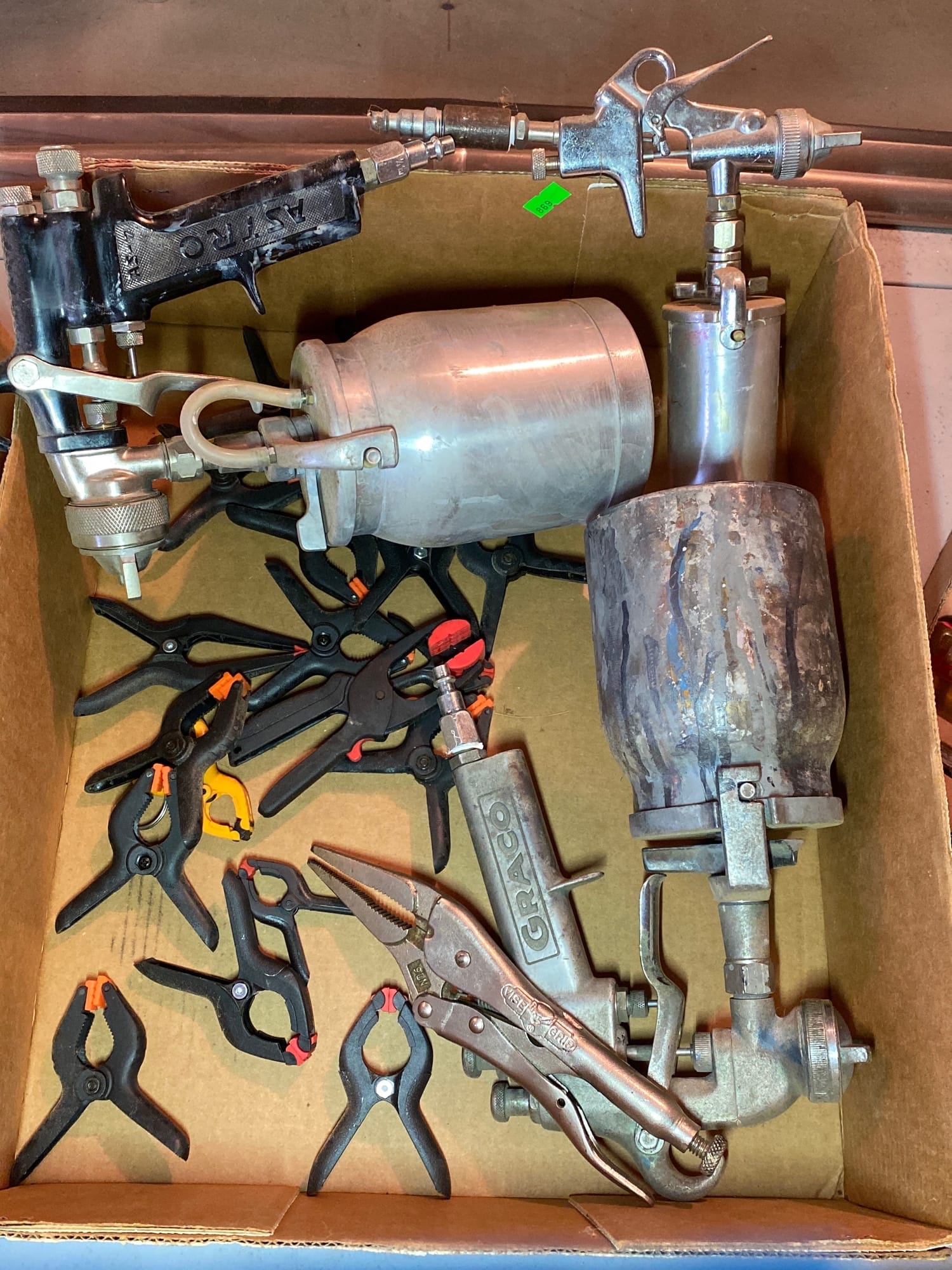 869 Air spray paint guns, plastic clamps, needle nose vise grips