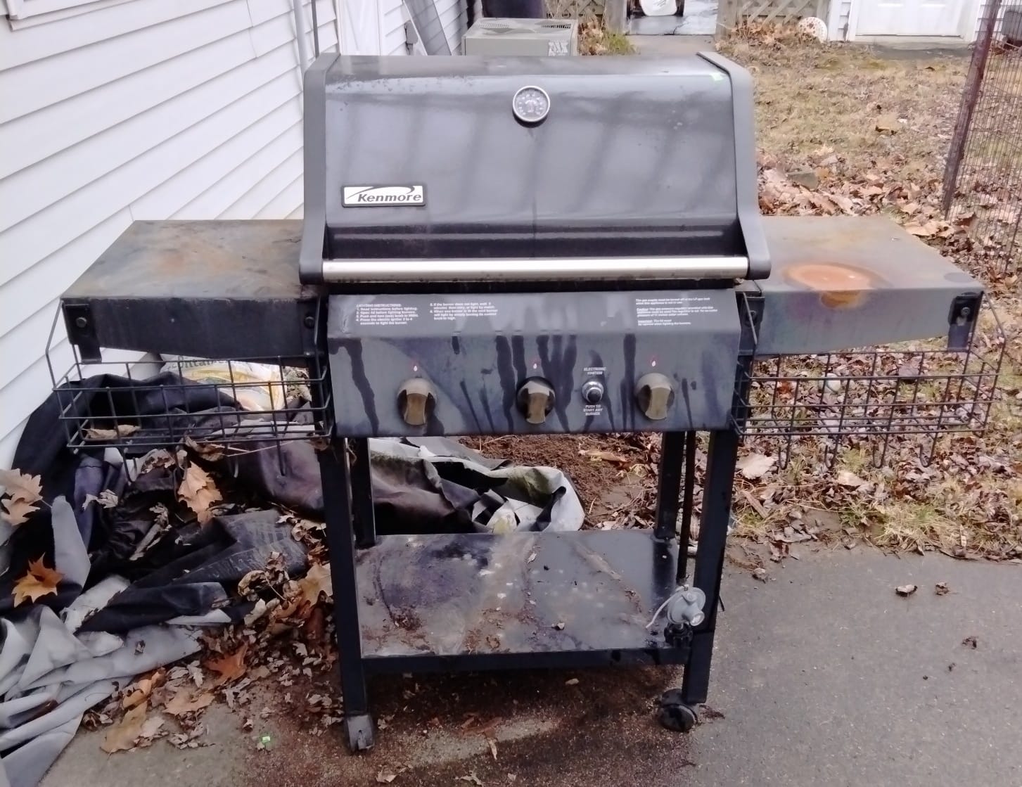 877 Kenmore gas grill no tank included 52in overall width, 22in wide cooking area