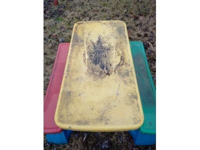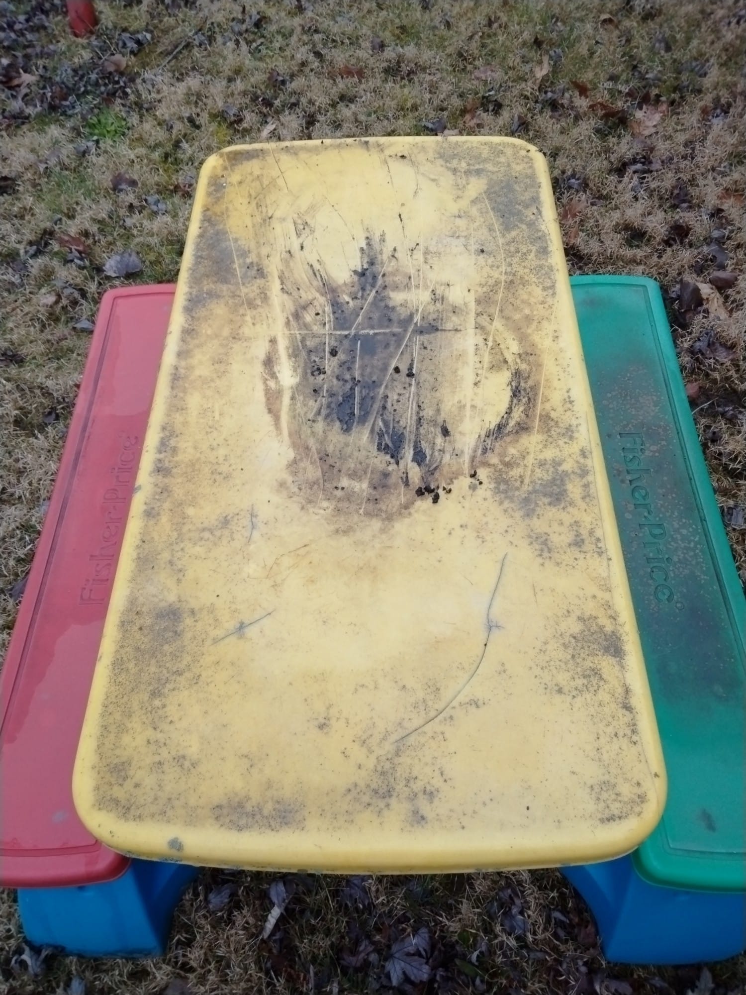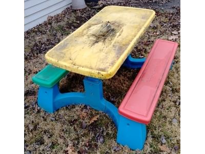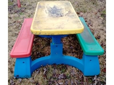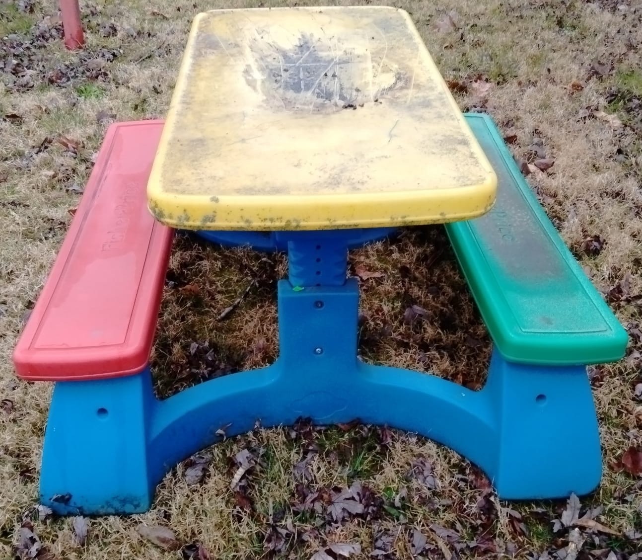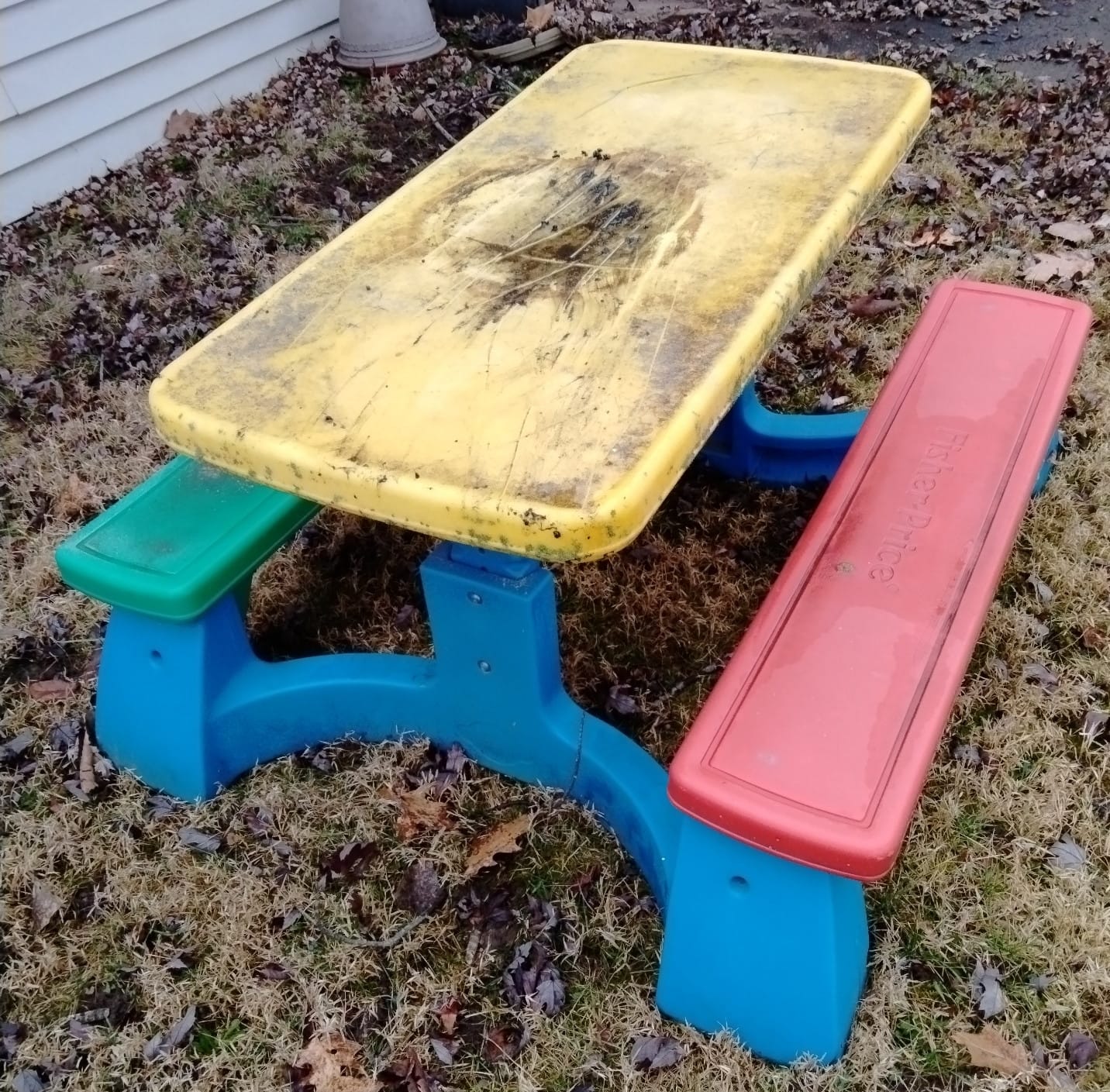 878 Fisher Price plastic picnic table 36x40x22 top has crack