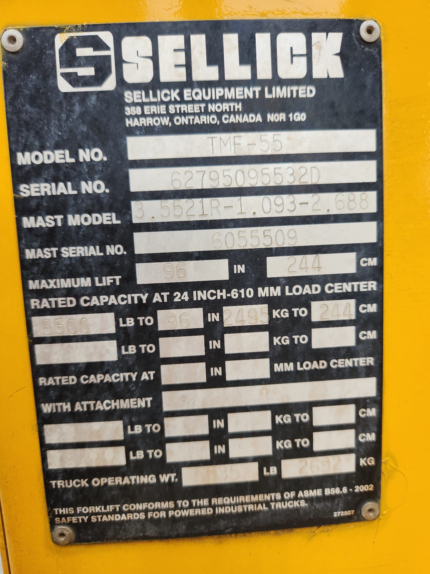 6a SELLICK TMF55 Forklift max. Lift 96" 5500lbs.