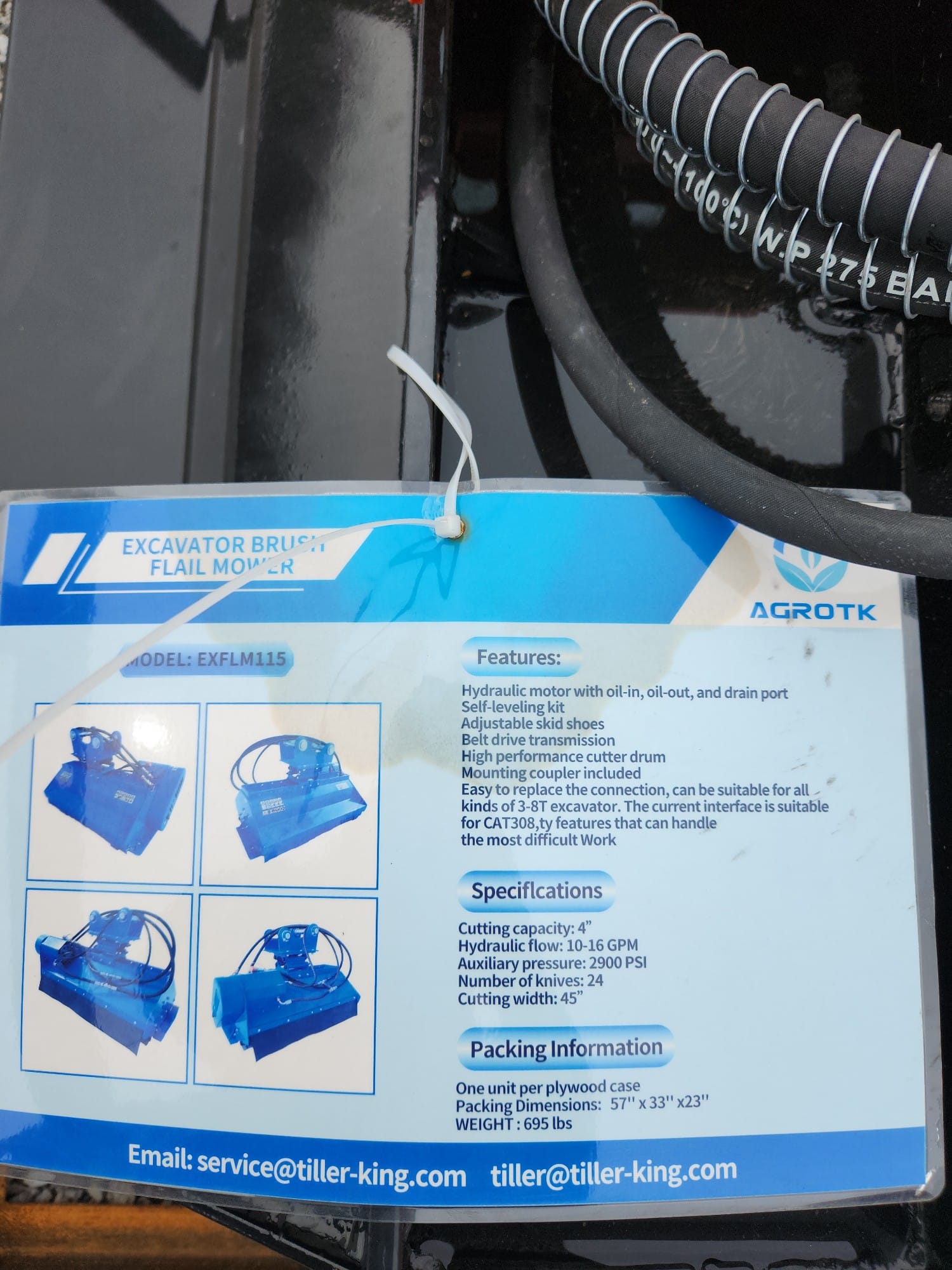 7a Sgrotk excavator brush flail mower model# EXFLM115 45" CUTTING WIDTH