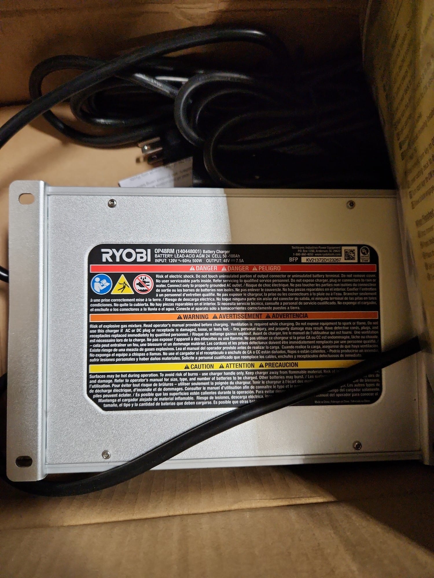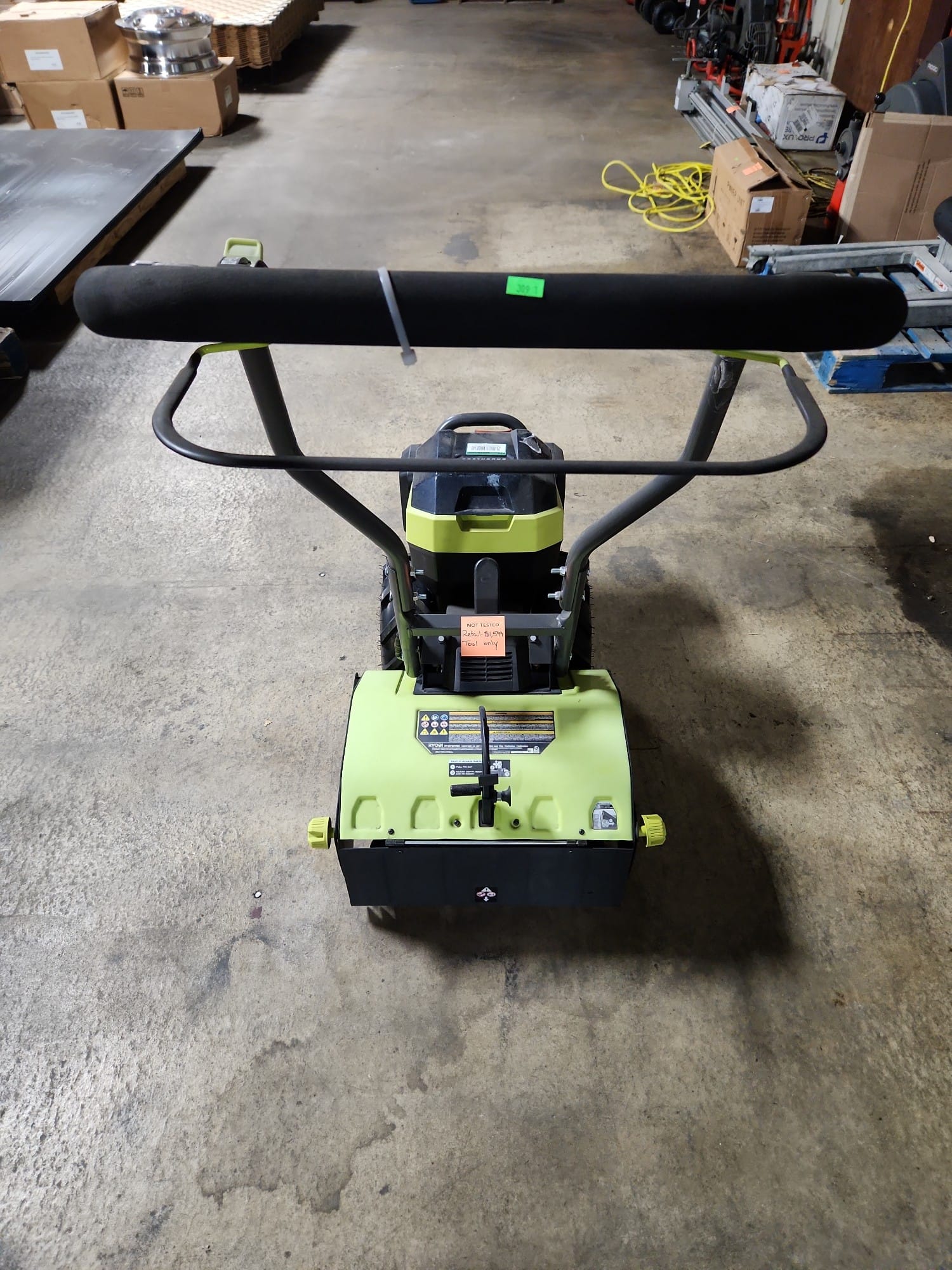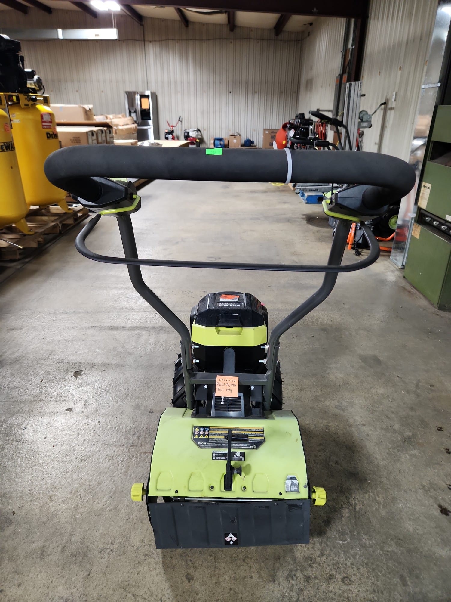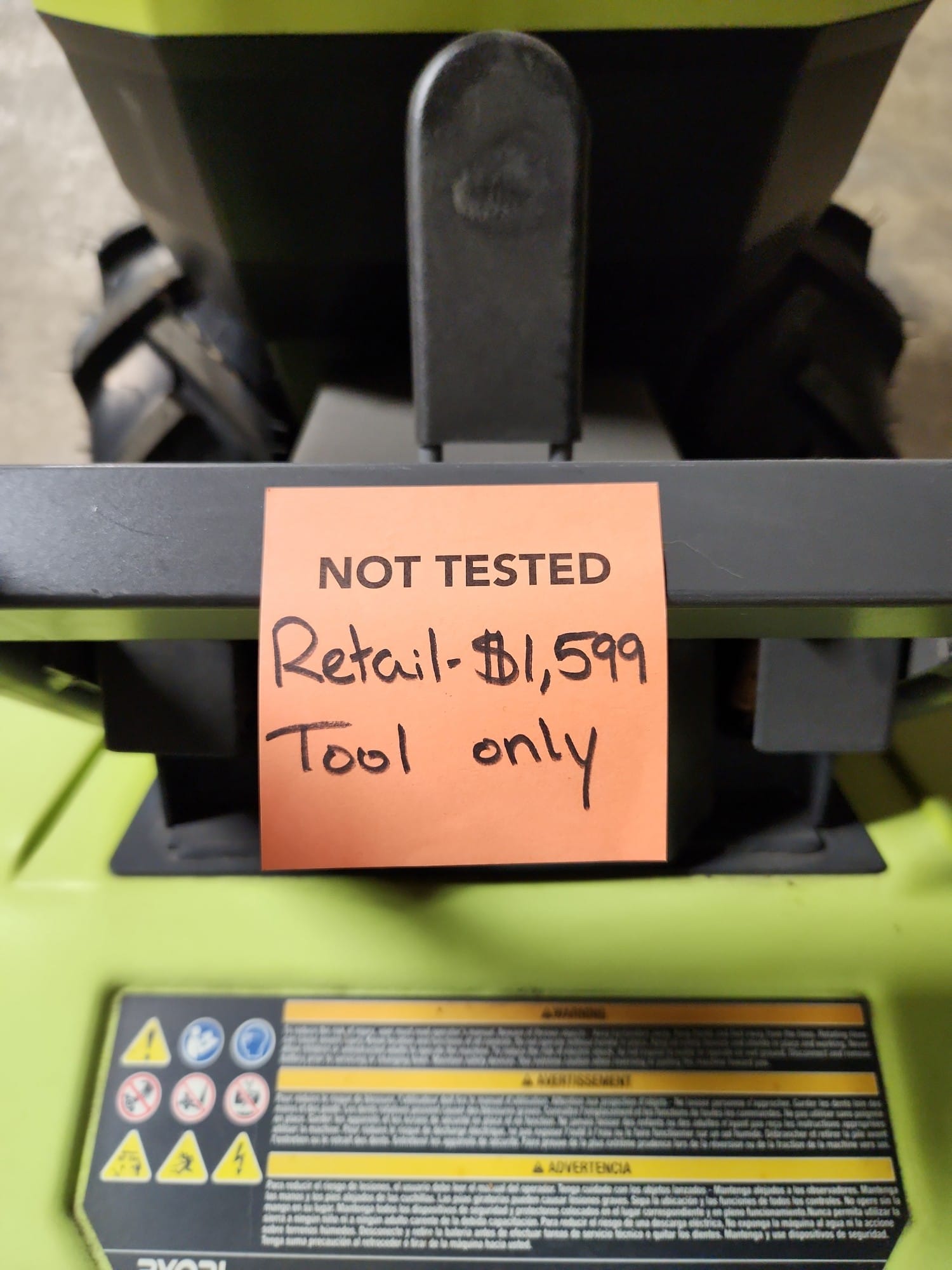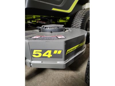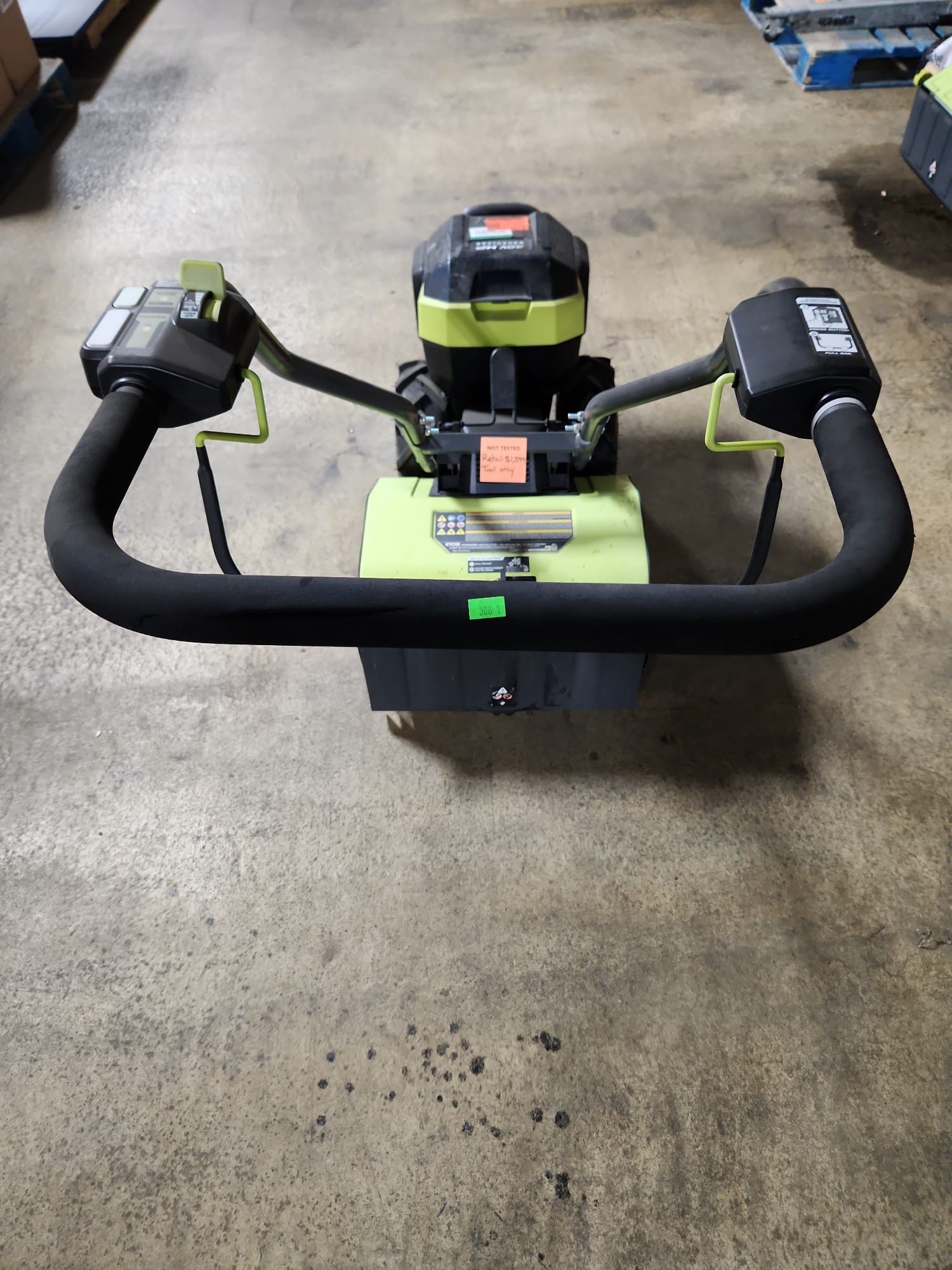 8 Ryobi ELECTRIC ZERO TURN MOWER 48V HP ZT540E HAS KEY AND CHARGER HAS CRACK IN PLASTIC