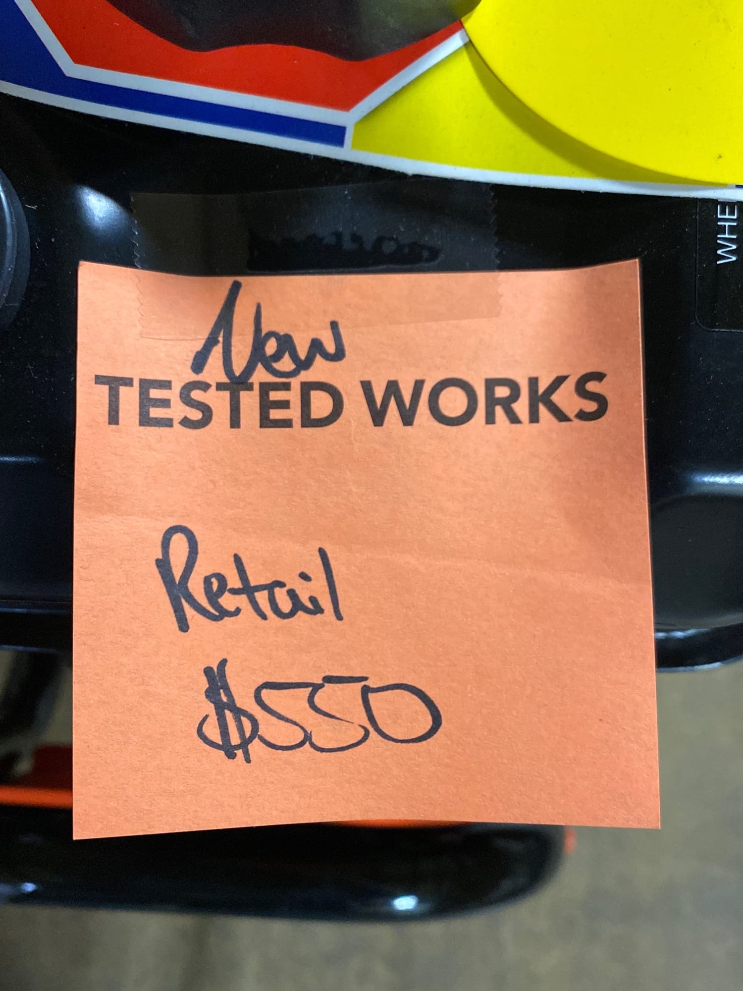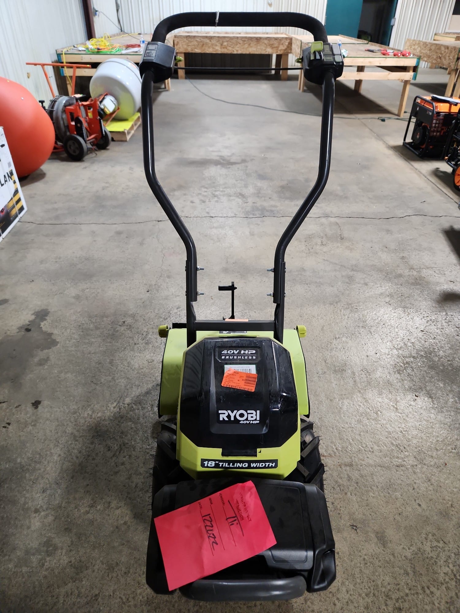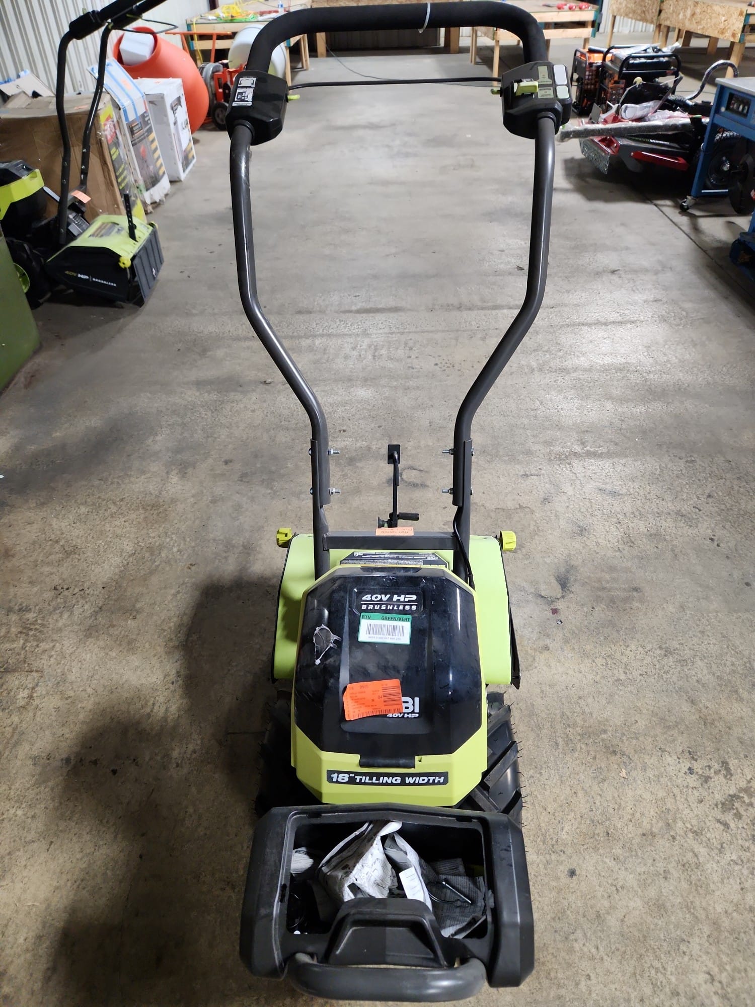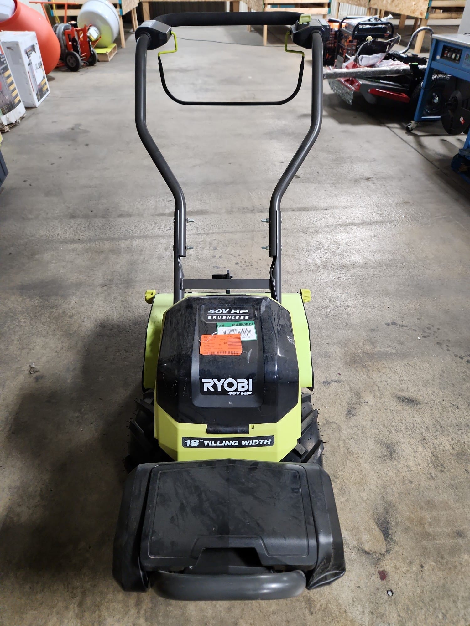 8 Ryobi ELECTRIC ZERO TURN MOWER 48V HP ZT540E HAS KEY AND CHARGER HAS CRACK IN PLASTIC