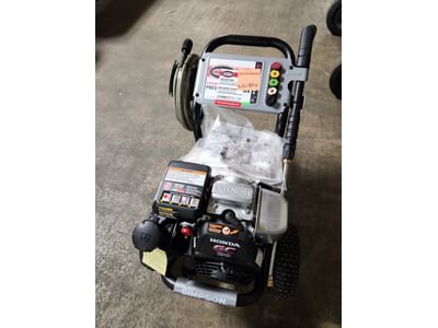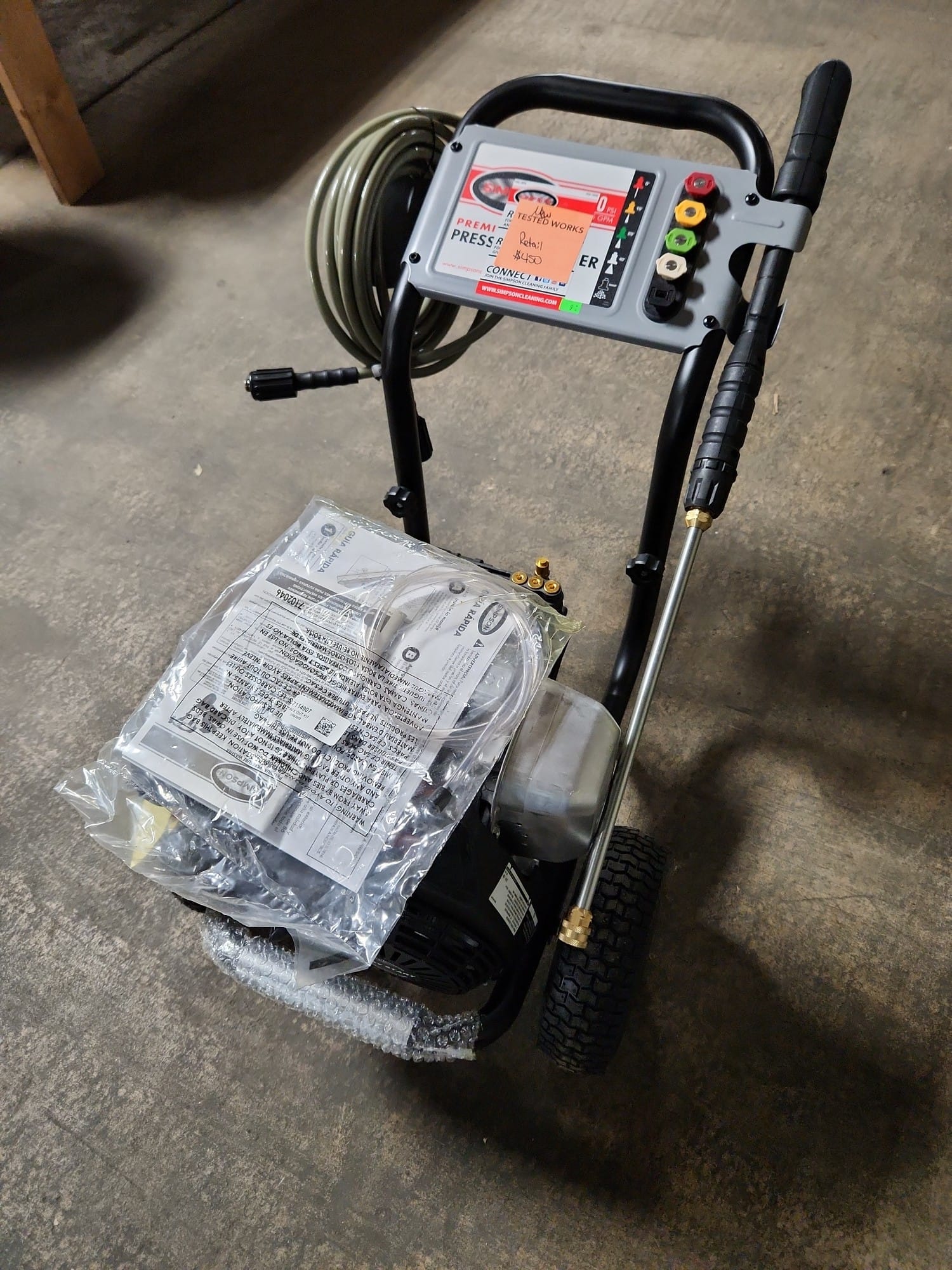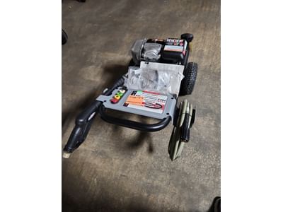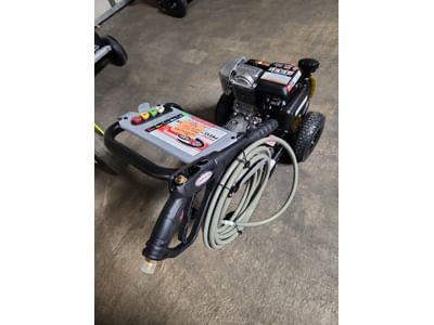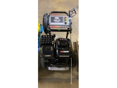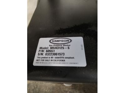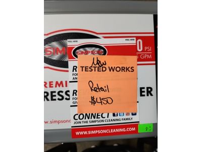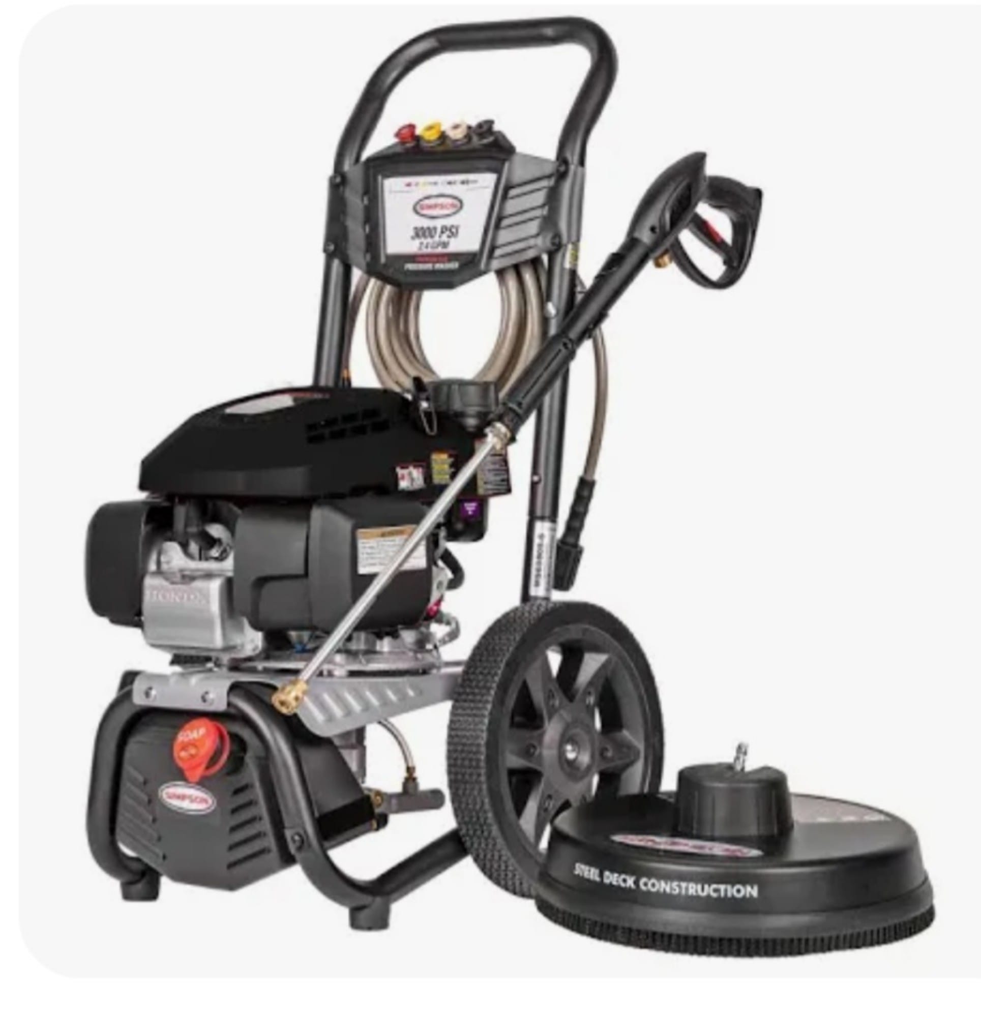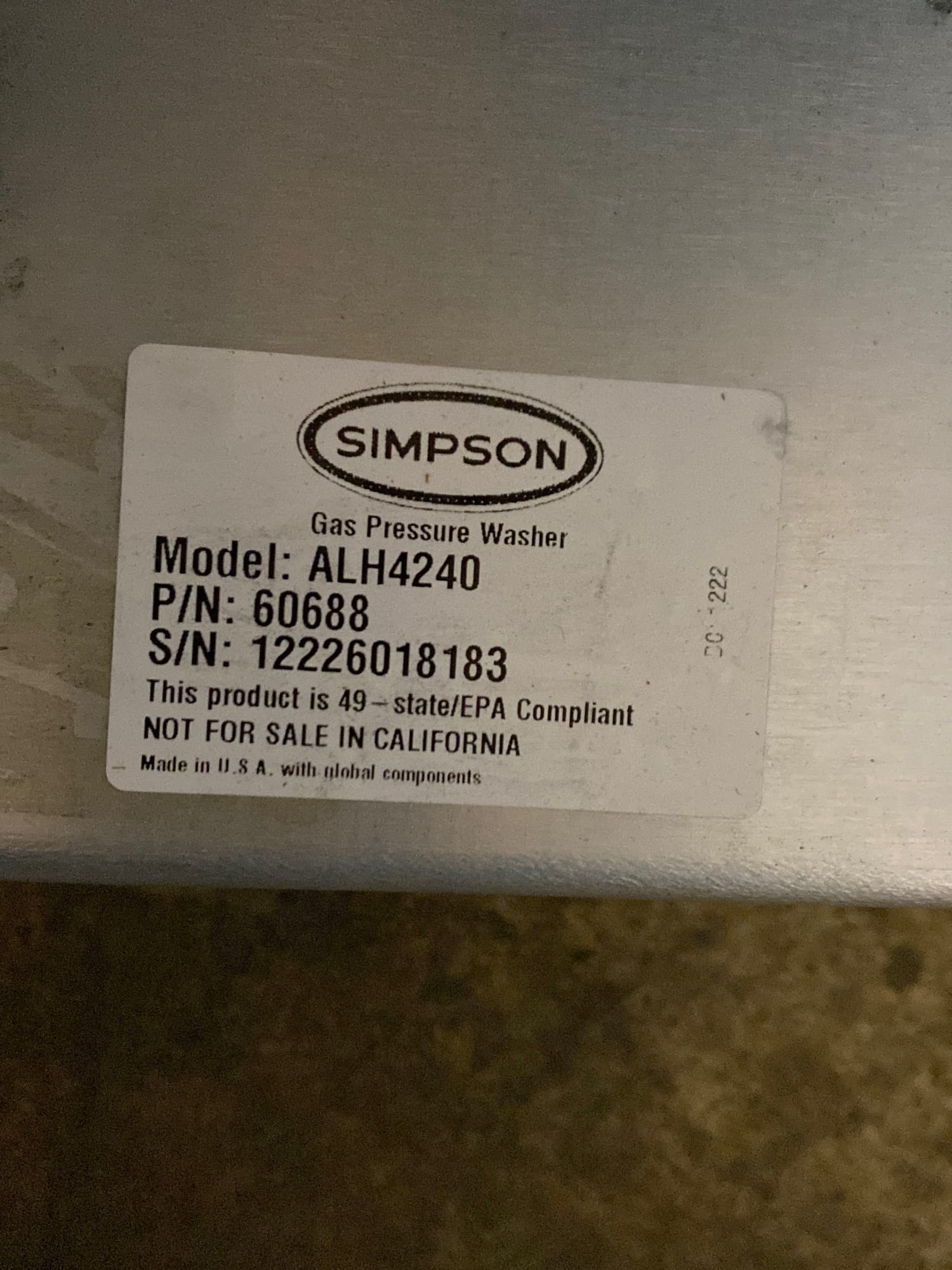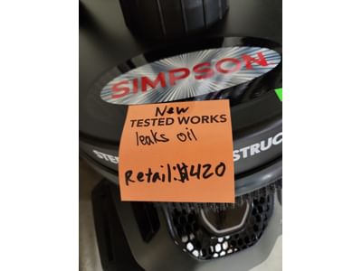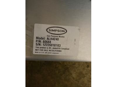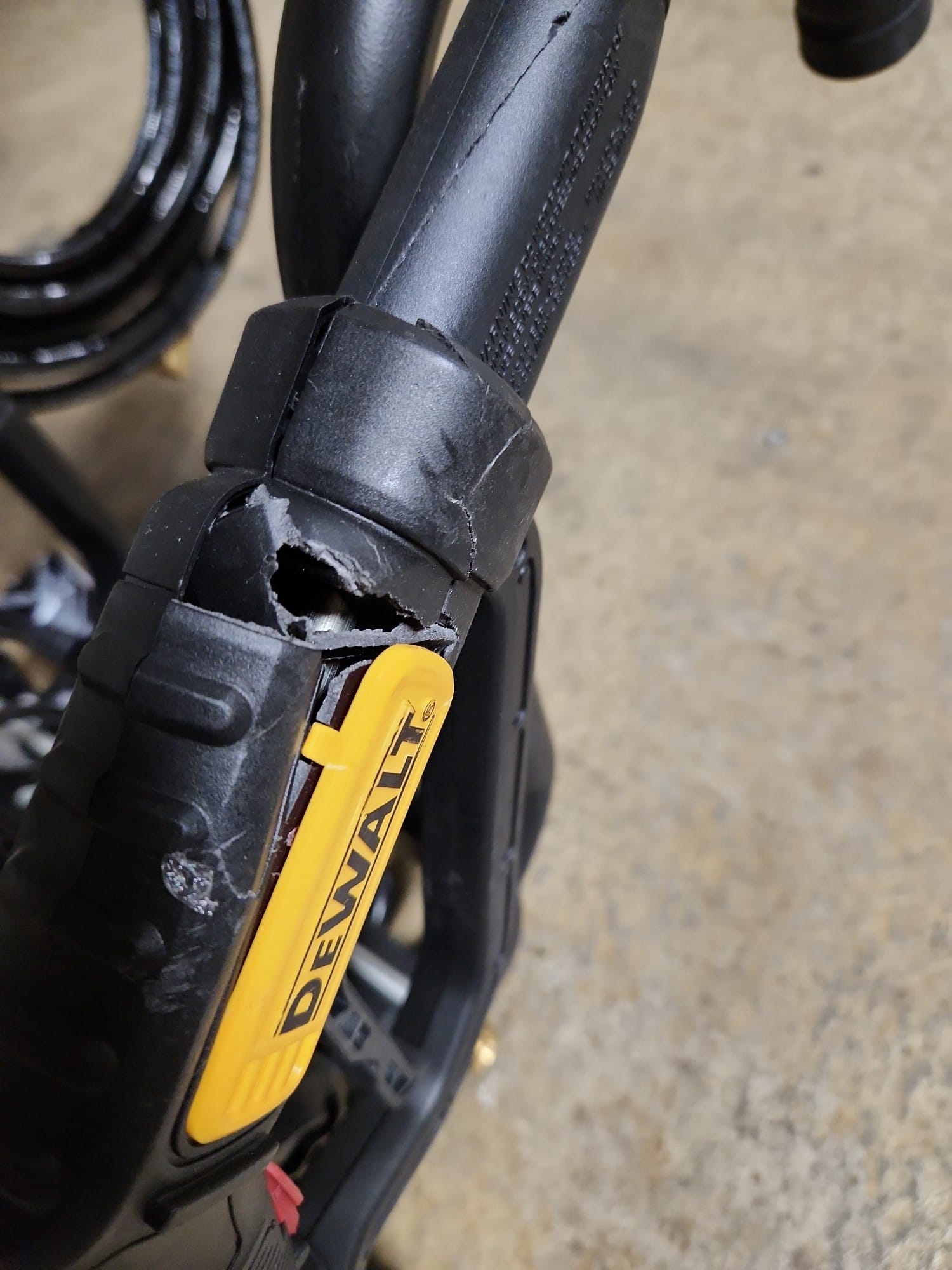10 "Simpson Gas Pressure Washer, 2.5 GPM, Honda GC190 Engine, Includes Spray Gun and Extension Wand, 5 QC Nozzle Tips, 1/4-in. x 25-ft. MorFlex Hose, (49-State), Black Missing hardware and has crack in wand"