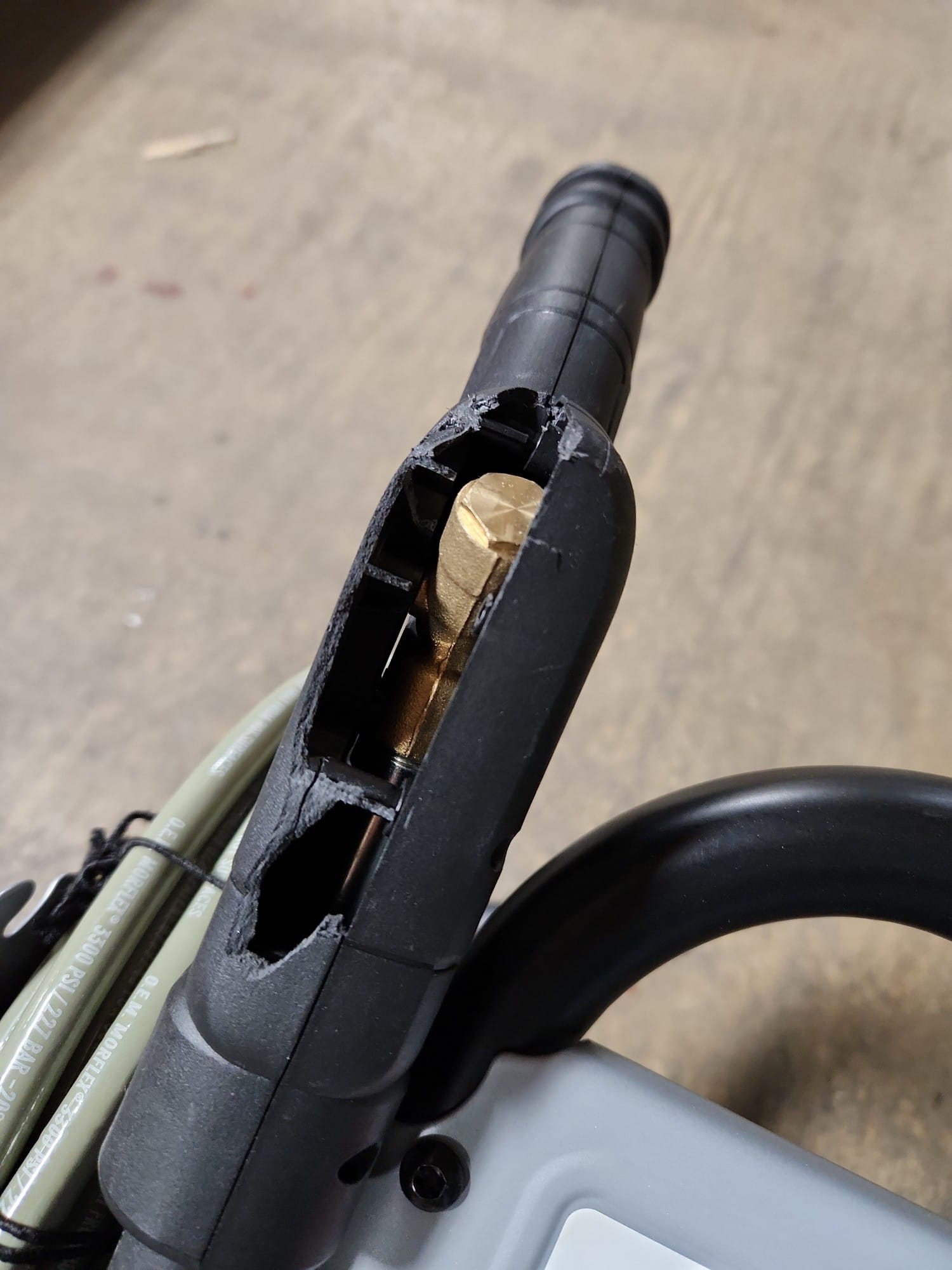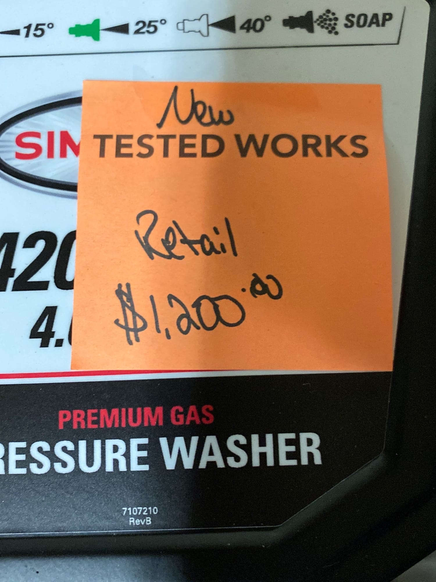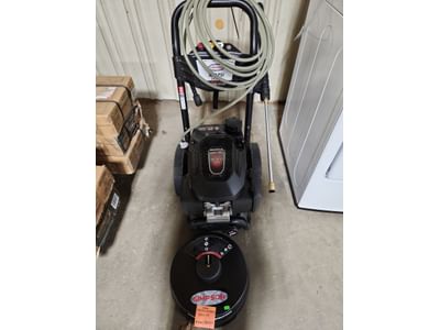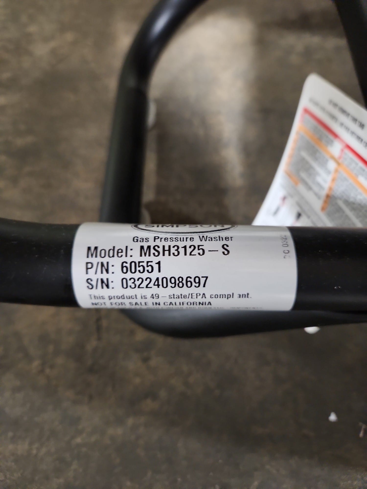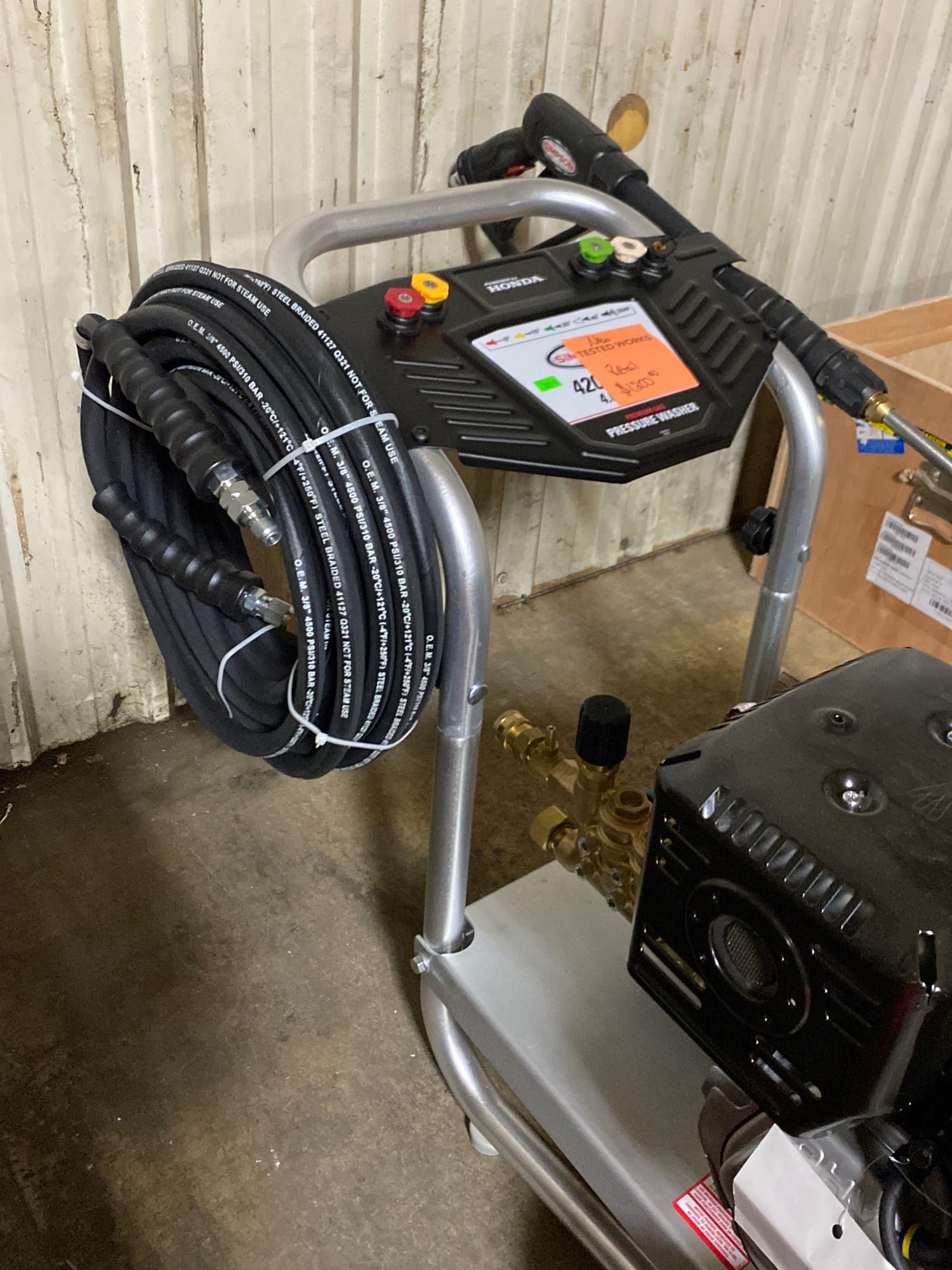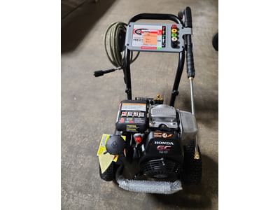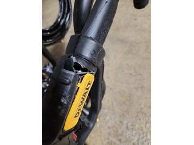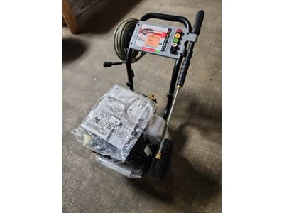 10 "Simpson Gas Pressure Washer, 2.5 GPM, Honda GC190 Engine, Includes Spray Gun and Extension Wand, 5 QC Nozzle Tips, 1/4-in. x 25-ft. MorFlex Hose, (49-State), Black Missing hardware and has crack in wand"