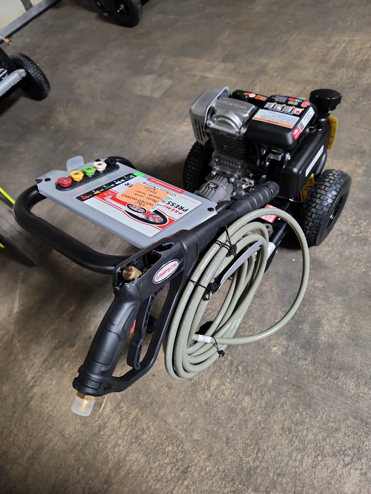 11 Simpson Gas Pressure Washer, 2.5 GPM, Honda GC190 Engine, Includes Spray Gun and Extension Wand, 5 QC Nozzle Tips, 1/4-in. x 25-ft. MorFlex Hose, (49-State), Black