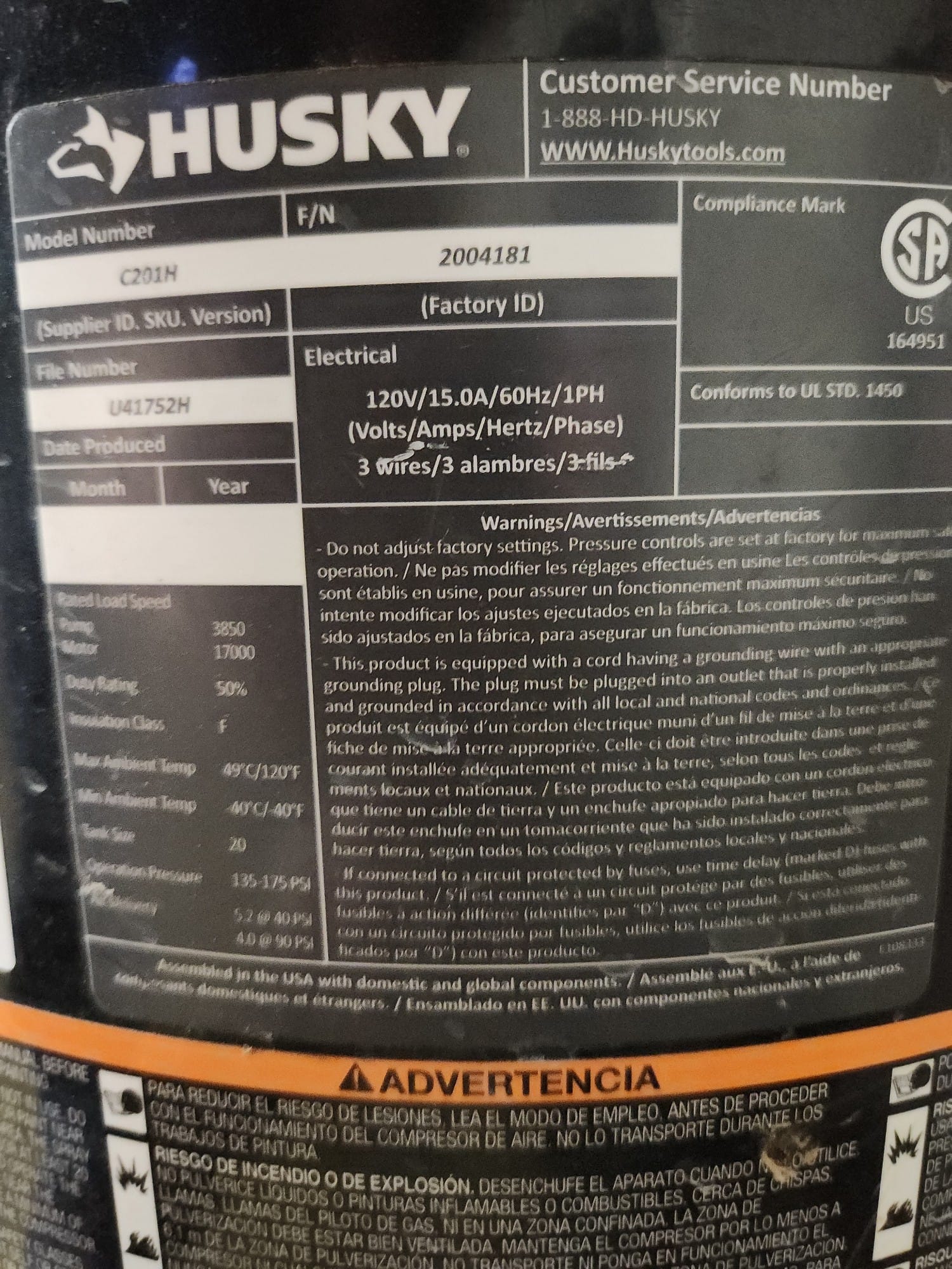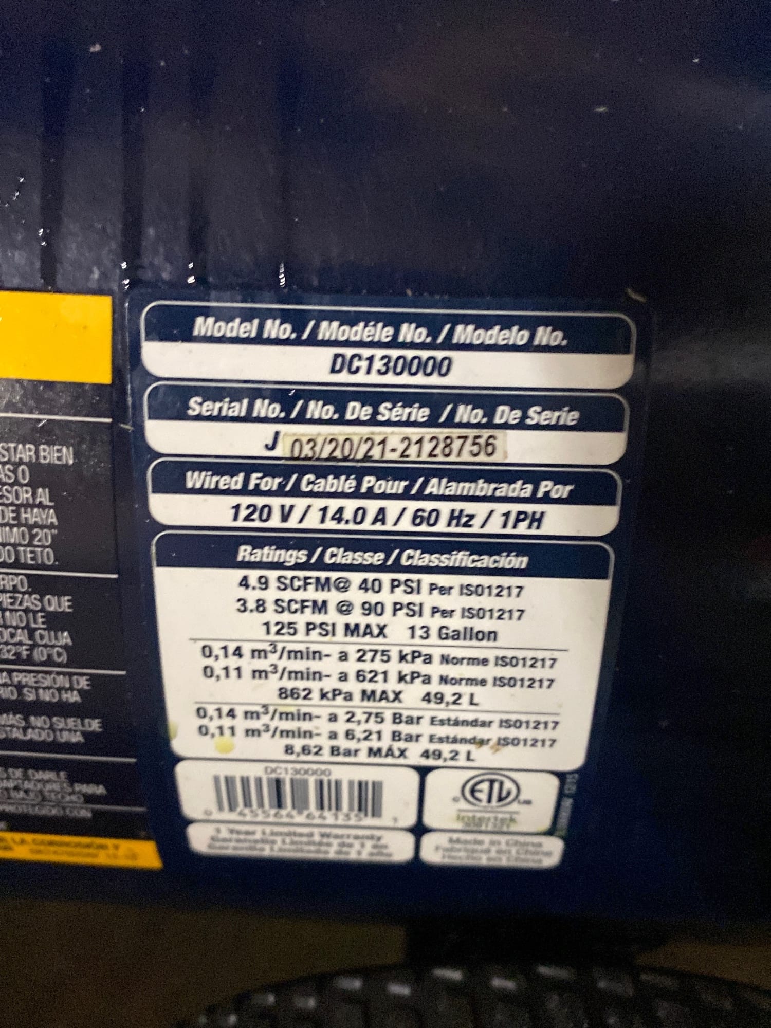 12 Campbell Hausfeld 13-Gallon 1.3 HP Horizontal Oil-Lube Air Compressor DC130000