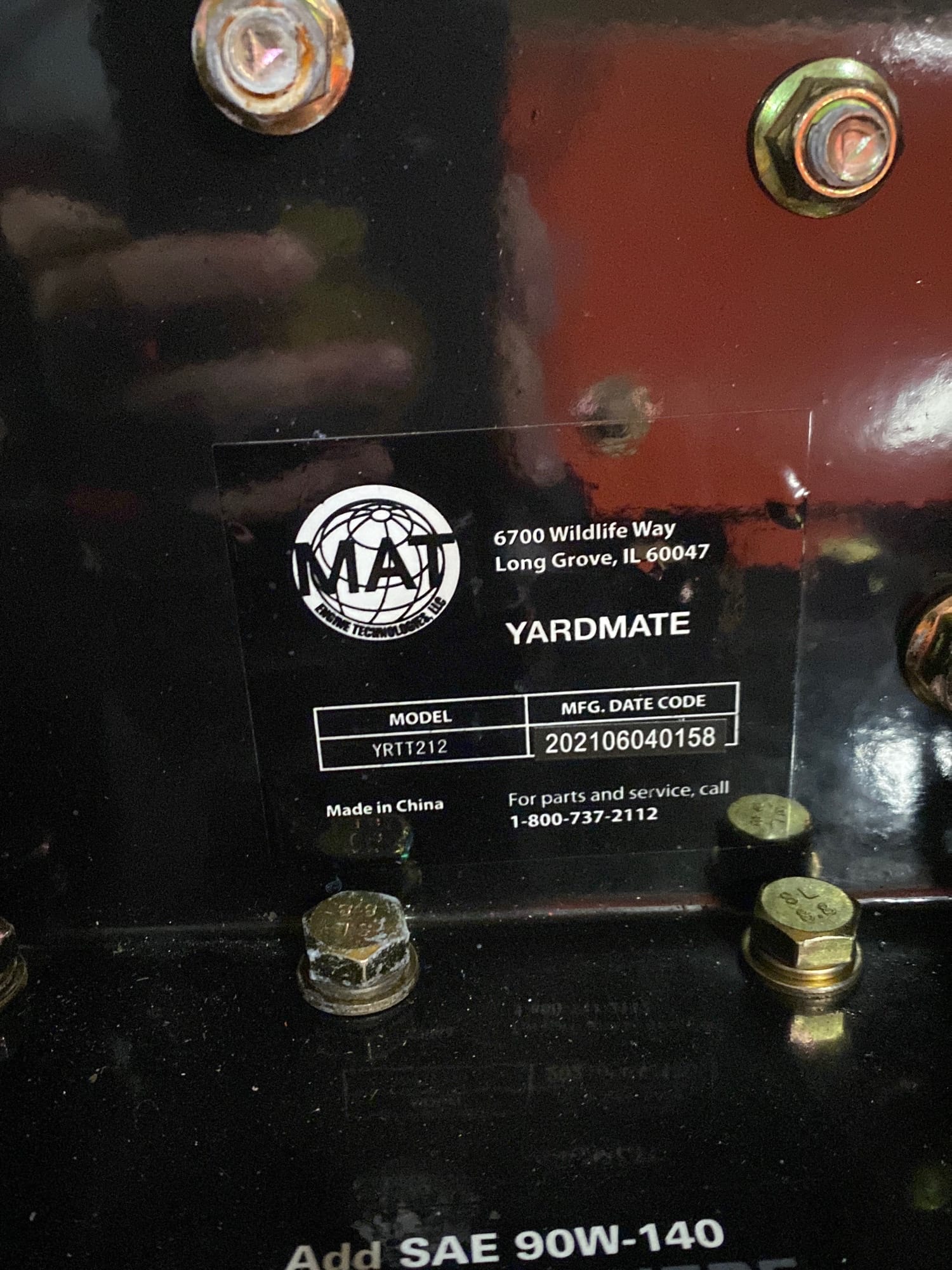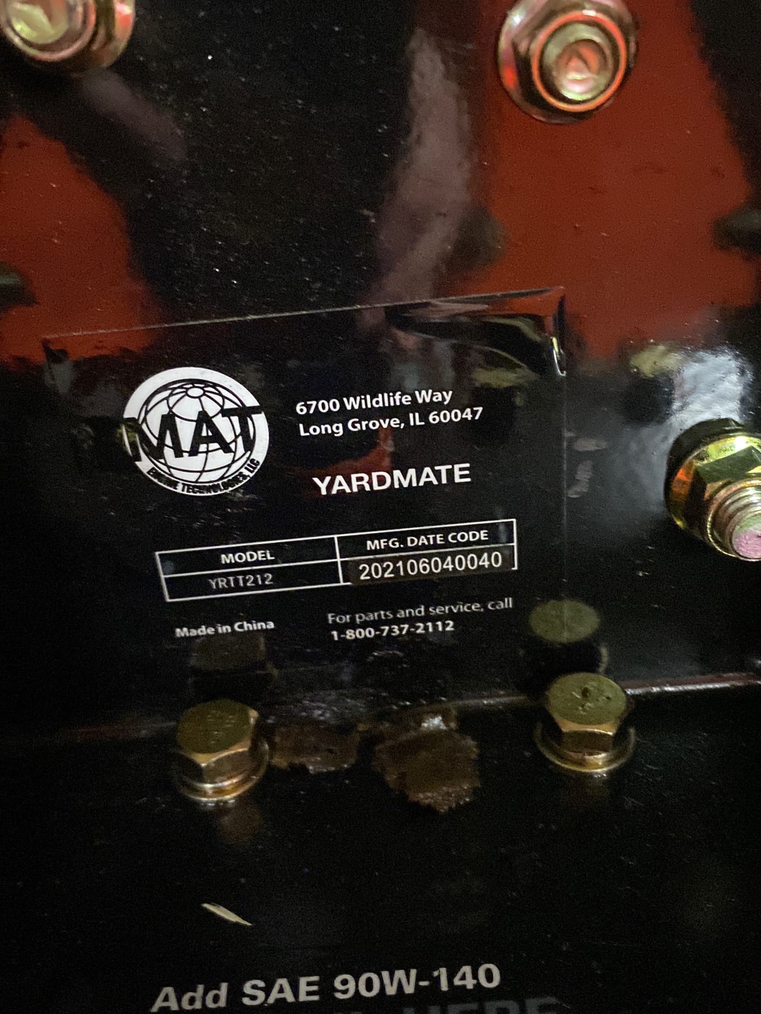 16 YardMate 18 in. 212 cc Gas Rear Tine Tiller, Model:YRTT212