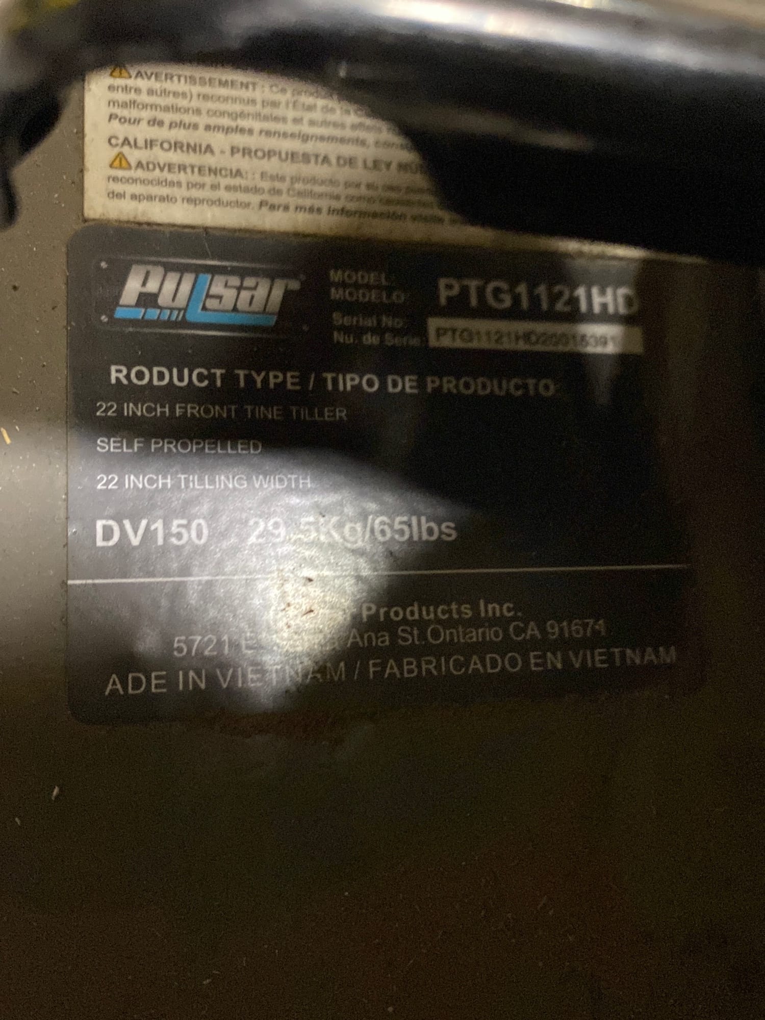 17 Pulsar 21” 150cc Gas Front Tine Self-Propelled Tiller, Model:PTG1121HD, Pull String Broken