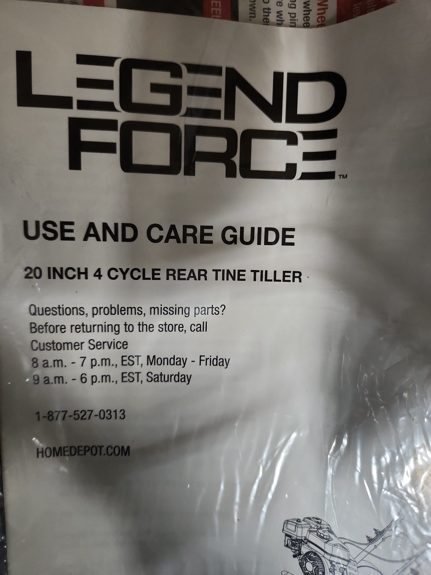 18 "Legend Force 20 in. 212 cc Gas Rear Tine Tiller, Forward/Reverse"