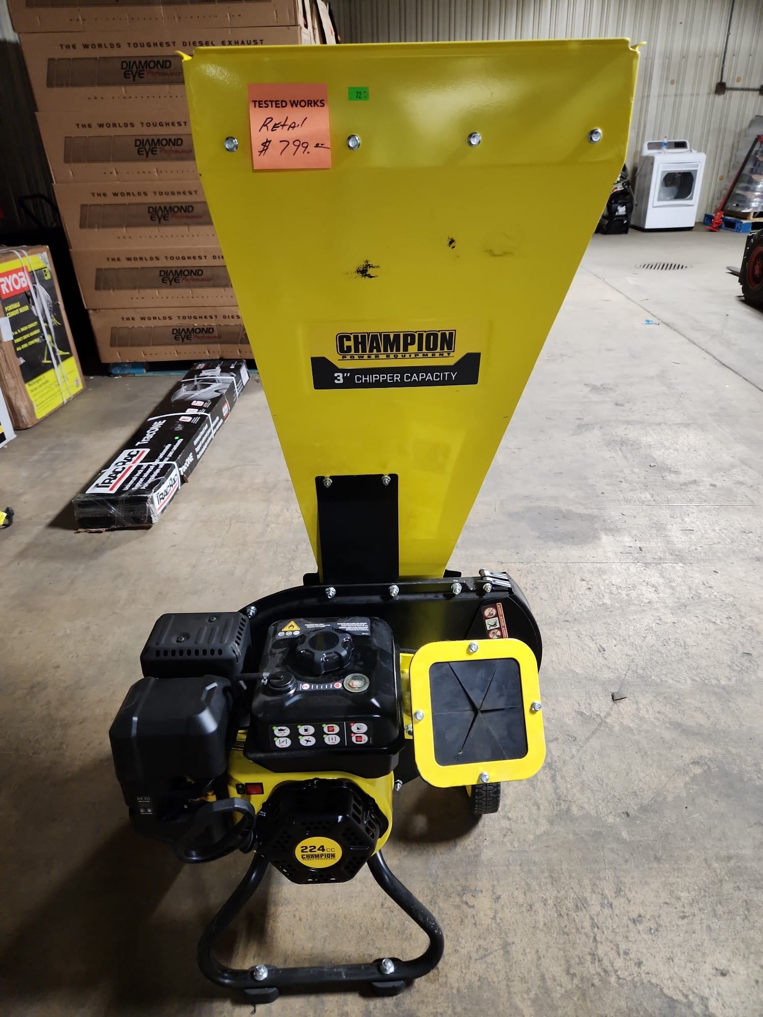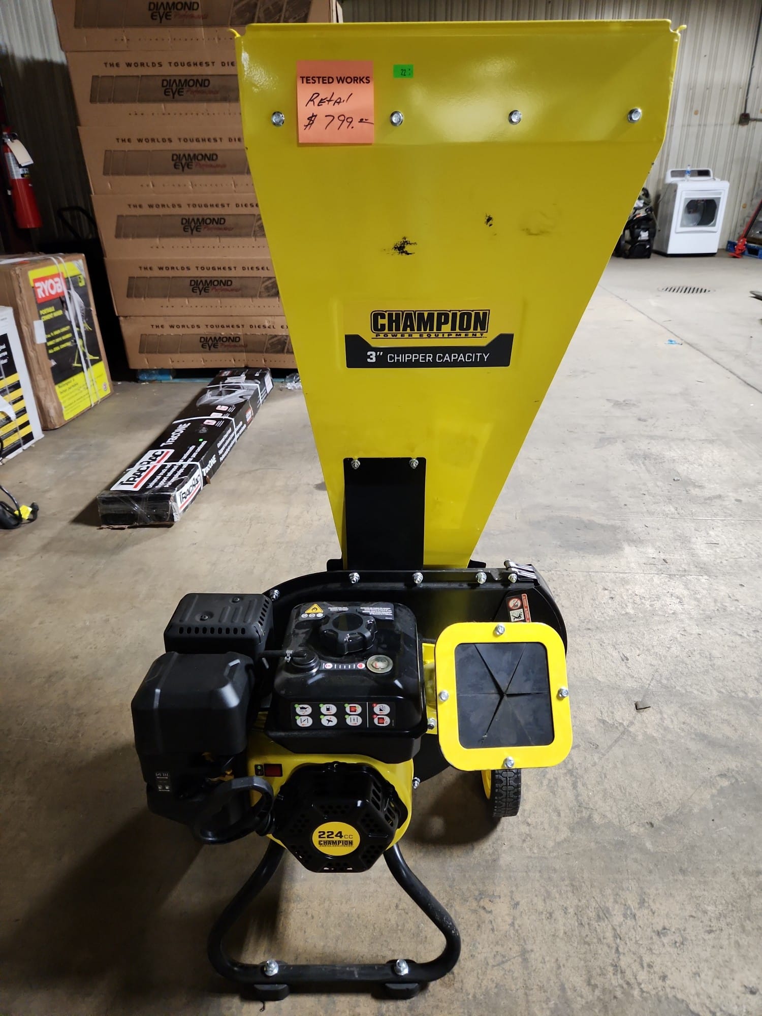 23 "Champion Power Equipment 3 in. Dia 224 cc 2-in-1 Upright Gas Powered Wood Chipper Shredder"