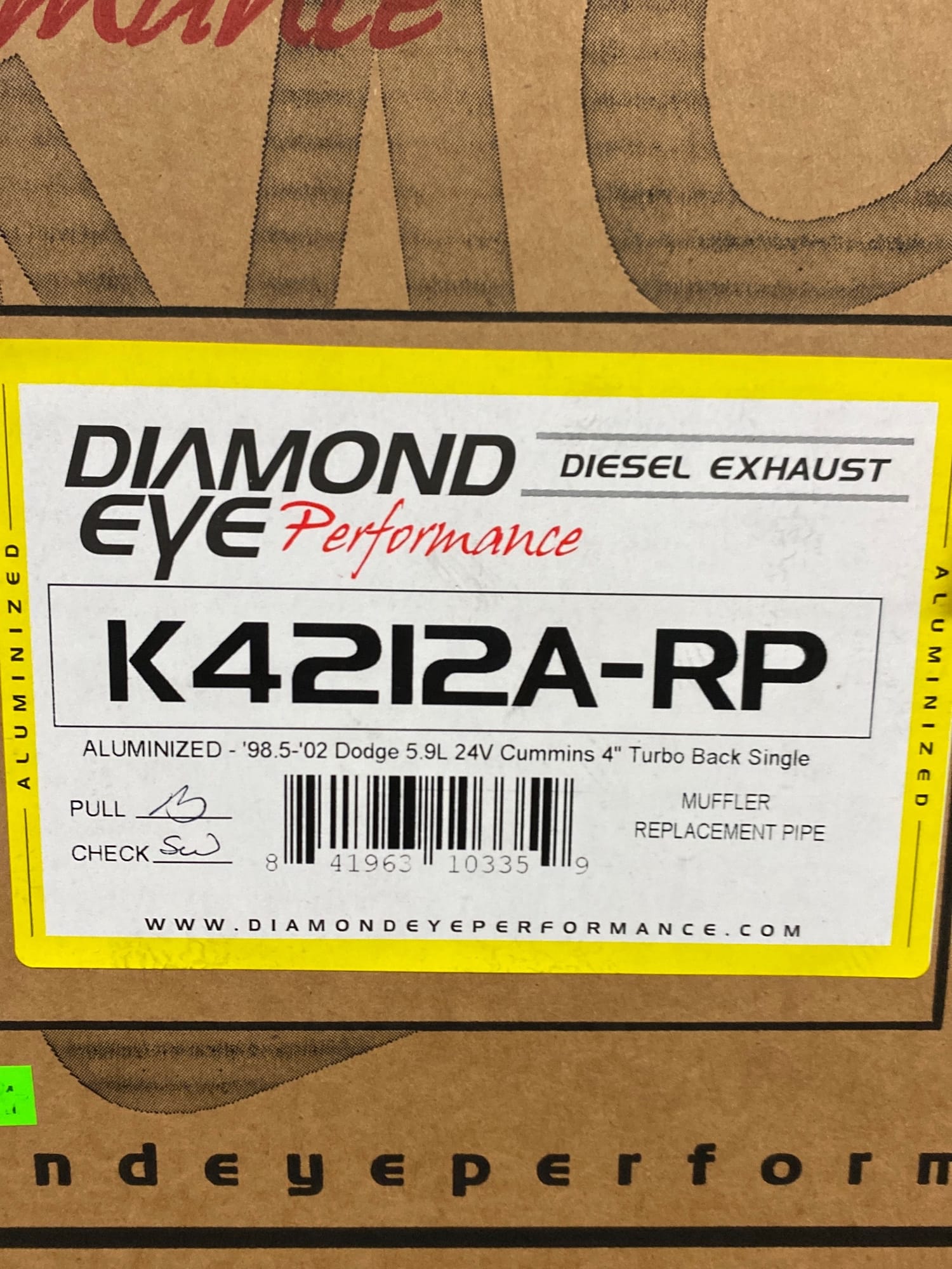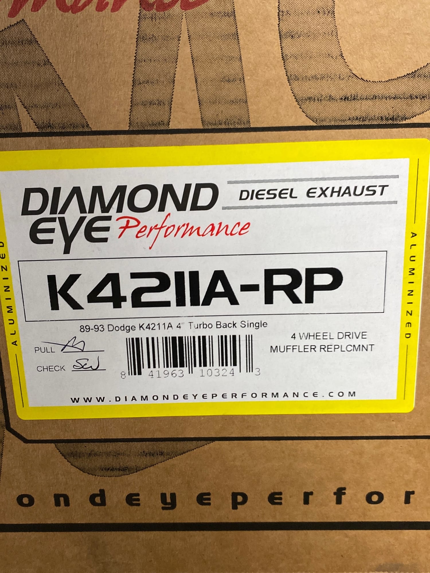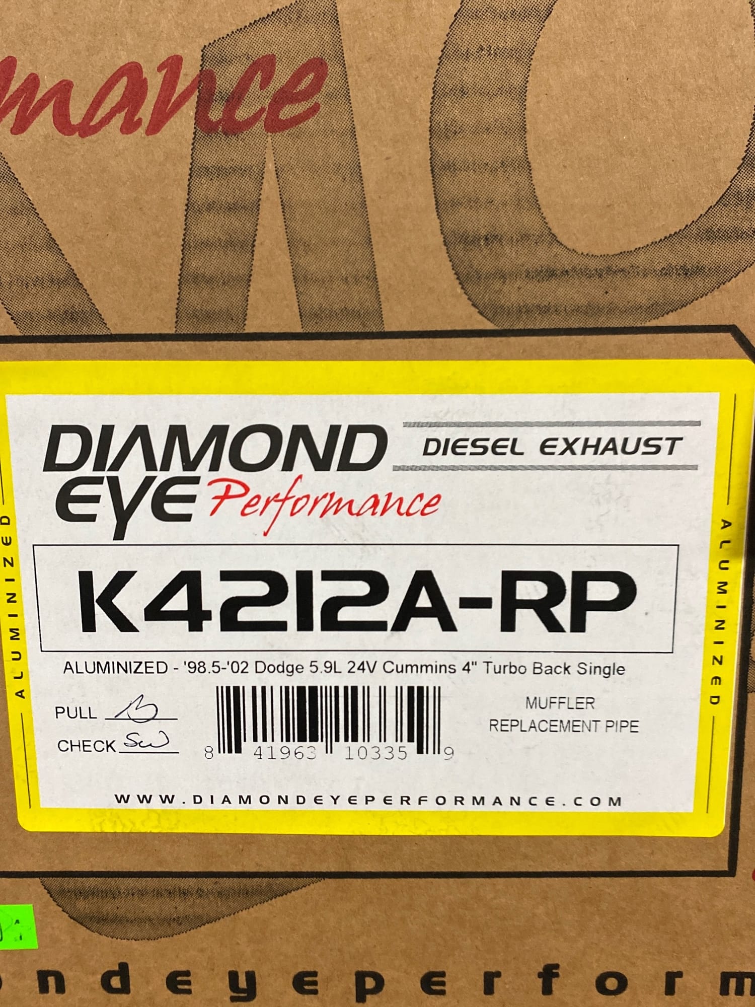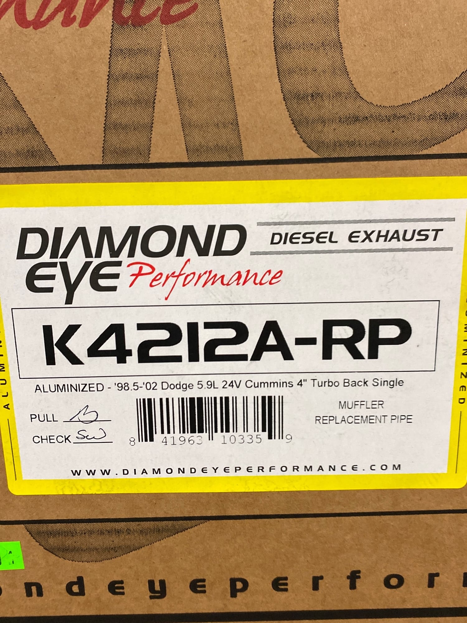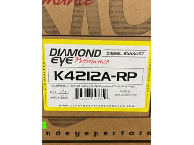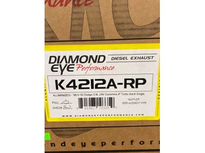 43 Diamond Eye KIT 4in TB MFLR RPLCMENT PIPE SGL AL: 89-93 DODGE CUMMINS 5.9L, K4211A-RP