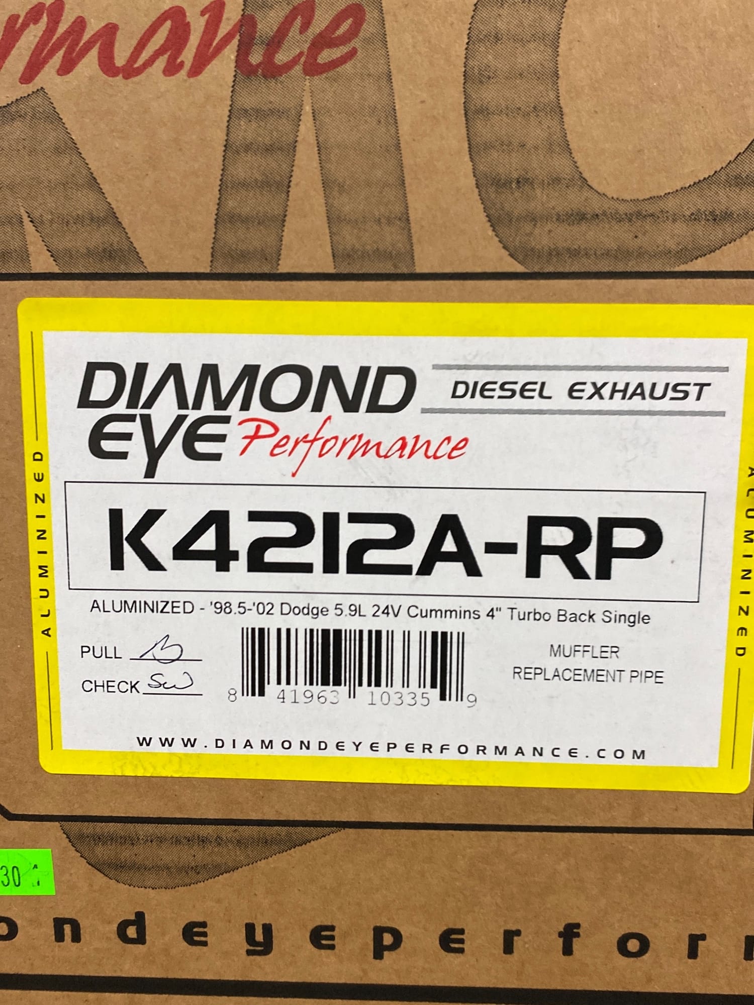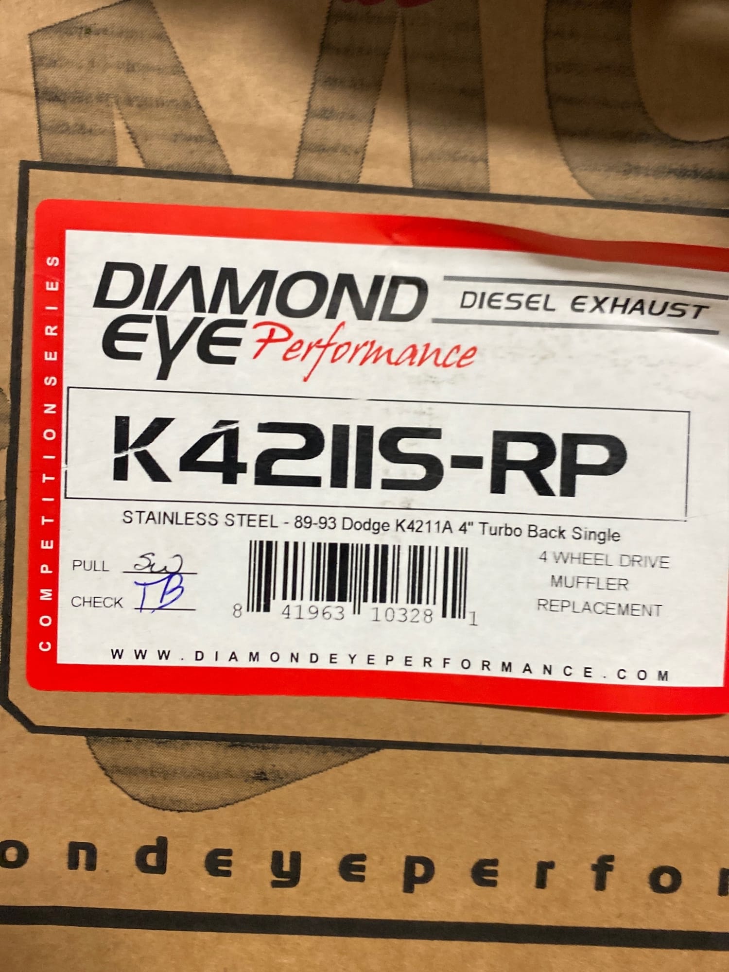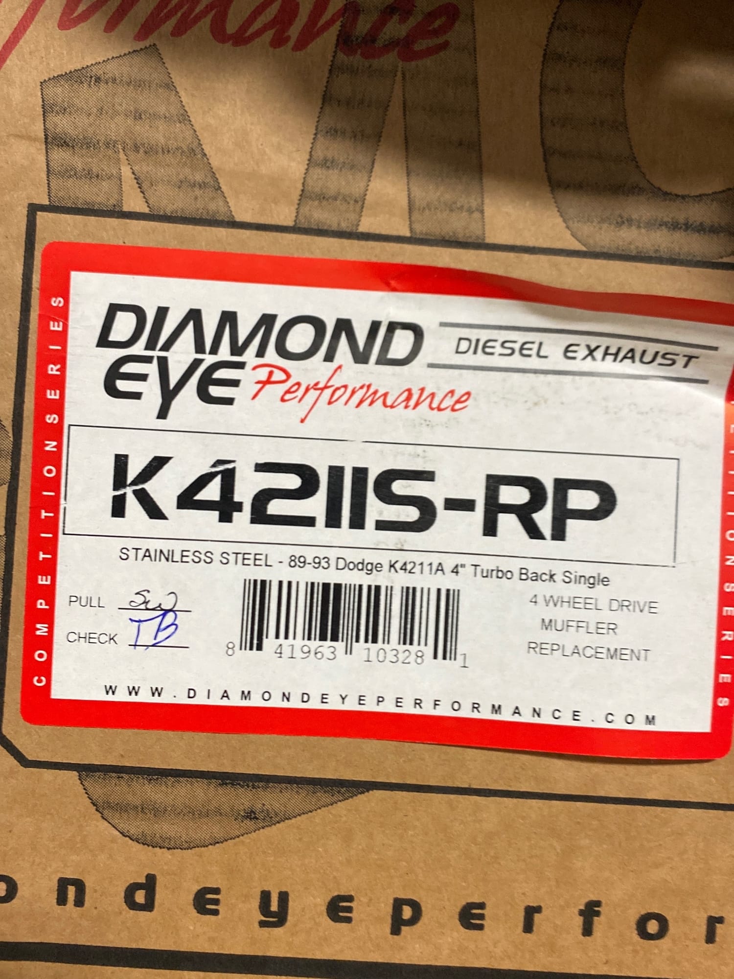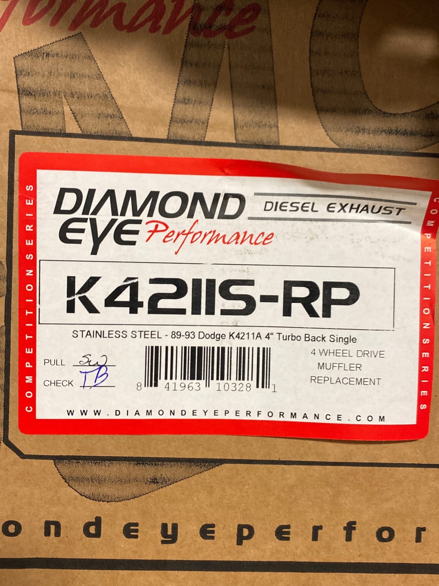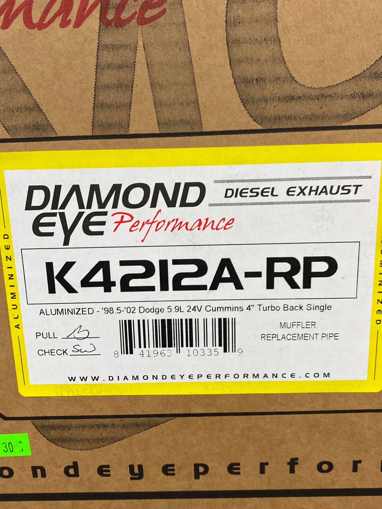 43 Diamond Eye KIT 4in TB MFLR RPLCMENT PIPE SGL AL: 89-93 DODGE CUMMINS 5.9L, K4211A-RP
