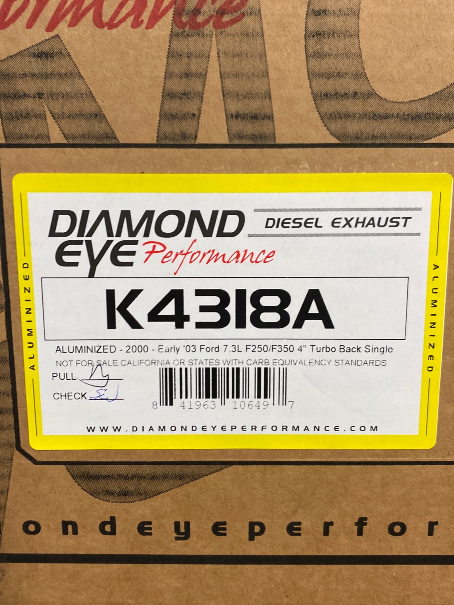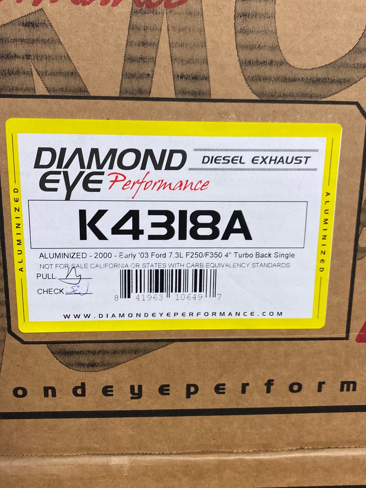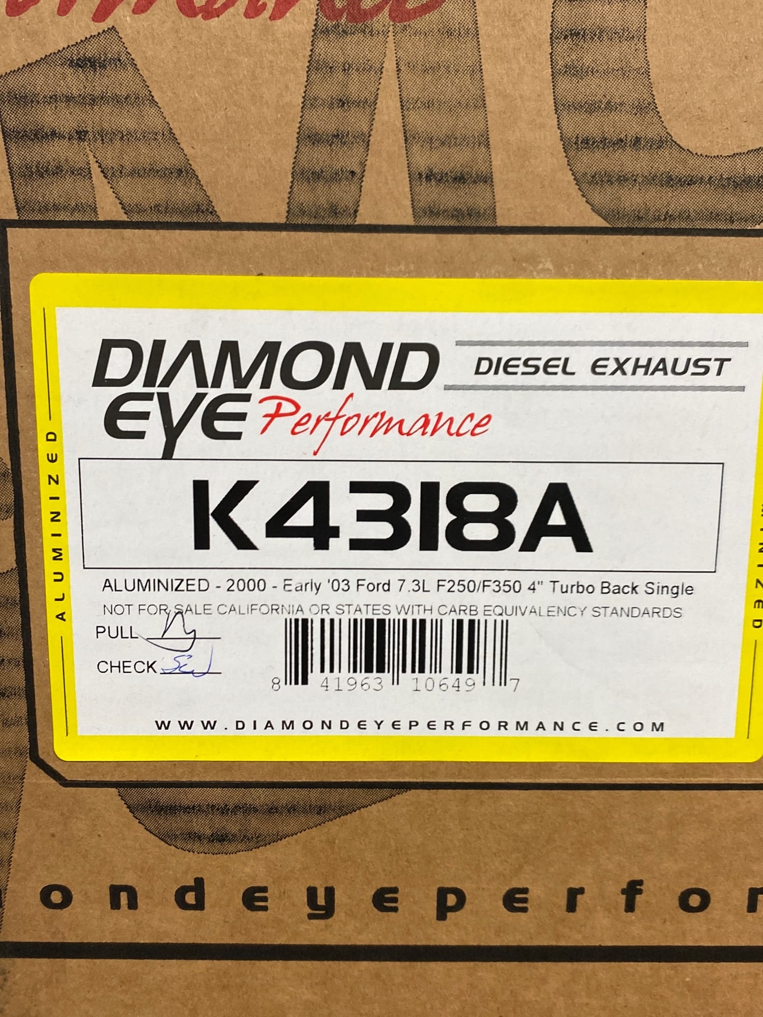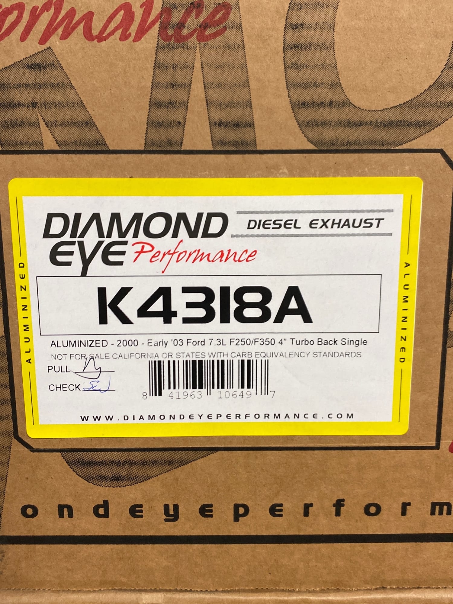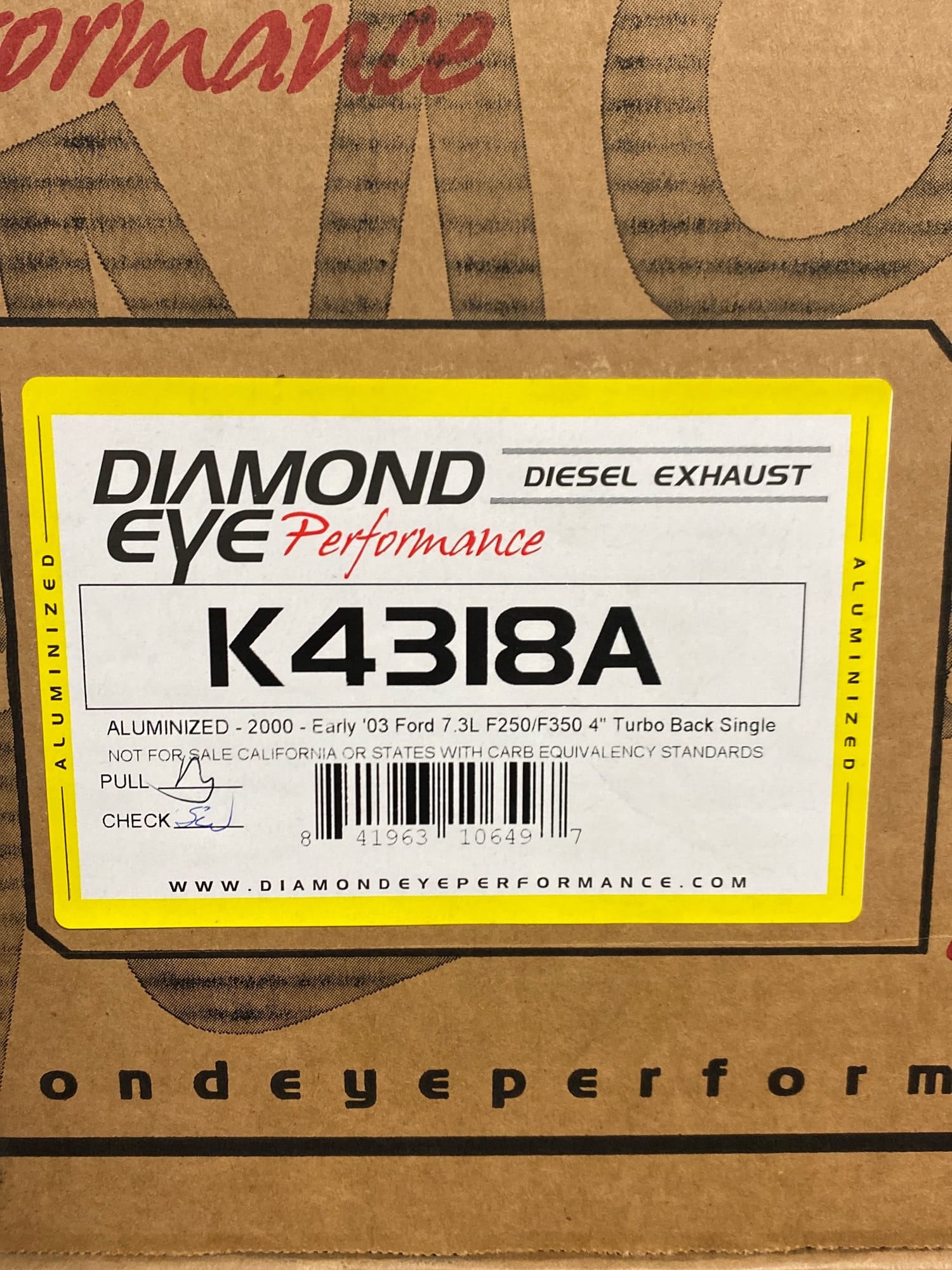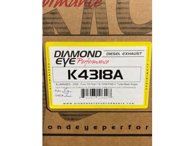39 Diamond Eye K4306A-RP KIT 4in MFLR RPLCMENT PIPE TB SGL ALUM 94-97 5 7 3L F250/F350 PWRSTROKE NFS W CARB STDS