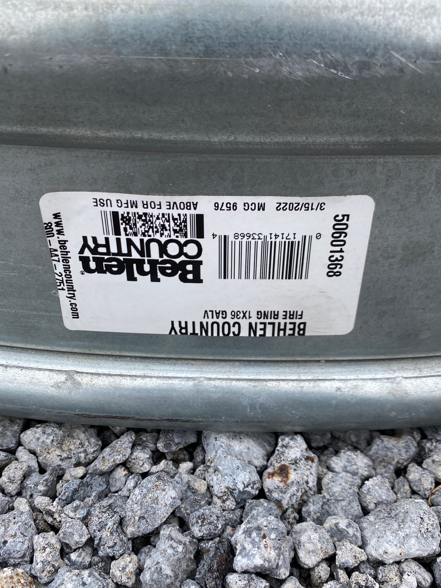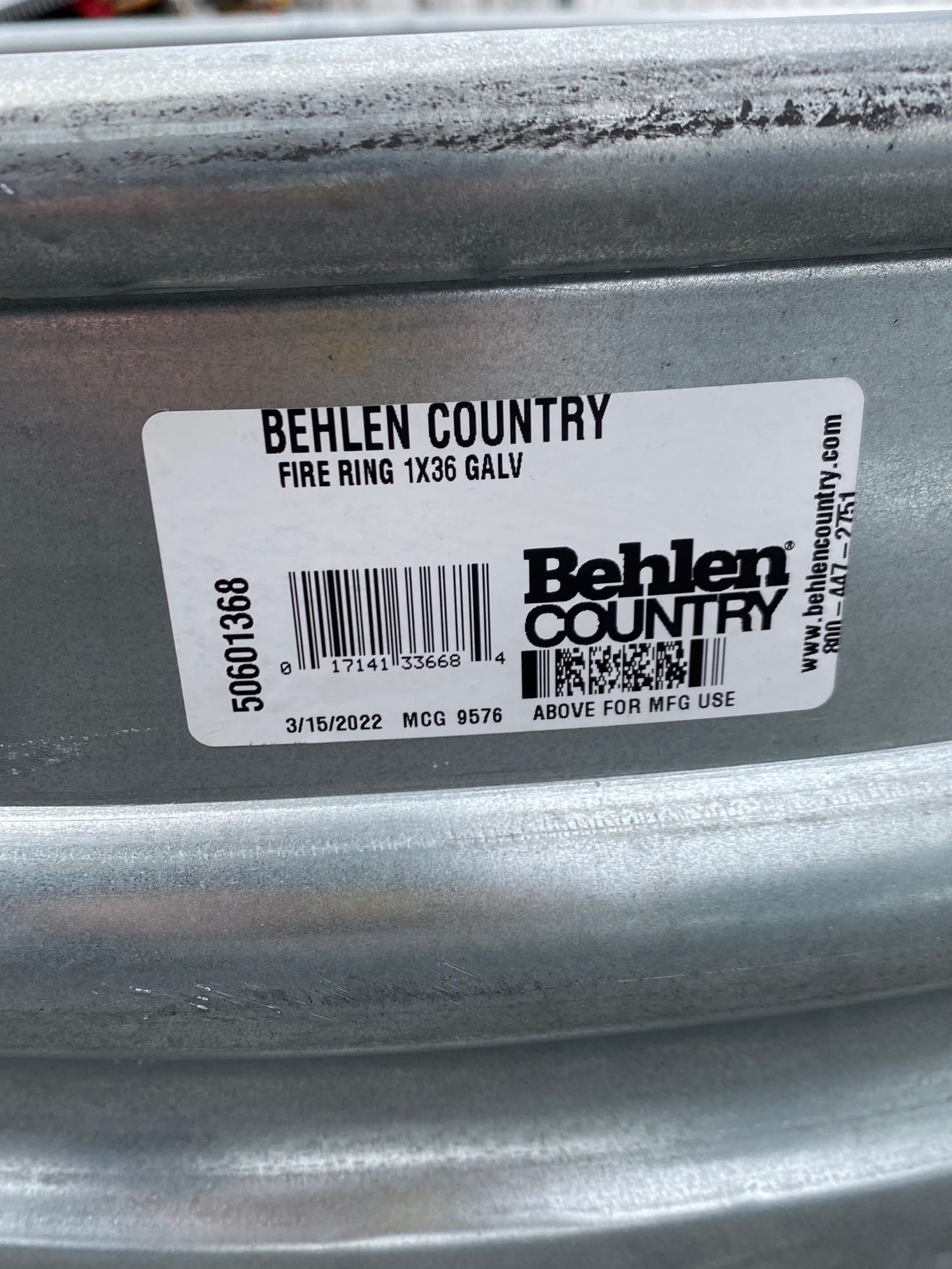 751 2 - Behlen Country 36 in. x 12 in. Round Galvanized Steel Wood Fire Ring, Model:50601368