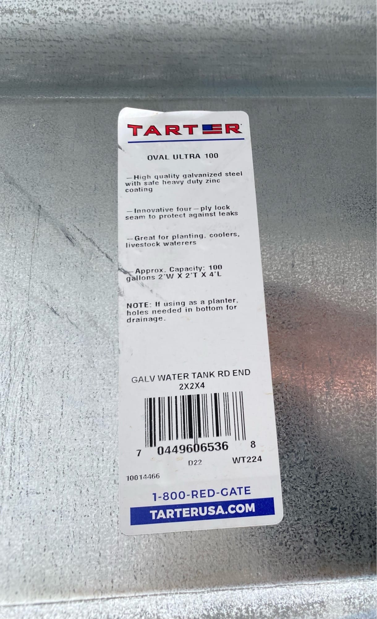 754 Tarter 2’x2’x4’ Galvanized 100gal. Stock Water Tank
