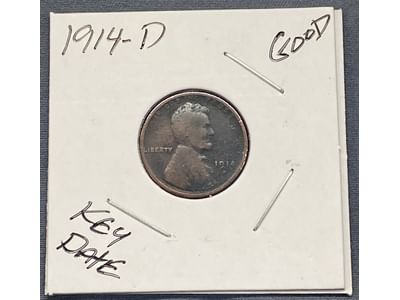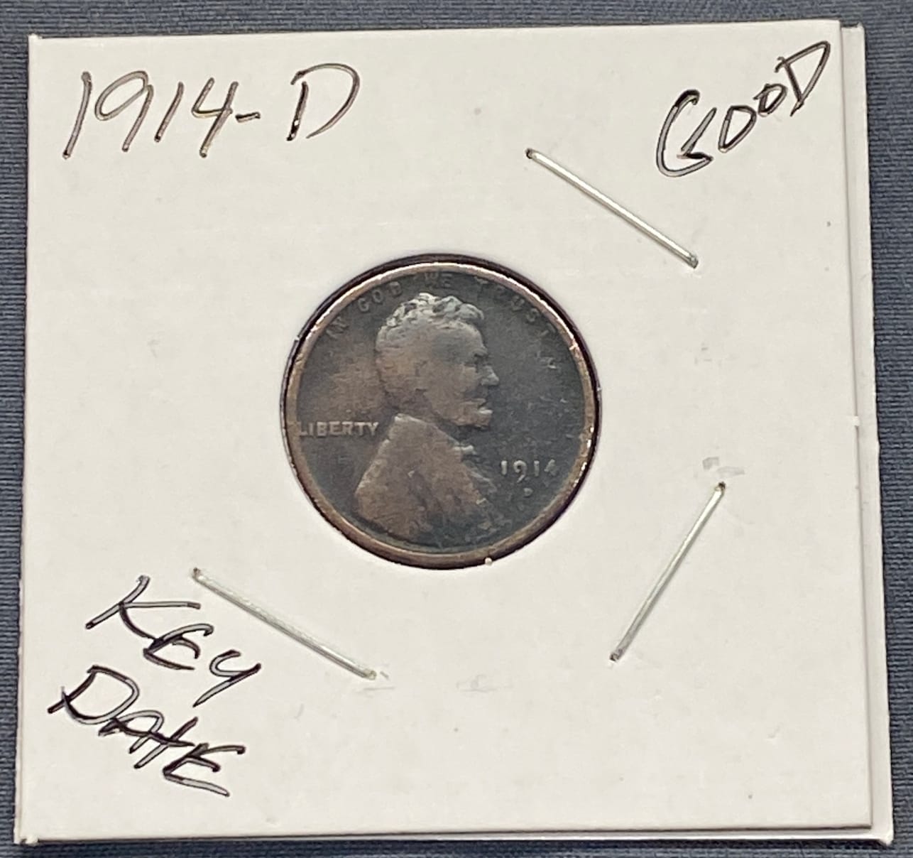 6 1914-D Lincoln Wheat Penny, Good, Key Date