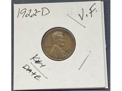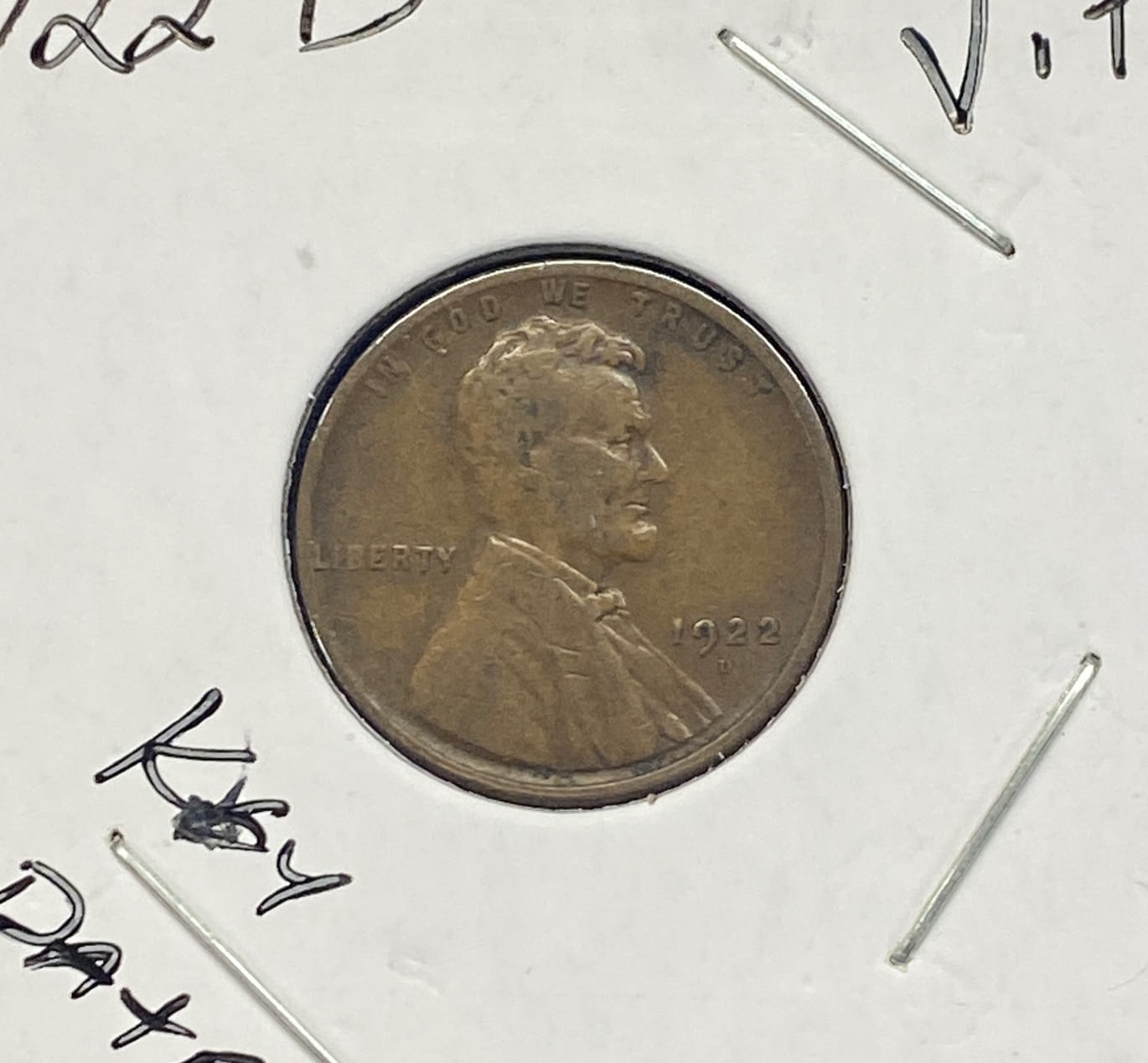 8 1922-D Lincoln Wheat Penny, V. F. Key date