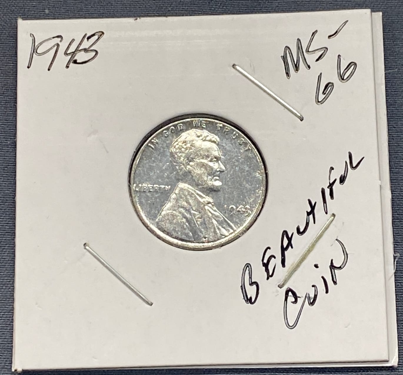 9 1943-P Lincoln Steel Wheat Penny, MS-66