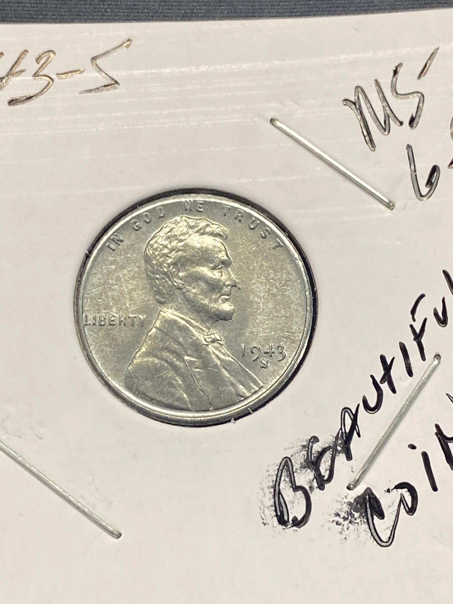 10 1943-S Lincoln Steel Wheat Penny, MS-65