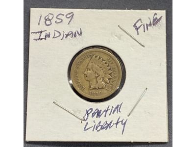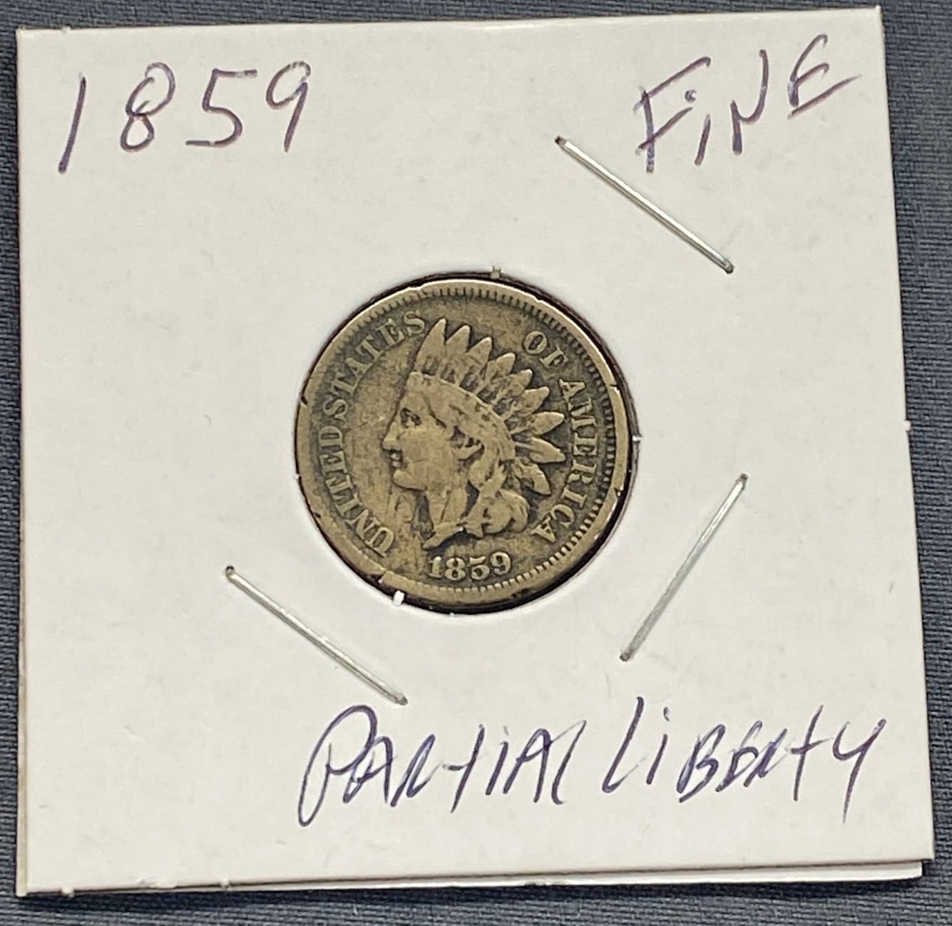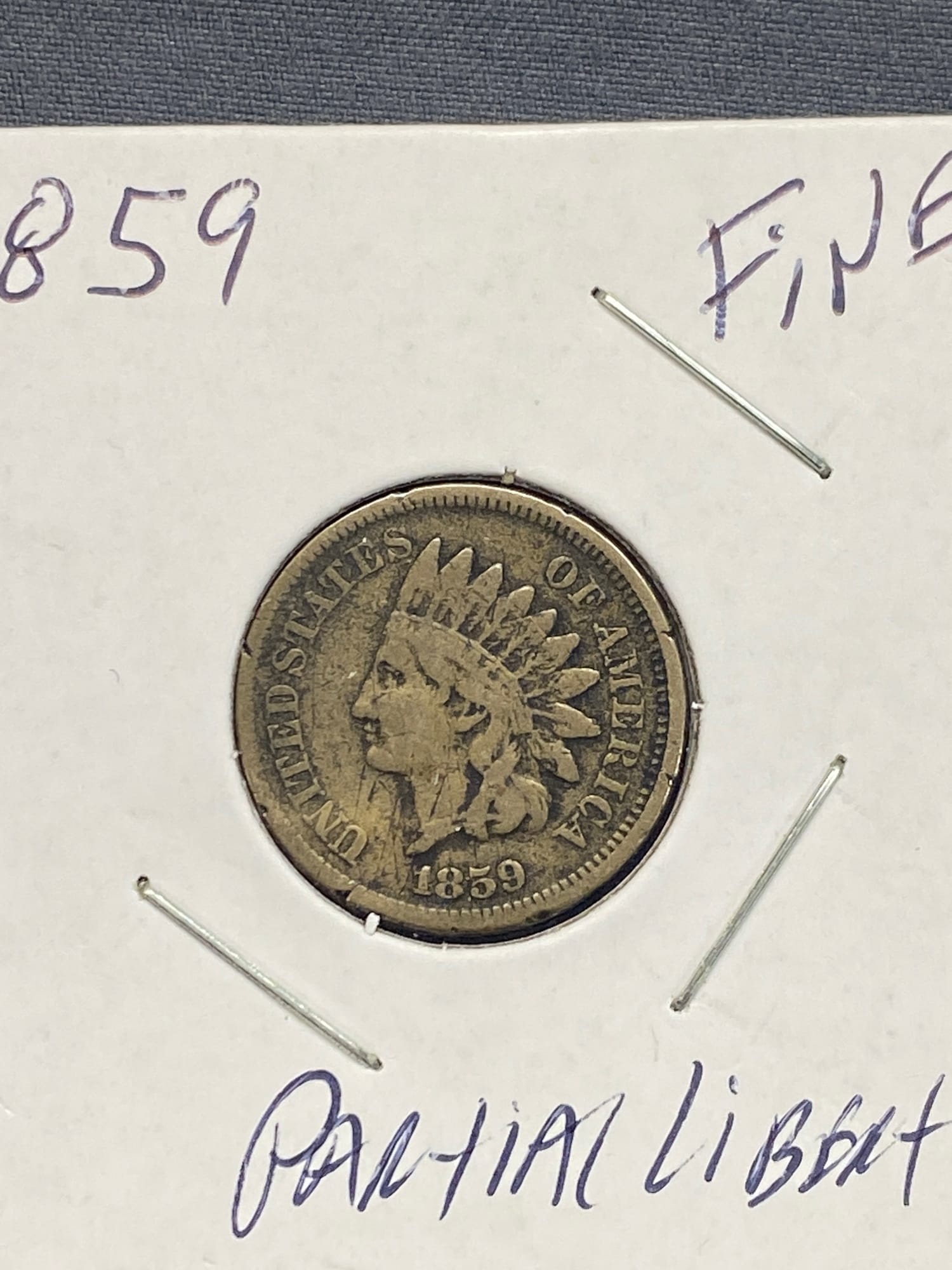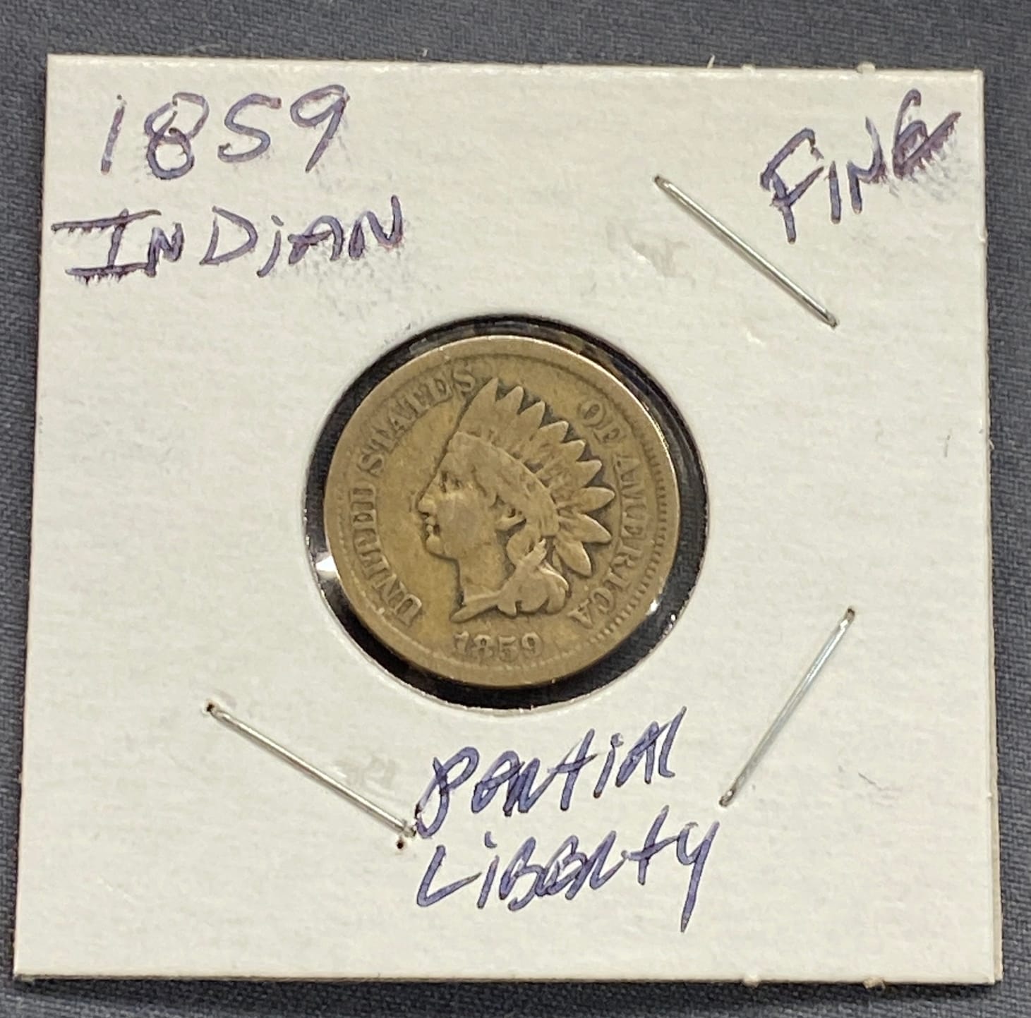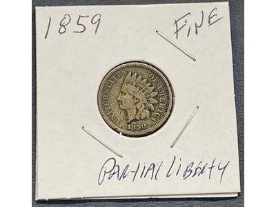 76 1859 Indian Head Penny, Partial Liberty, Fine