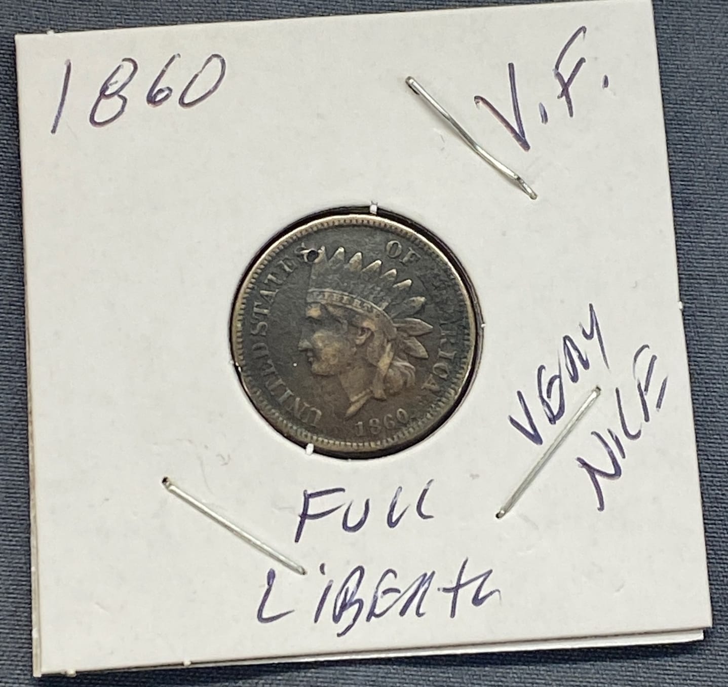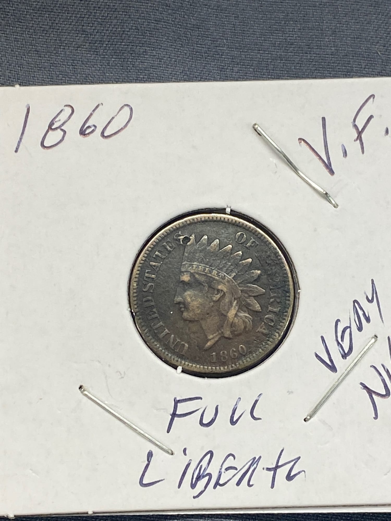 12 1860 Indian Head Penny, V. F. Full Liberty